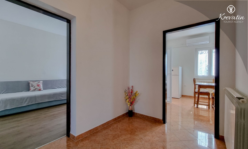 Ovaj apartman za 2 do 4 osobe nalazi se u visokom prizemlju i sastoji se od jedne spavaće sobe, dnevnog boravka sa jednim kaučem na razvlačenje i krevetom za jednu osobu te kuhinje. Kuhinja je opremljena električnim štednjakom, pećnicom, hladnjakom i aparatom za kavu. Osim toga tu je kupaonica s tušem i WC-om te lijepi balkon s namještajem. SAT-TV, WLAN, klima, posteljina i ručnici su uključeni u cijenu.