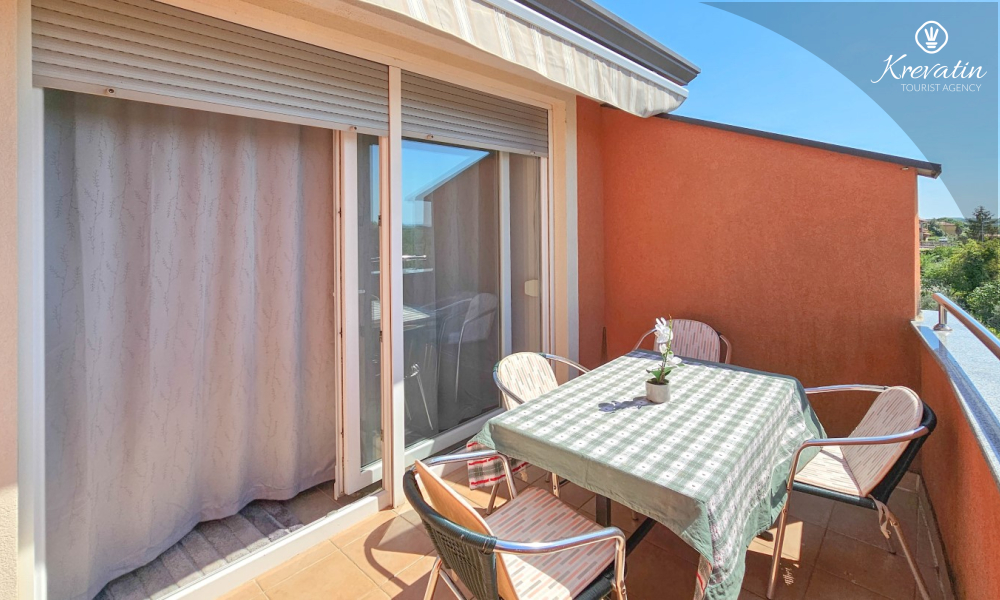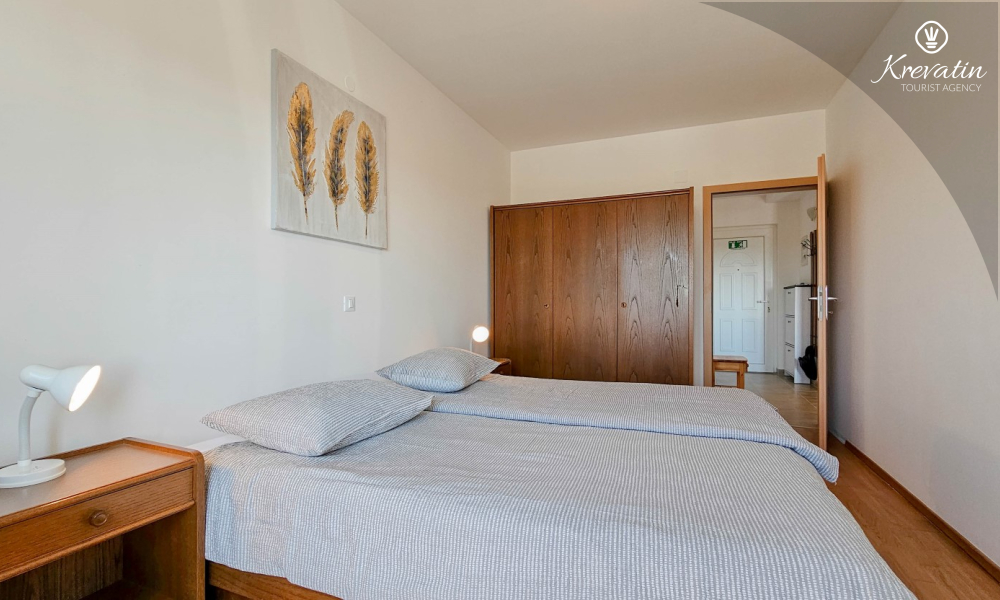 Ovaj apartman za 2 do 4 osobe nalazi se na trećem katu i sastoji se od jedne spavaće sobe, dnevnog boravka s kaučem na razvlačenje i kuhinje. Kuhinja je opremljena električnim štednjakom, pećnicom, hladnjakom i aparatom za kavu. Osim toga, tu je kupaonica s tušem i WC-om te lijepi balkon s namještajem. SAT-TV, klima uređaj, posteljina i ručnici su uključeni u cijenu.