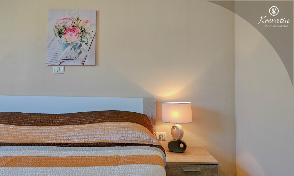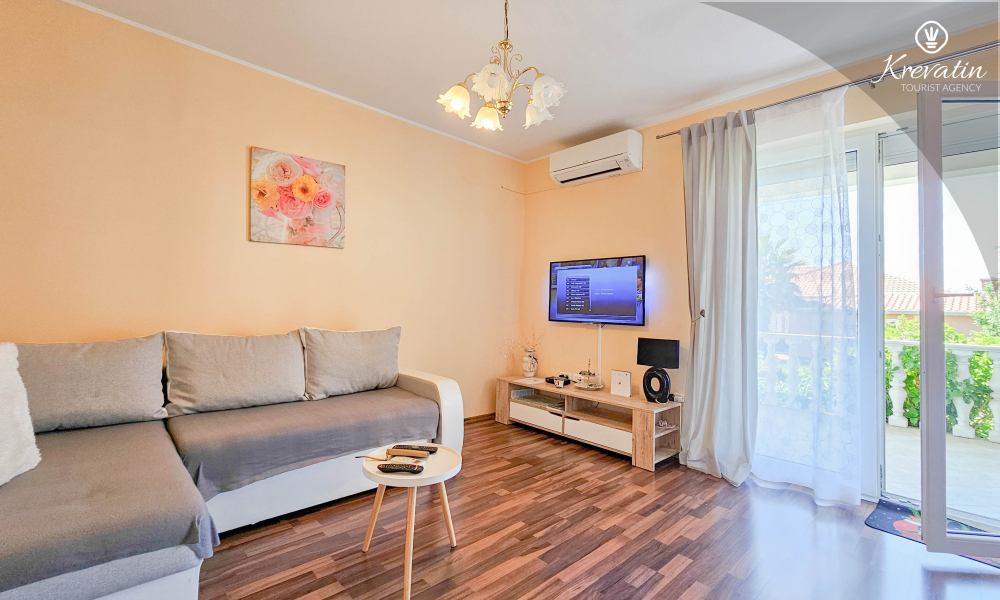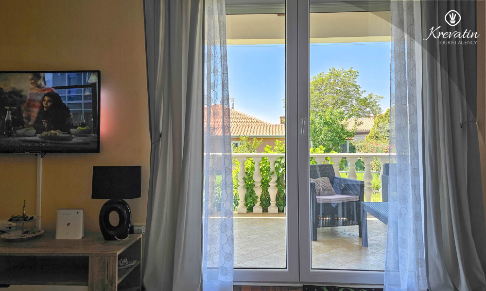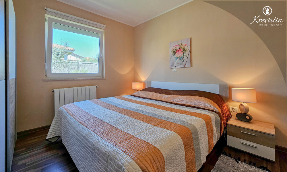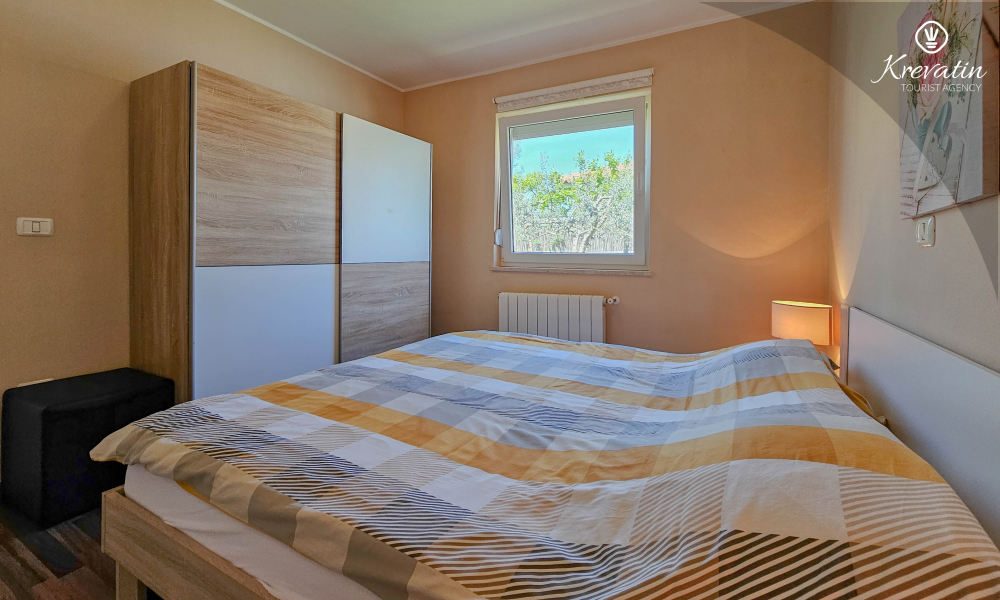 Apartman sadrži udobnu spavaću sobu s bračnim krevetom, prostrani dnevni boravak i kuhinju opremljenu osnovnim stvarima za pripremu jednostavnih jela. Na raspolaganj je praktična kupaonica s kadom i WC-om, te vrt i prostrana terasa s namještajem, idealna za obroke na otovorenom.