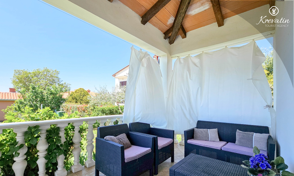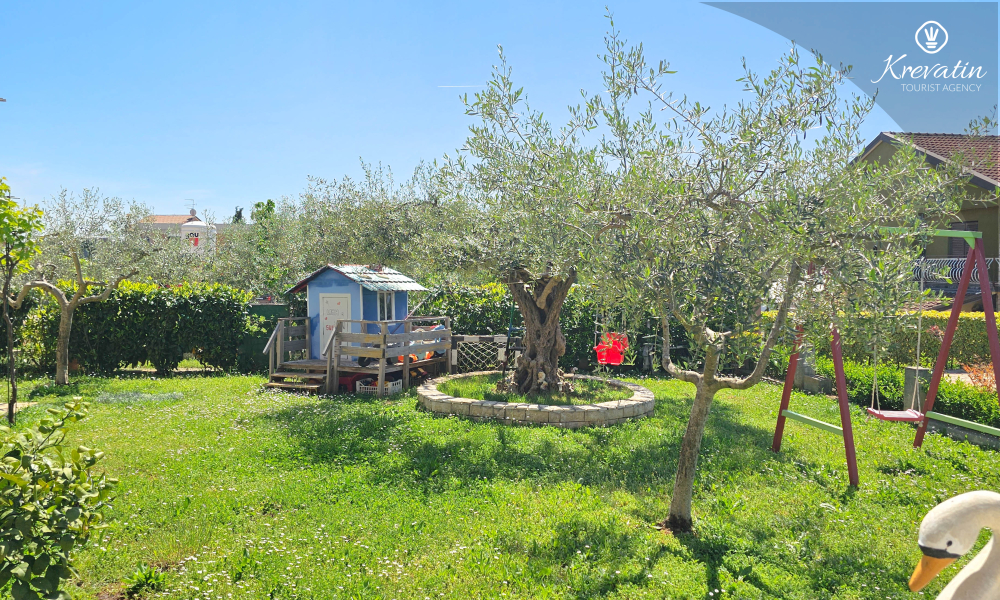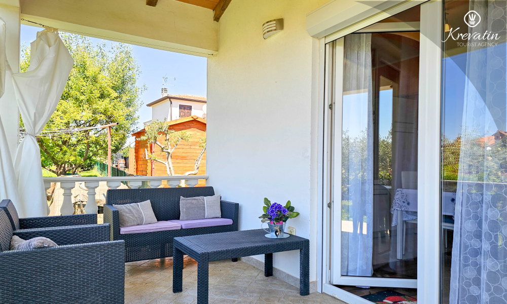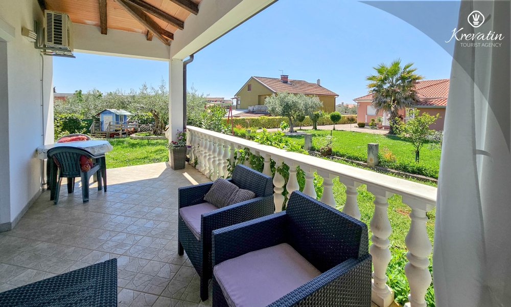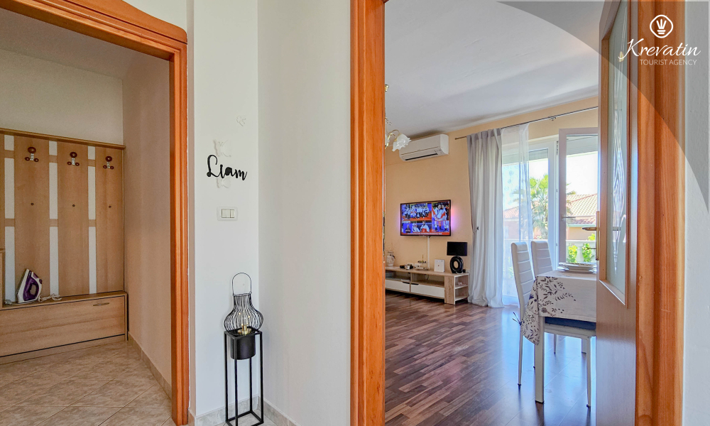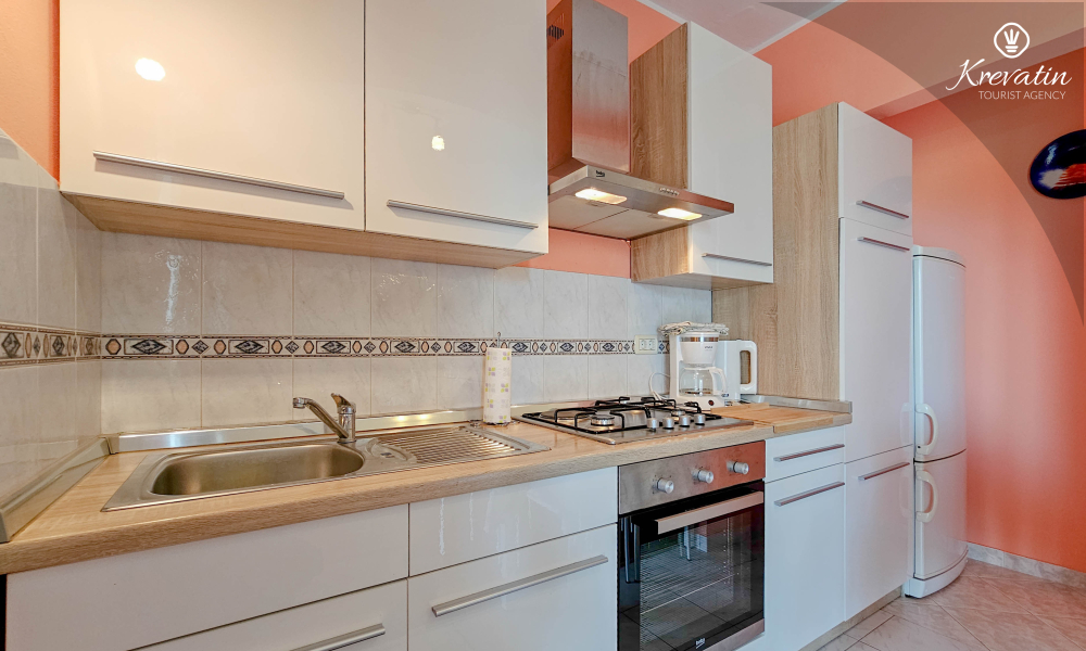 Apartman sadrži udobnu spavaću sobu s bračnim krevetom, prostrani dnevni boravak i kuhinju opremljenu osnovnim stvarima za pripremu jednostavnih jela. Na raspolaganj je praktična kupaonica s kadom i WC-om, te vrt i prostrana terasa s namještajem, idealna za obroke na otovorenom.
