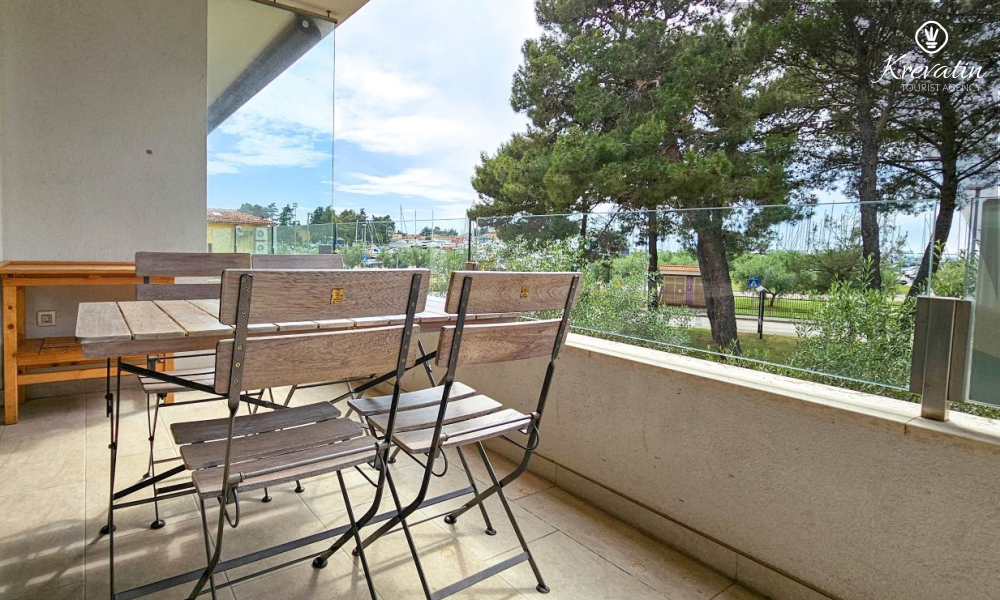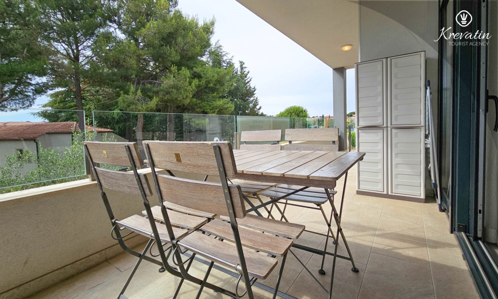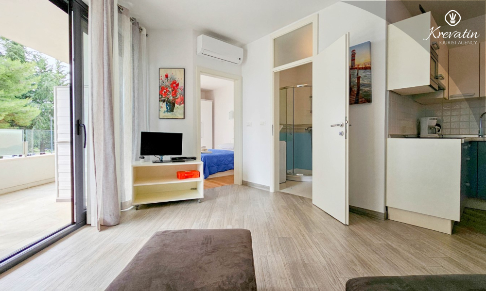 Sastoji se od spavaće sobe s bračnim krevetom, dnevnog boravka s blagovaonicom i kuhinjom koja je opremljena osnovnim stvarima za pripremu obroka. U dnevnom boravku je ležaj za dodatne dvije osobe, a na raspolaganju je i kupaonica tušem i WC-om. Balkon s prekrasnim pogledom pružit će ugodne trenutke na otvorenom.