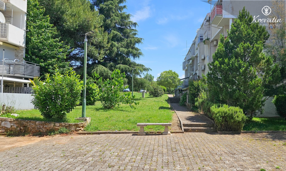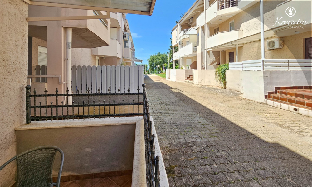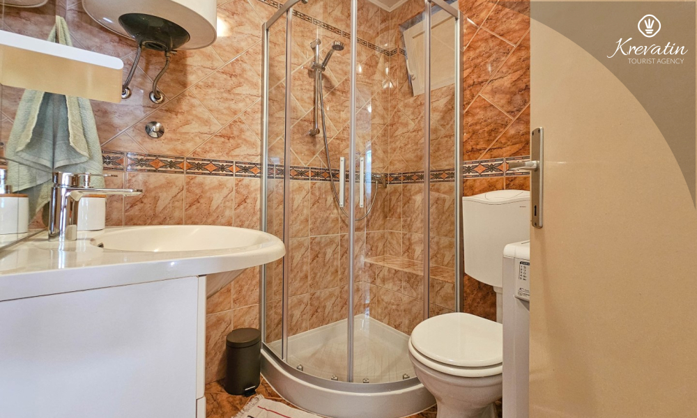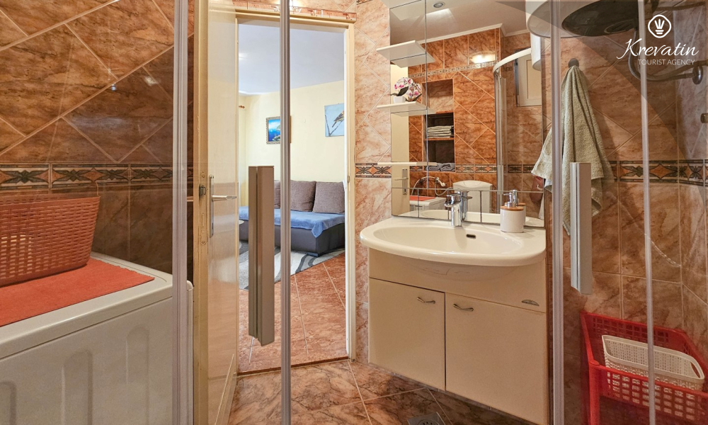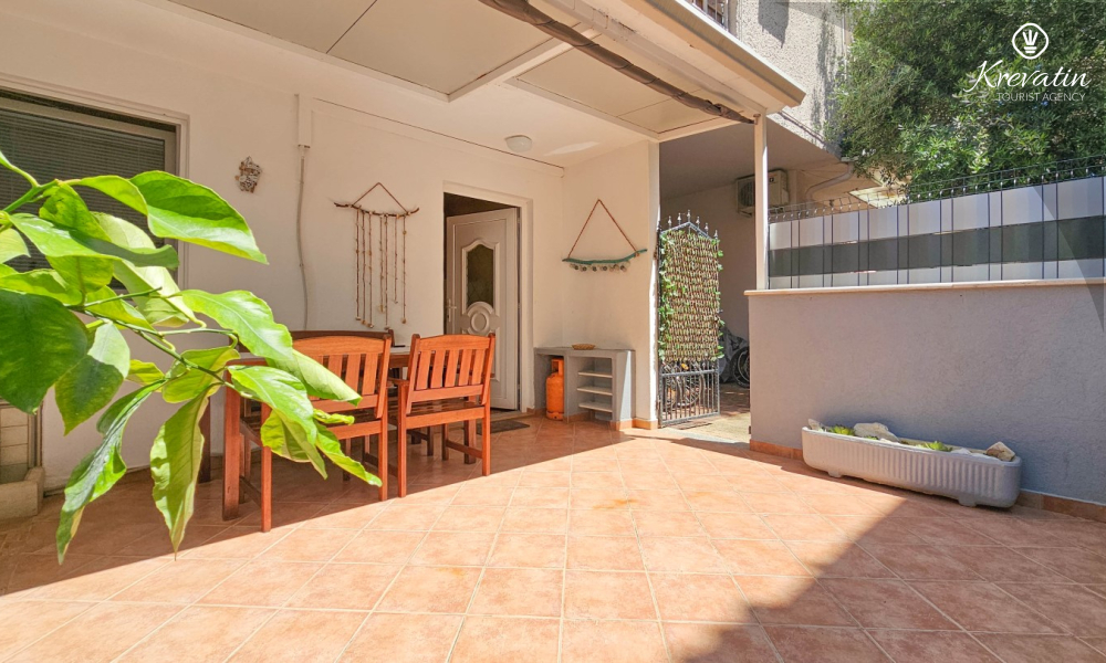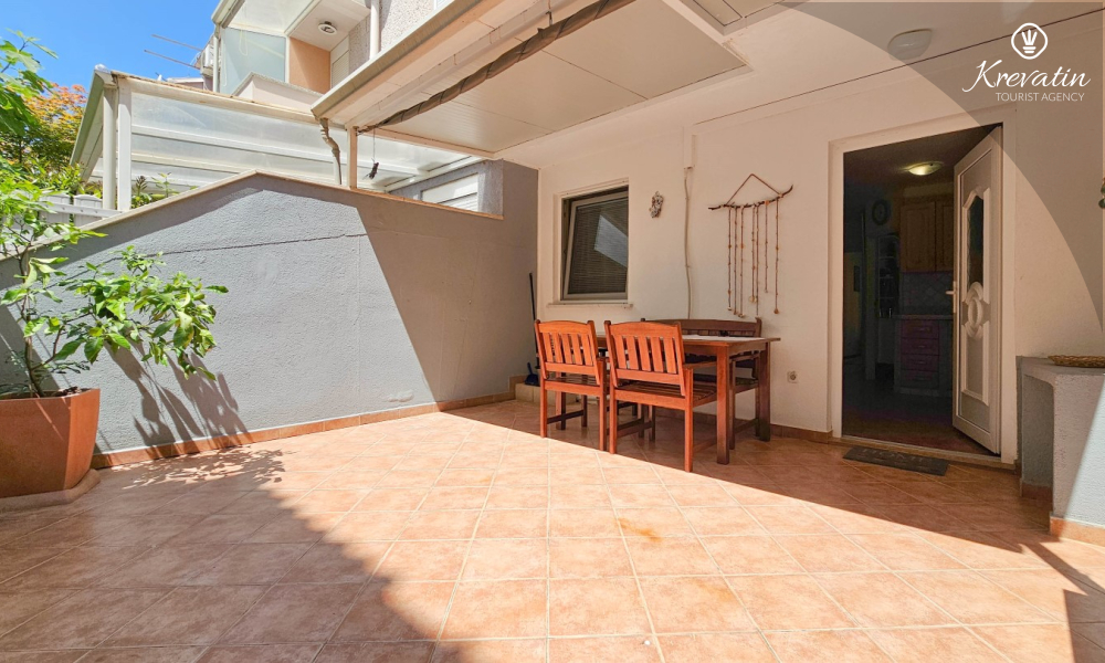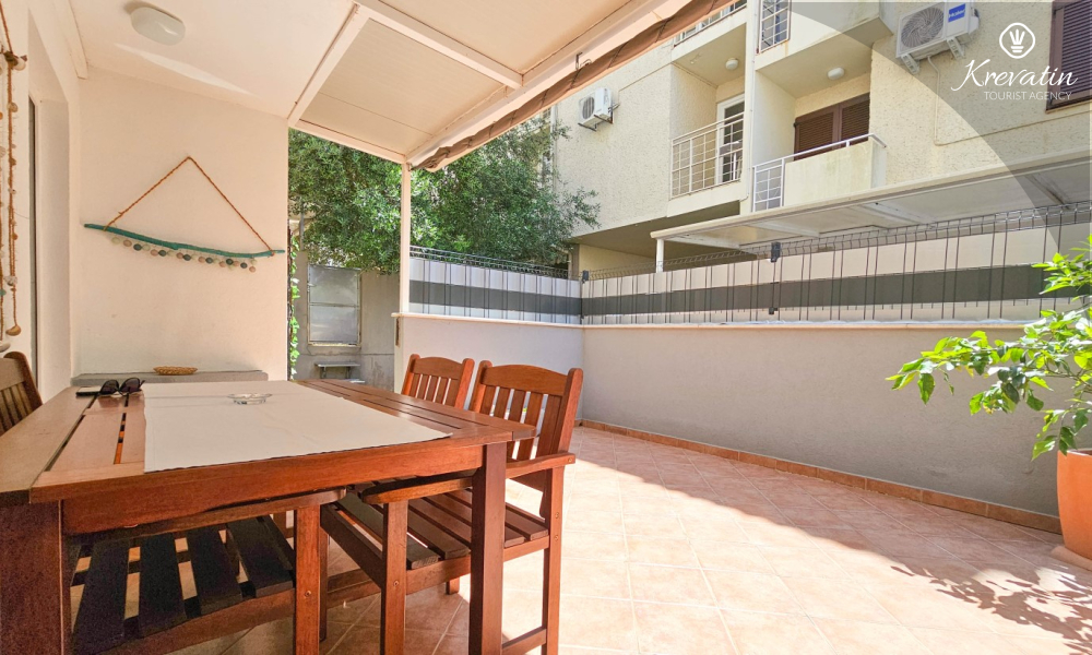 Apartman se sastoji od spavaće sobe, udobnog dnevnog boravka s kuhinjom i blagovaonicom, te lijepe terase. Dva dodatna gosta mogu udobno spavati u dnevnoj sobi. Kuhinja je opremljena osnovnim stvarima za pripremu jednostavnih obroka, a praktična kupaonica uključuje tuš, WC i perilicu rublja za vašu udobnost. Opustite se na terasi opremljenoj stolom i stolicama, savršenoj za jutarnju kavu ili večernja druženja. Apartman je opremljen TV-om, klimom, internetom, a posteljina i ručnici dostupni su bez dodatnih troškova za bezbrižan boravak.