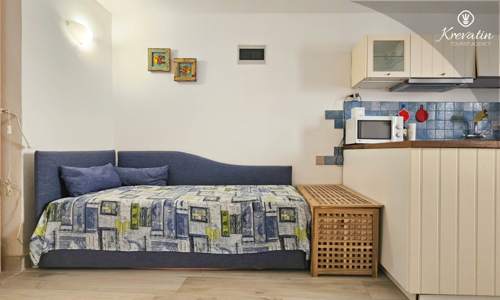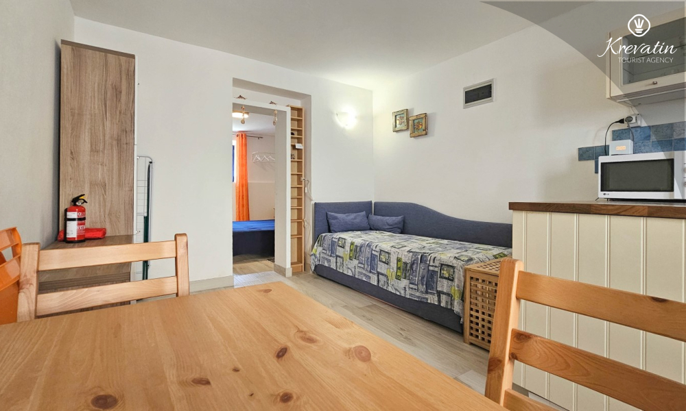 Dobrodošli u naš šarmantni apartman u srcu starog grada Novigrada, u Istri! Apartman se sastoji od jedne spavaće sobe i dnevnog boravka s kuhinjom i blagovaonicom i idealan je za do 3 osobe. U dnevnom boravku nalazi se udoban kauč na kojem može spavati dodatna osoba. Kuhinja je opremljena osnovnim stvarima, a kupaonica sadrži tuš kabinu i WC. Klima uređaj, posteljina i ručnici uključeni su u cijenu, osiguravajući vam ugodan i bezbrižan boravak.