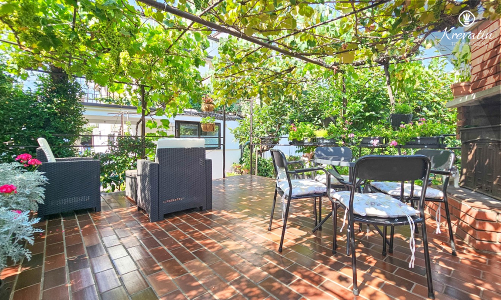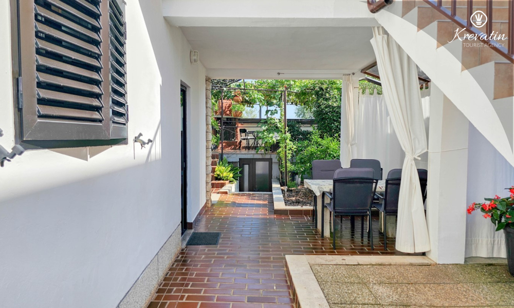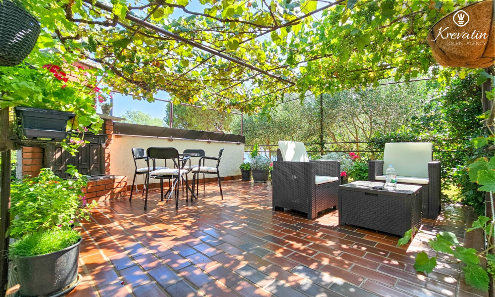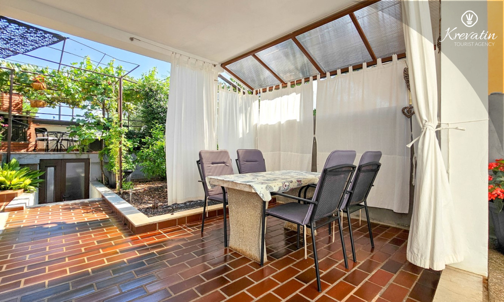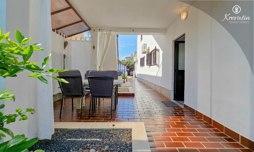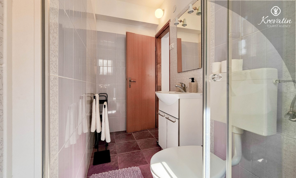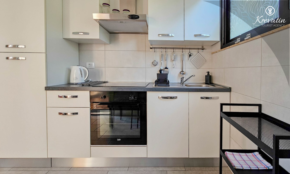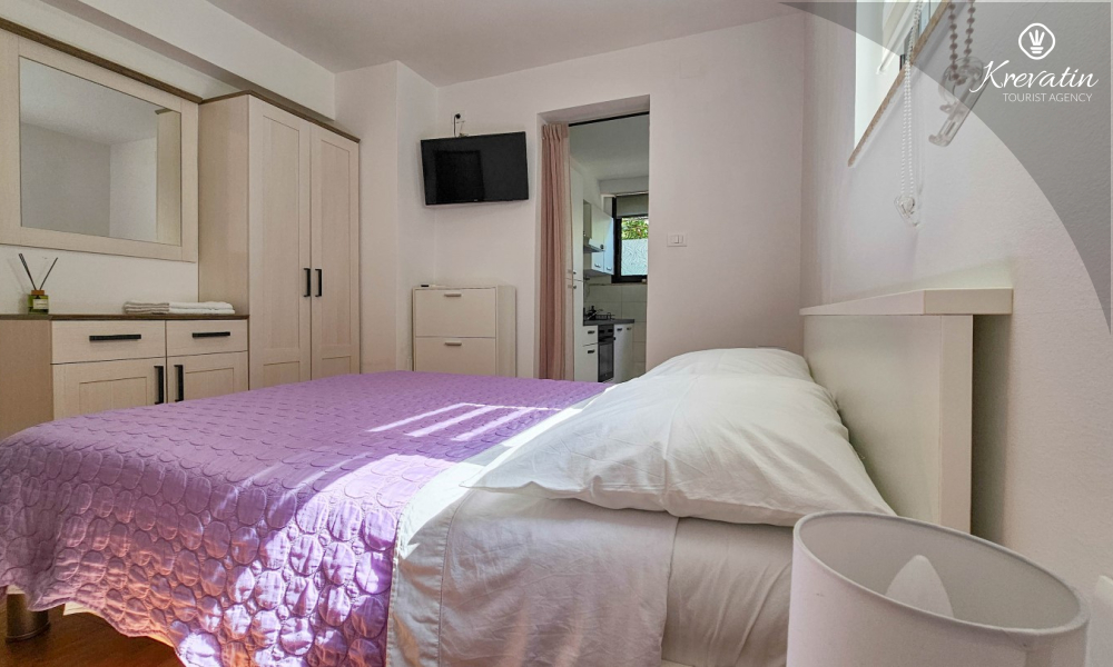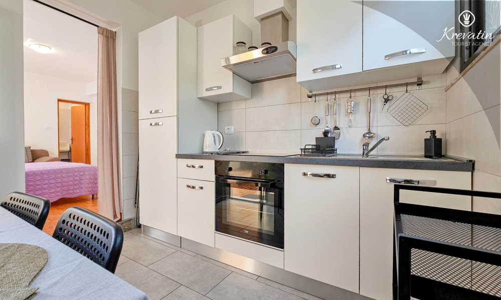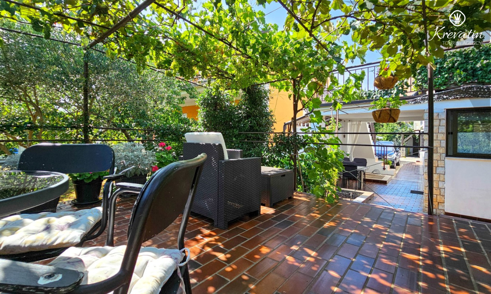 Nalazi se u prizemlju obiteljske kuće i nudi sve što vam treba za bezbrižan odmor: kuhinju s blagovaonskim stolom, spavaću sobu s bračnim krevetom te kupaonicu s tuš kabinom. Ono što ovaj apartman čini posebnim su dvije privatne terase – idealne za uživanje u jutarnjoj kavi, večernjem vinu ili jednostavno – za predah u hladu uz šum mora.