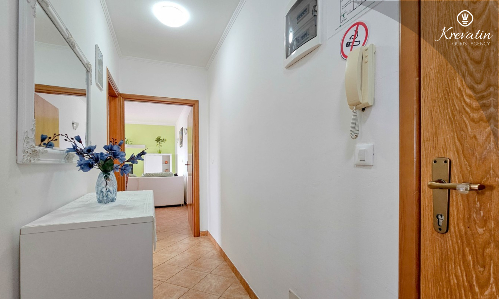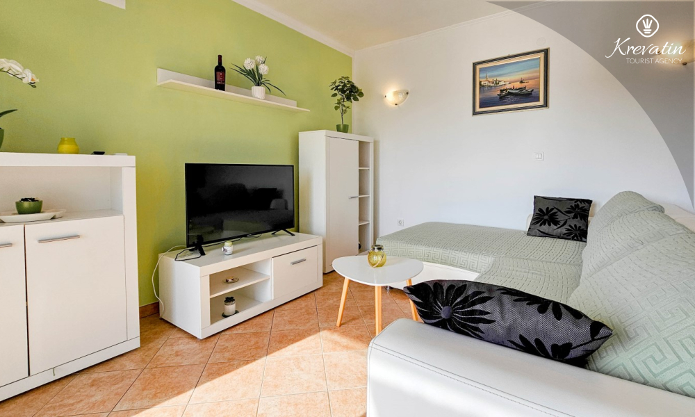 Dobro došli u naš udobni apartman smješten na drugom katu stambene zgrade, savršen za parove ili solo putnike željne opuštenog odmora na moru.