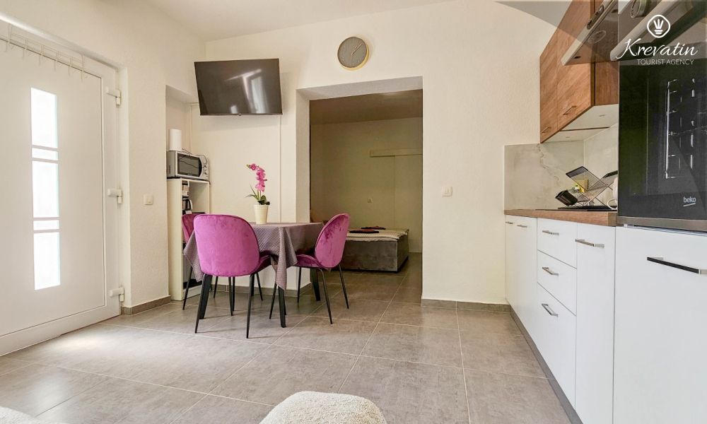 Smješten u prizemlju obiteljske kuće u mirnom dijelu Novigrada, ovaj ugodan studio apartman savršen je za dvoje koji žele opušten odmor. Praktično uređen prostor nudi sve što vam treba: kuhinju s blagovaonskim stolom, spavaću sobu s udobnim bračnim krevetom i kupaonicu s tušem.