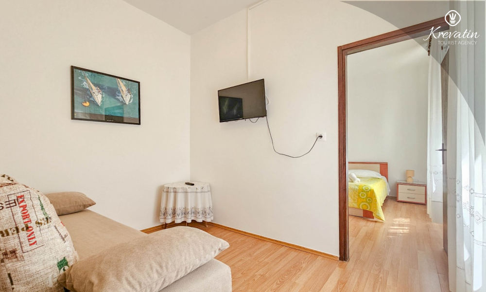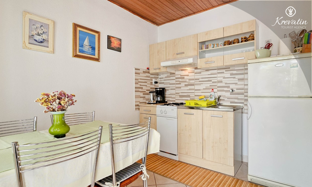 Smješten u prizemlju obiteljske kuće, apartman se sastoji od spavaće sobe s bračnim krevetom, dnevnog boravka s dva dodatna mjesta za spavanje i dobro opremljene kuhinje. Uz to, apartman ima praktično uređenu kupaonicu s tuš kabinom i WC-om te lijepi vrt s terasom, idealan za opuštanje i uživanje na otvorenom.