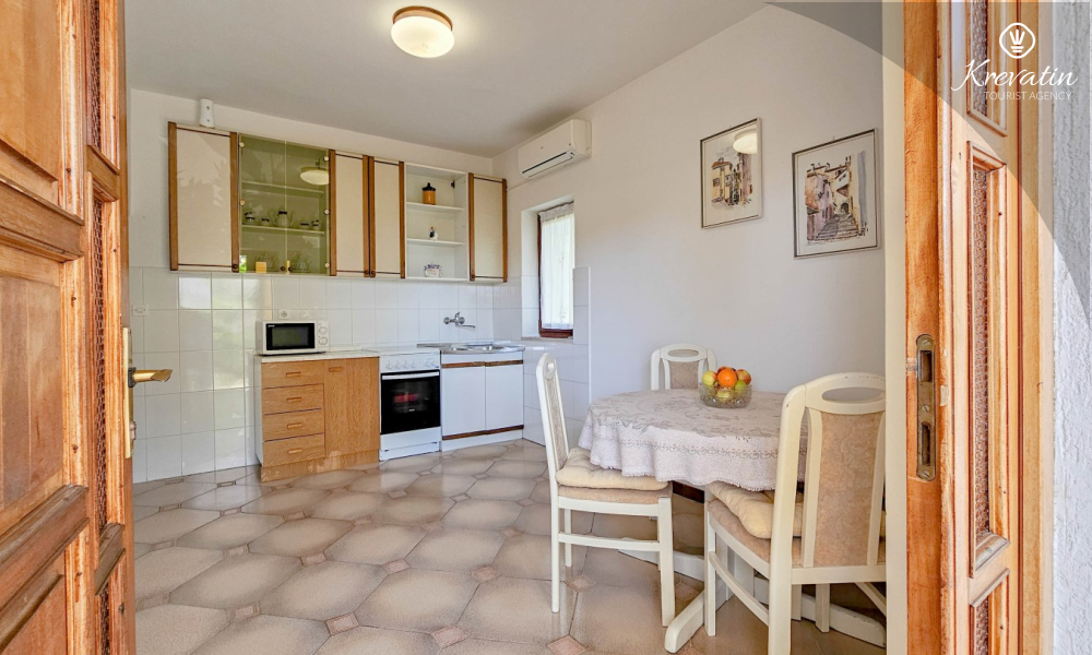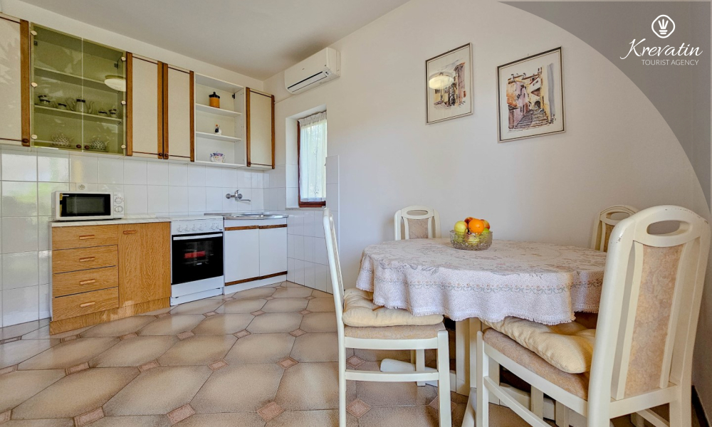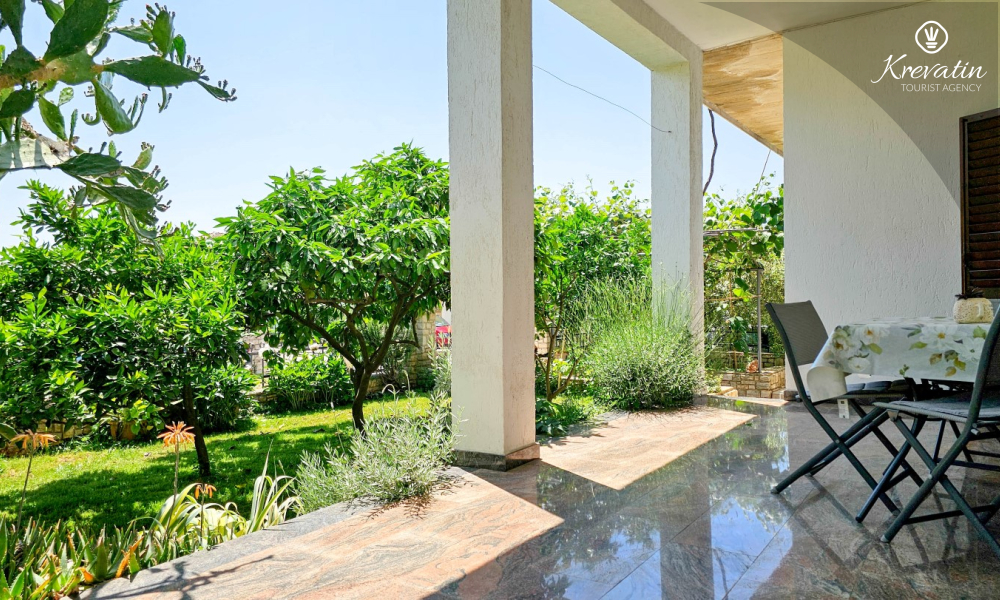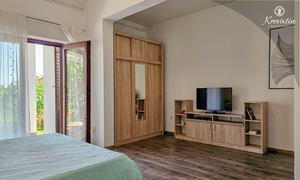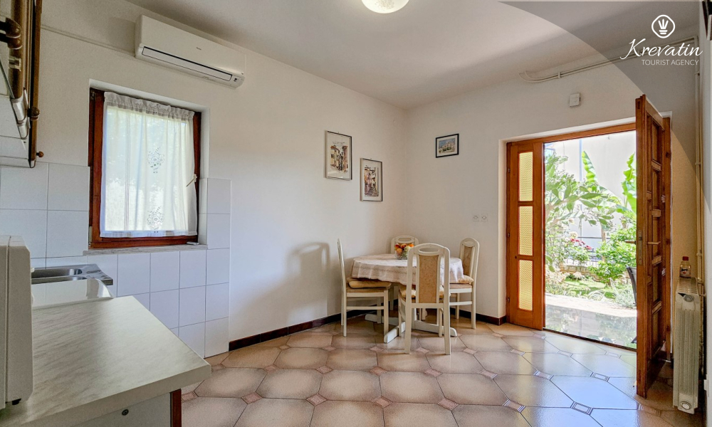Nalazi se u prizemlju obiteljske kuće i nudi sve što vam je potrebno – udobnu spavaću sobu, kuhinju s blagovaonicom opremljenu osnovnim stvarima, kupaonicu s kadom i WC-om, te terasu sa stolom i stolicama za uživanje na otvorenom. Gostima je također na raspolaganju zajednički vrt s roštiljem – savršen za večernja druženja.
