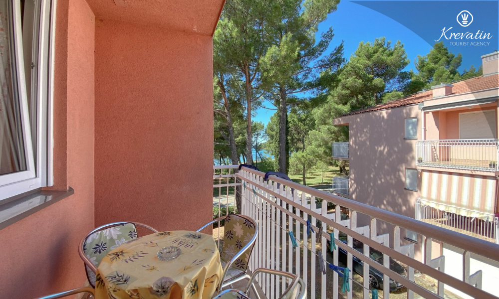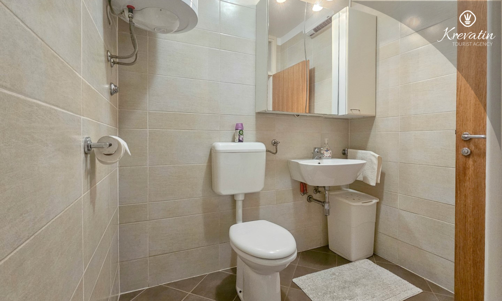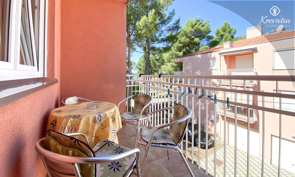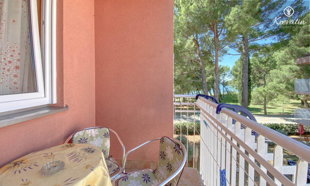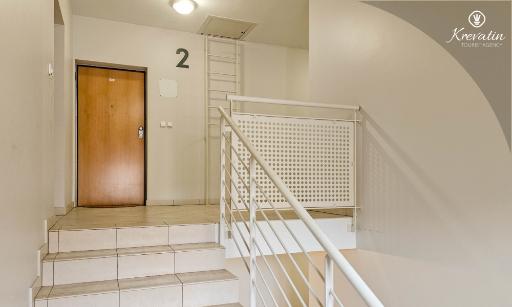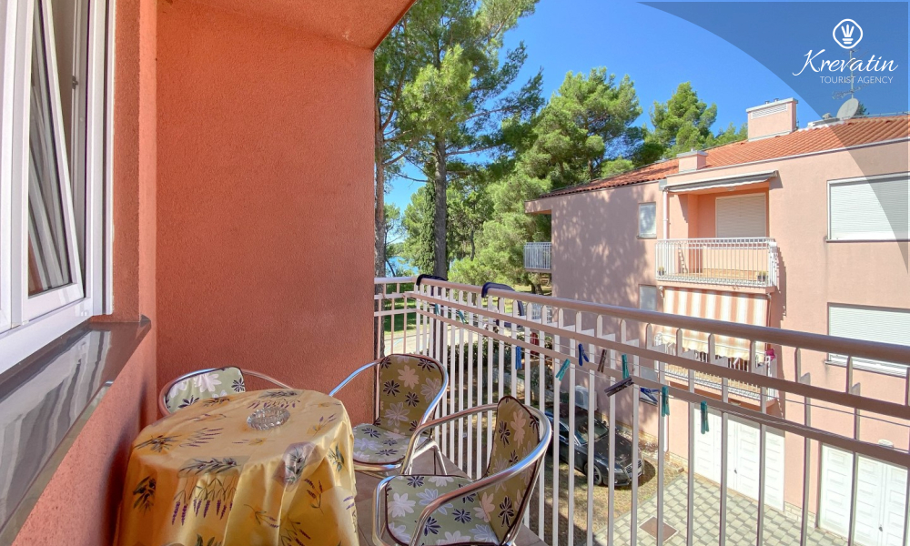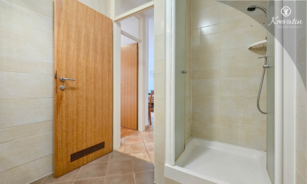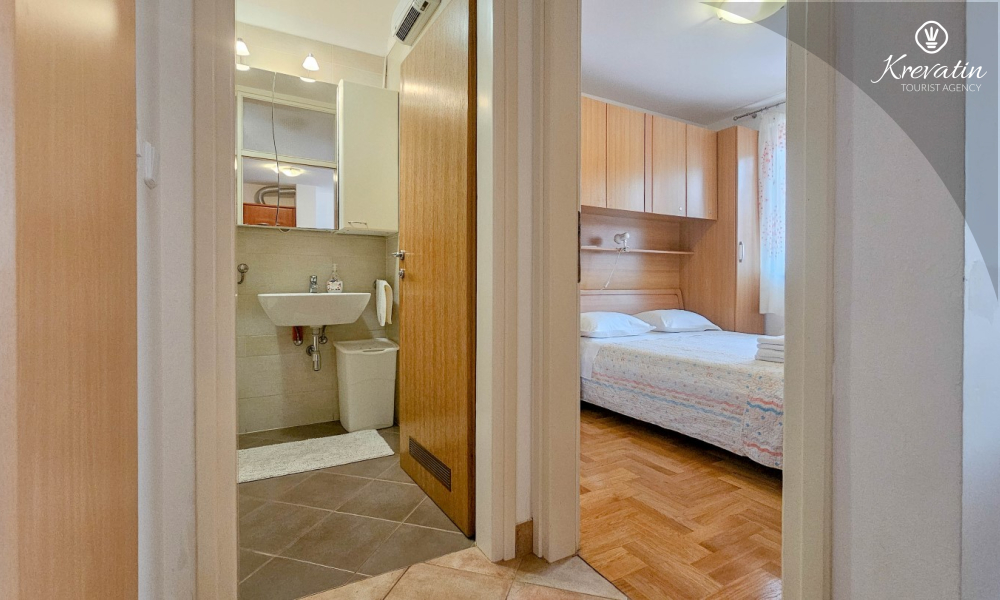 Sastoji se od spavaće sobe, dnevnog boravka s kaučem na razvlačenje, kuhinje opremljene osnovnim stvarima te praktične kupaonice tušem i WC-om. Na raspolaganju je i balkon s pogledom na more idealan za jutarnju kavu ili uživanje u ljetnim večerima