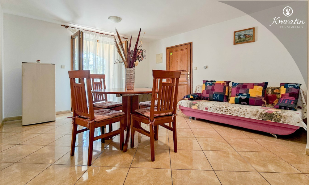 Uživajte u opuštajućem odmoru u ovom ugodnom apartmanu za 2 do 3 osobe, smještenom na prvom katu kuće u mirnoj četvrti Novigrada – samo 400 metara od plaže i nekoliko minuta šetnje od povijesnog centra grada.