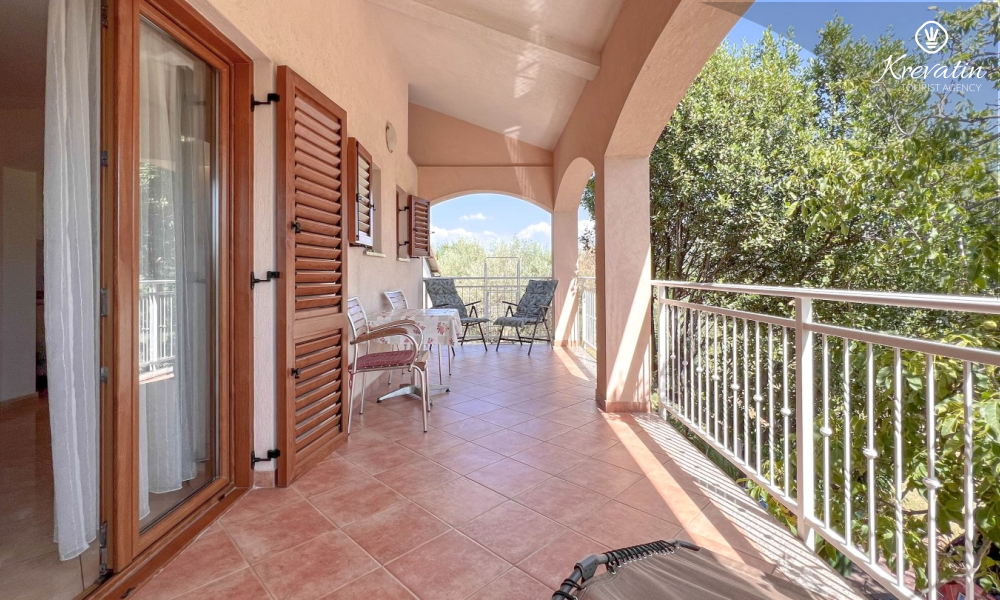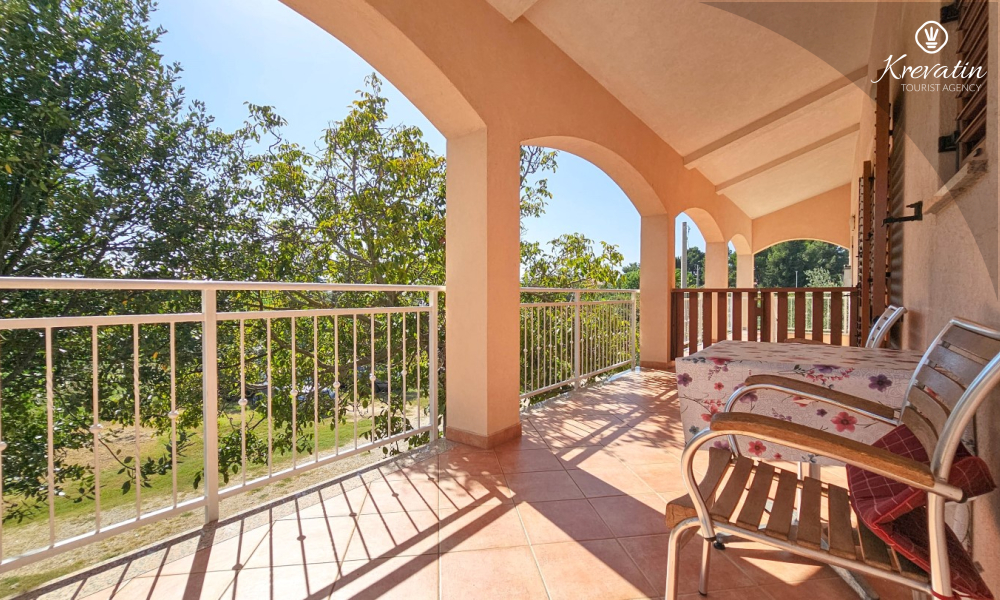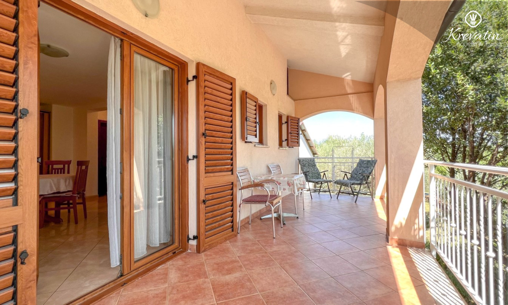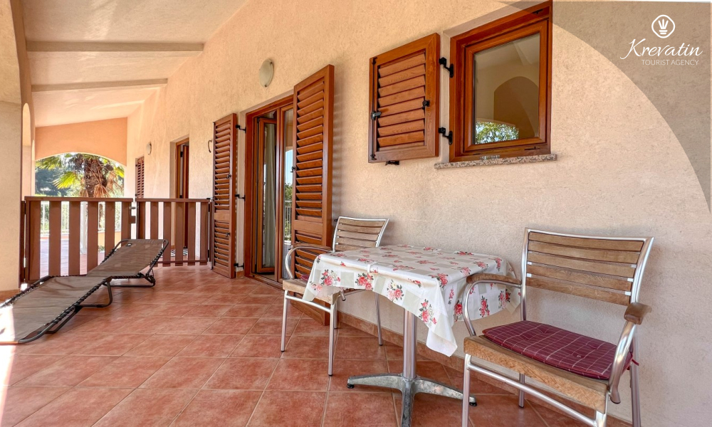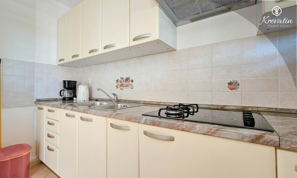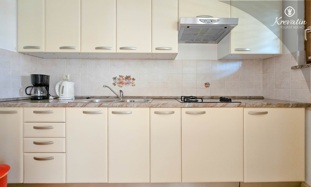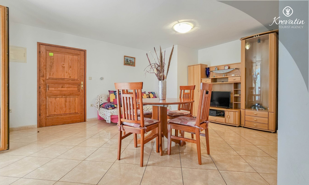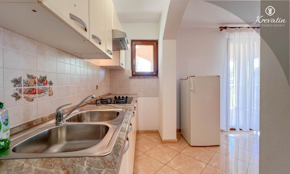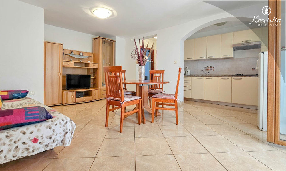Apartman se sastoji od spavaće sobe, dnevnog boravka s kaučem na razvlačenje, potpuno opremljene kuhinje s blagovaonicom i kupaonice s tušem i WC-om. Na raspolaganju je i balkonu sa stolom i stolicama gdje možete uživati u jutarnjoj kavi ili večernjem druženju.