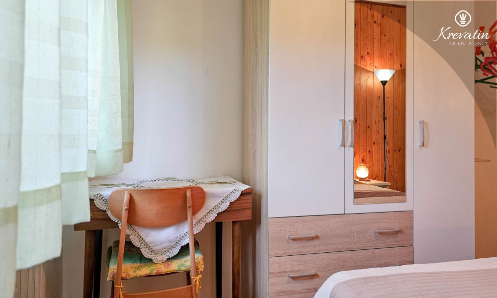 Apartman nudi spavaću sobu, kuhinju s blagovaonicom - opremljenu osnovnim stvarima, kupaonicu s kadom i WC-om, te natkrivenu terasu sa stolom i stolicama – idealnu za opuštanje nakon dana provedenog na plaži.