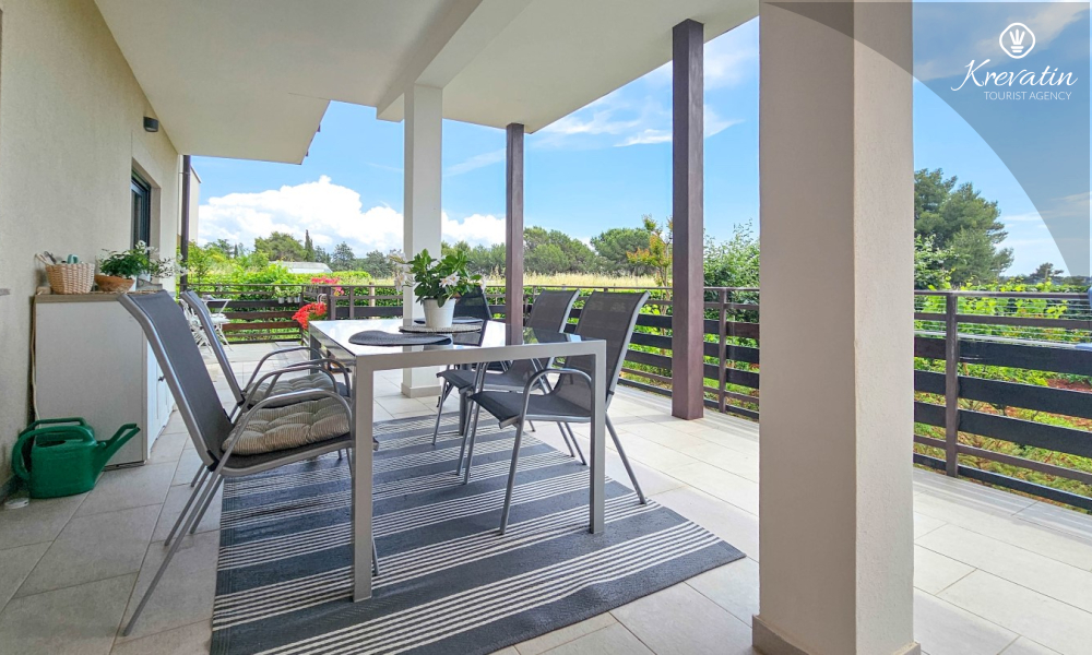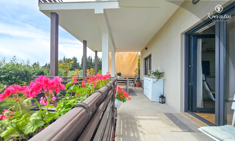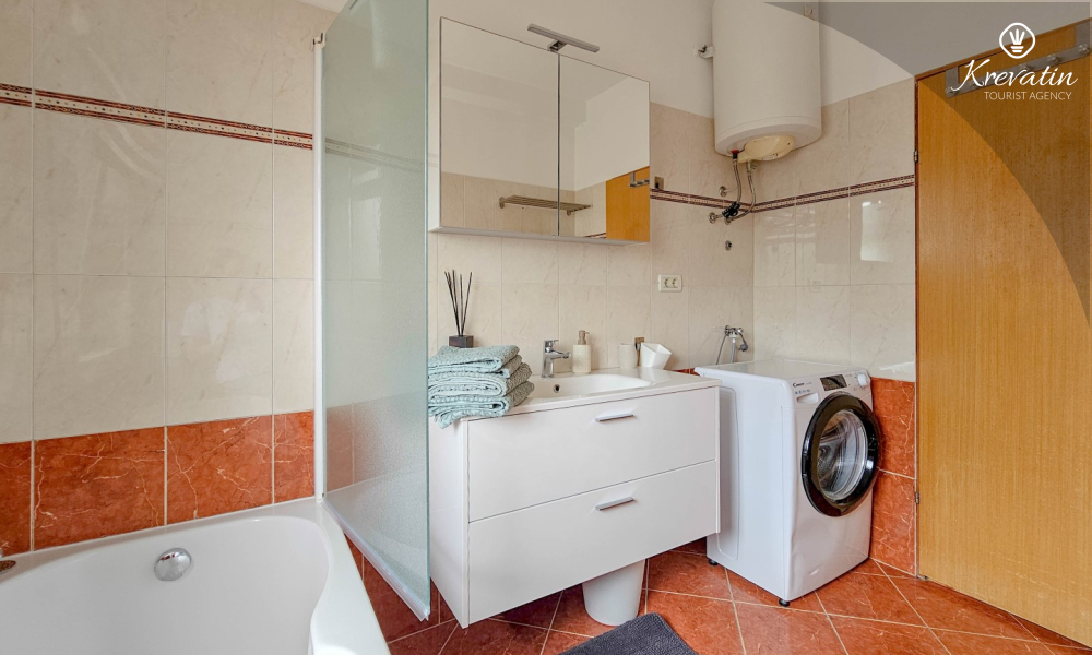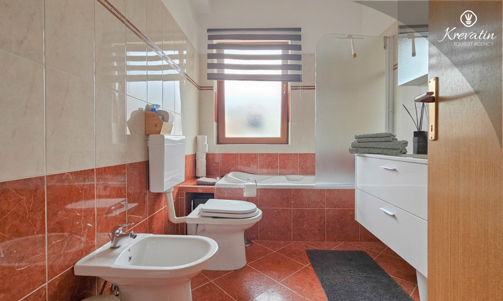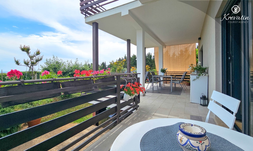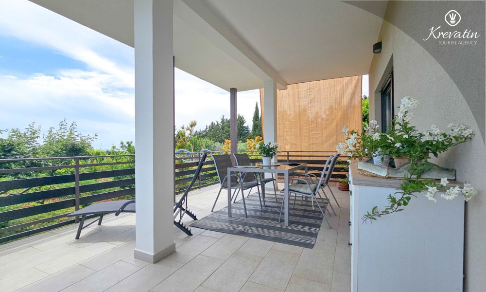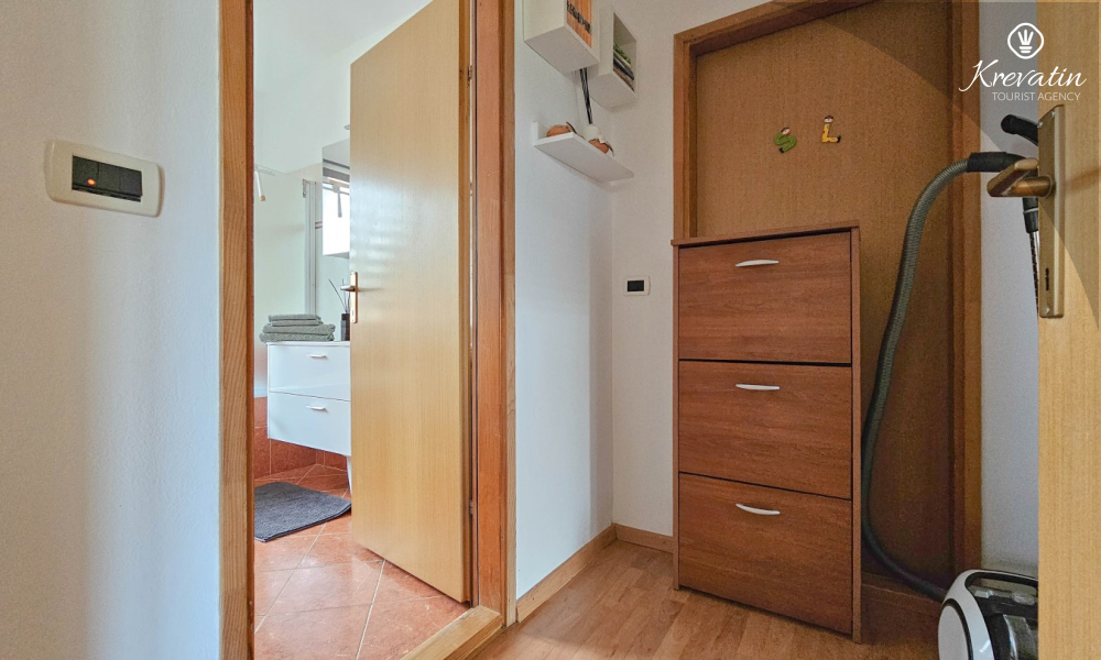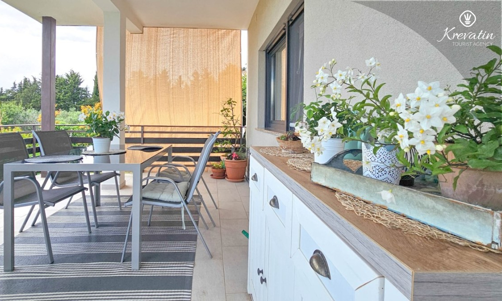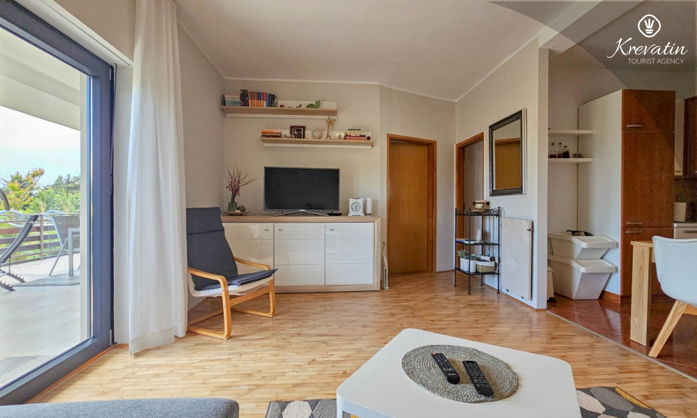 Apartman se nalazi u prizemlju obiteljske kuće i sastoji se od spavaće sobe s bračnim krevetom, dnevnog boravka s kaučem na razvlačenje te kuhinje s blagovaonicom, opremljene osnovnim stvarima. Kupaonica ima kadu i WC, a prostrana terasa s pogledom na more poziva na opuštanje uz jutarnju kavu ili večernje čašice vina.