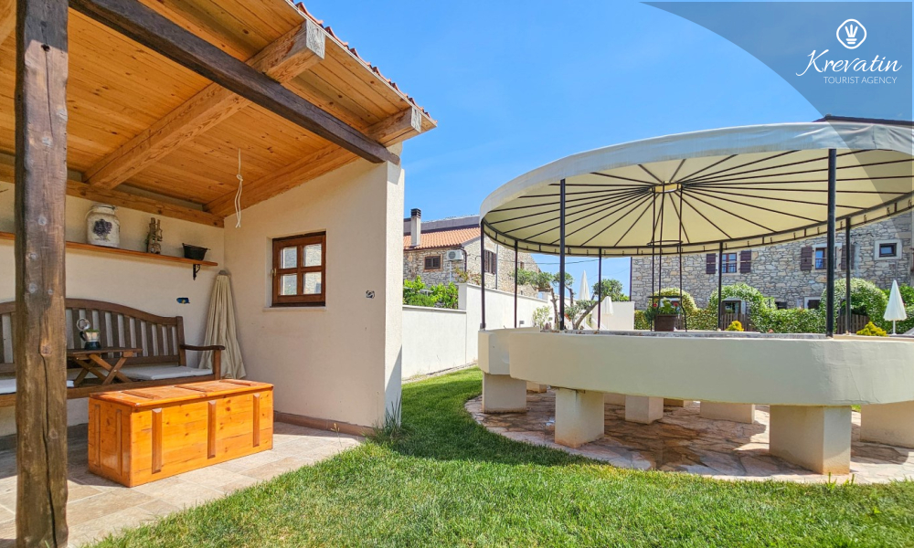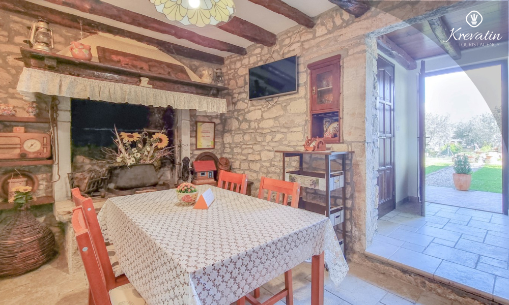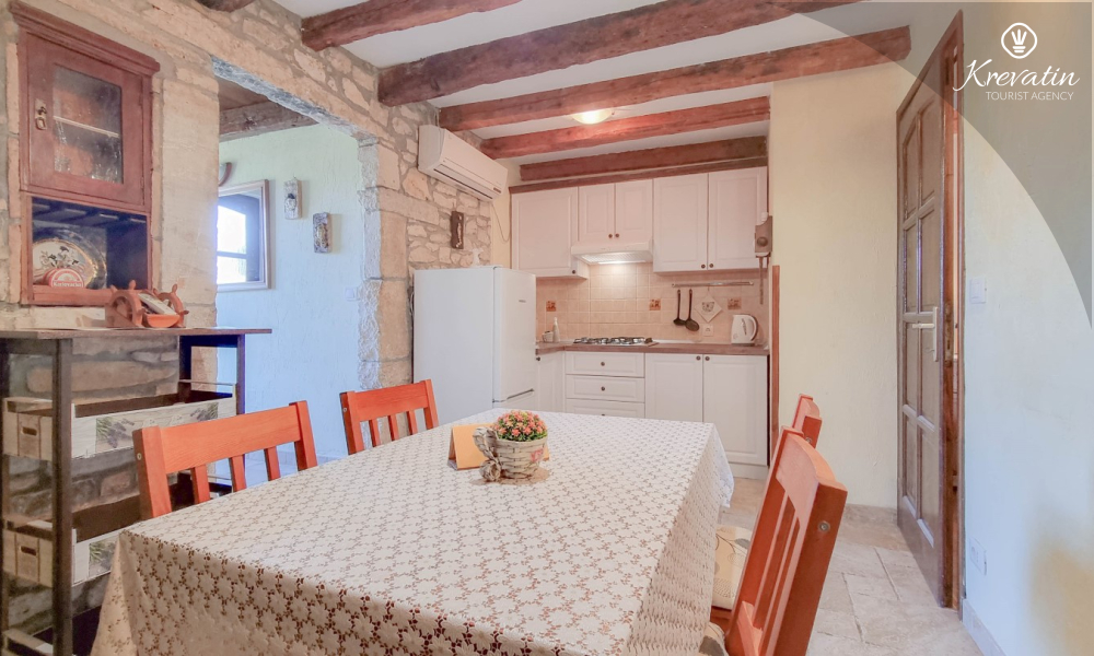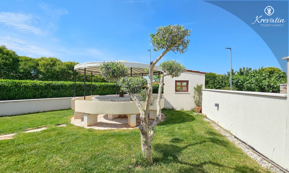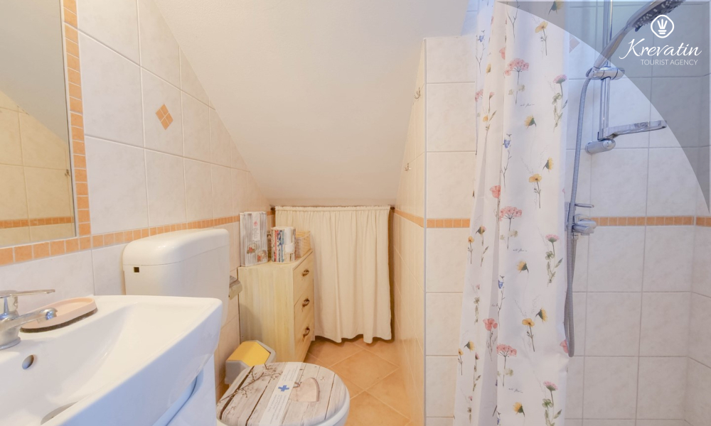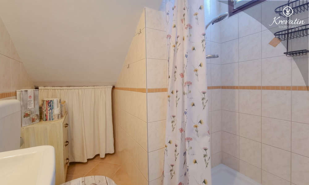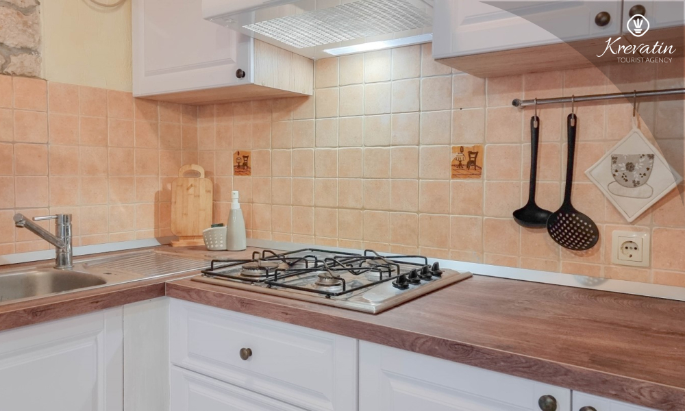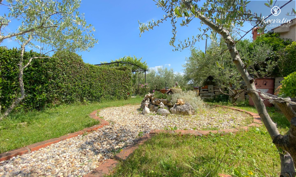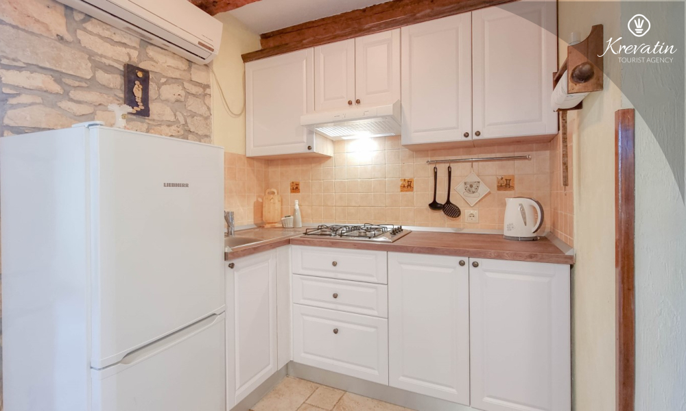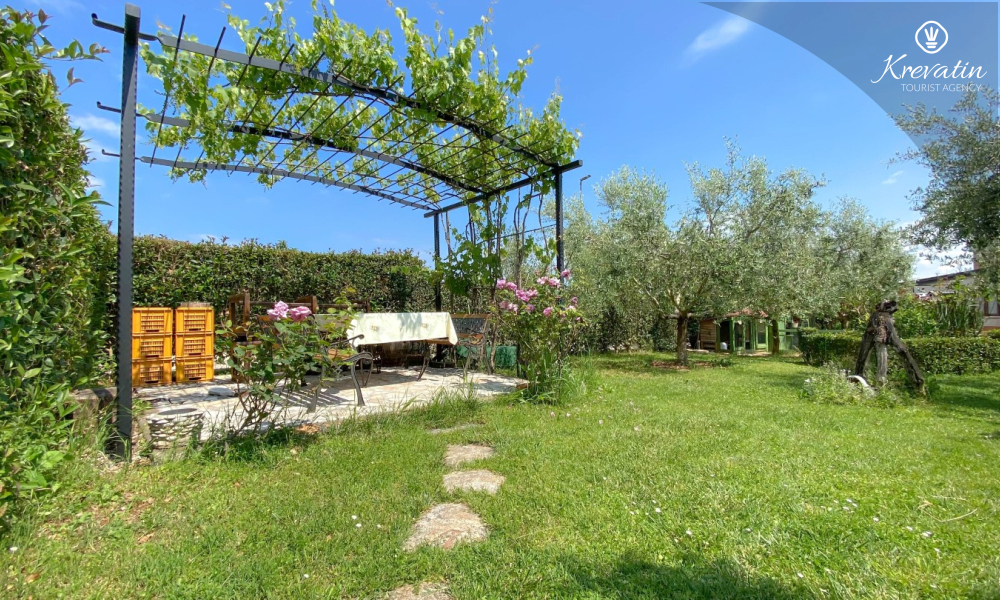 Apartman nudi udobnu spavaću sobu, kuhinju s blagovaonicom opremljenu osnovnim stvarima kao i praktičnu kupaonicu s tušem i WC-om. Na raspolaganju je natkrivena terasa s pogledom na zeleni zajednički vrt, te vanjski bazen koji je na raspolaganju svim gostima kuće.