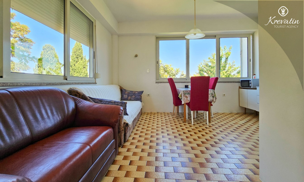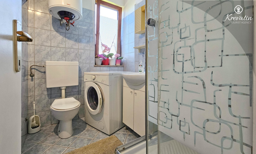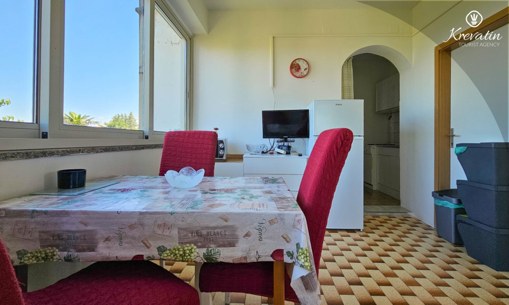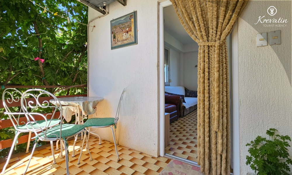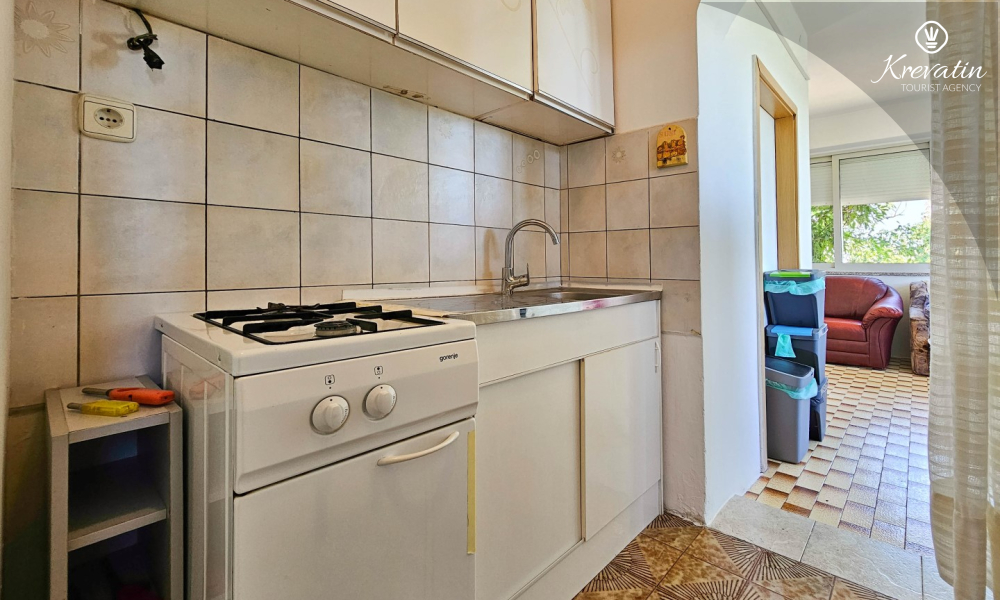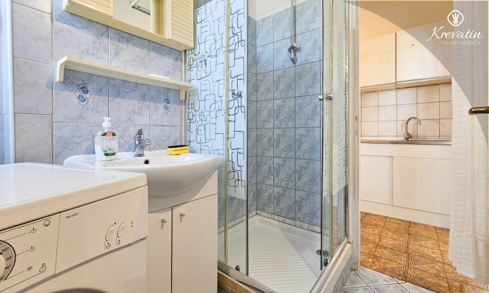 Sastoji se od udobne spavaće sobe, praktičnog dnevnog boravka s blagovaonicom i kuhinje opremljene osnovnim stvarima za pripremu jednostavnih obroka. Apartman ima praktičnu kupaonicu s tušem, WC-om i perilicom rublja.