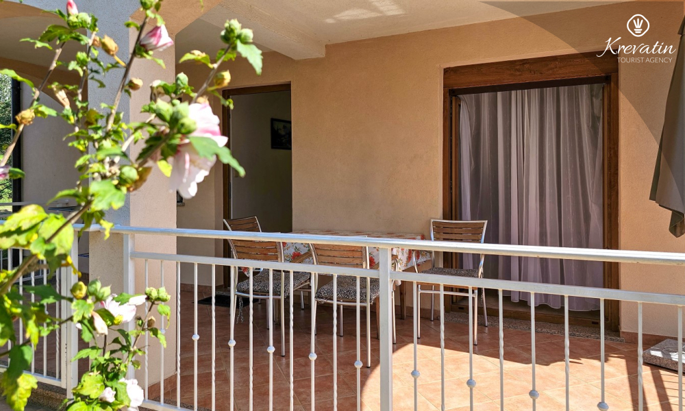 Apartman nudi dvije spavaće sobe, dnevni boravak s kaučem na razvlačenje, potpuno opremljenu kuhinju s blagovaonicom i kupaonicu s tušem i WC-om. Na raspolaganju je terasa sa stolom i stolicama gdje možete uživati u jutarnjoj kavi ili večernjem druženju na otvorenom.