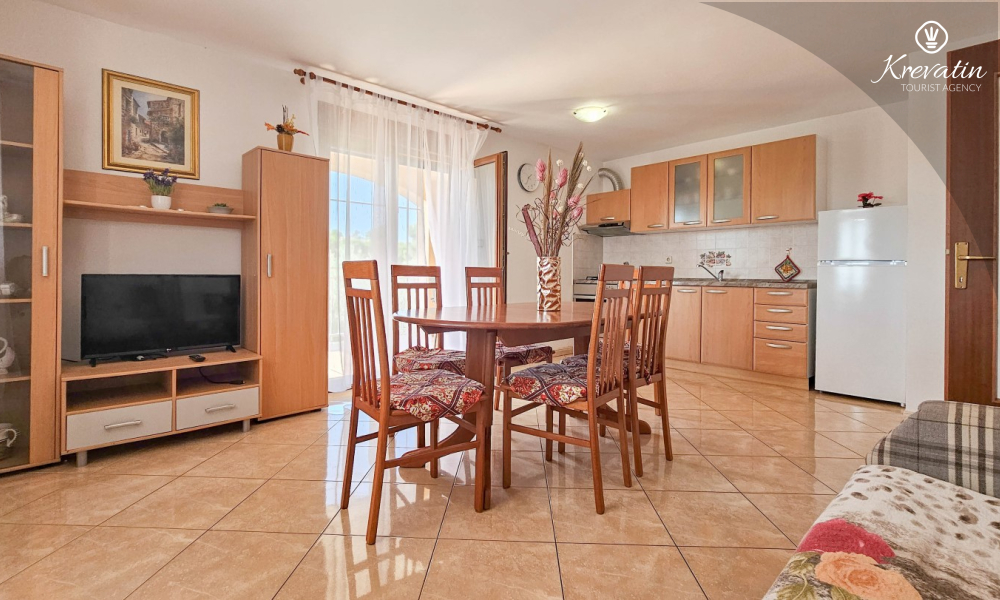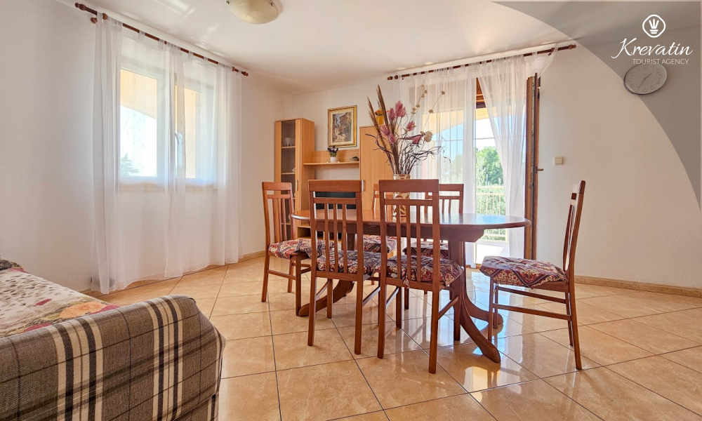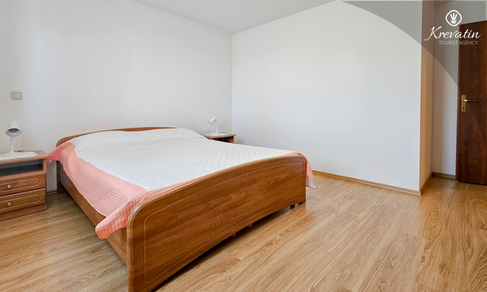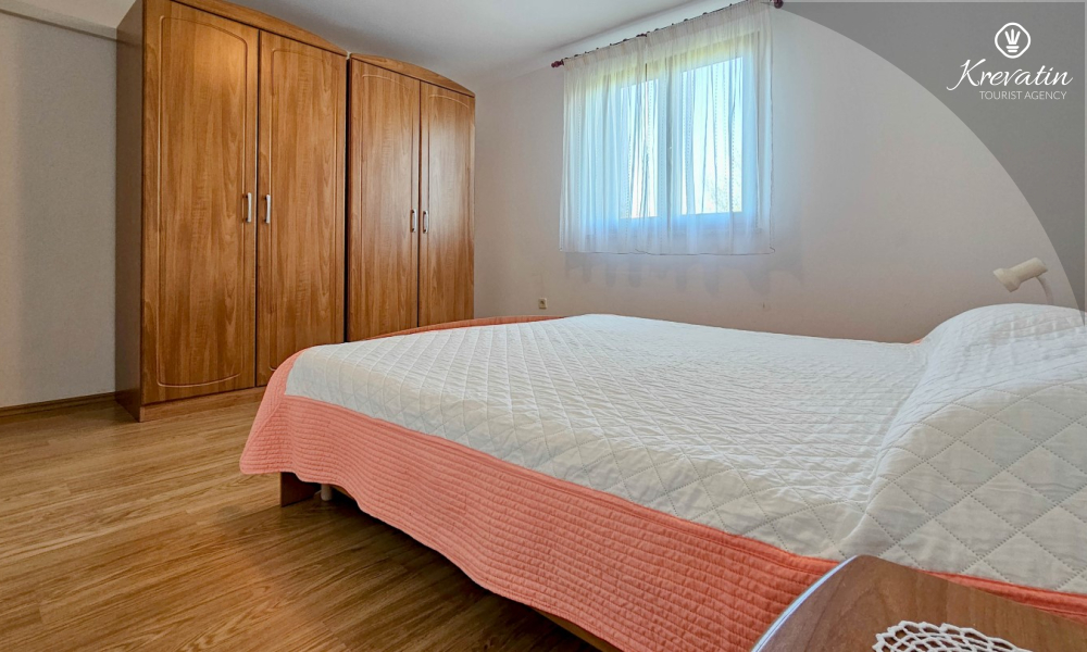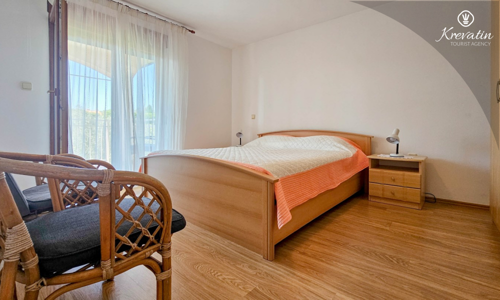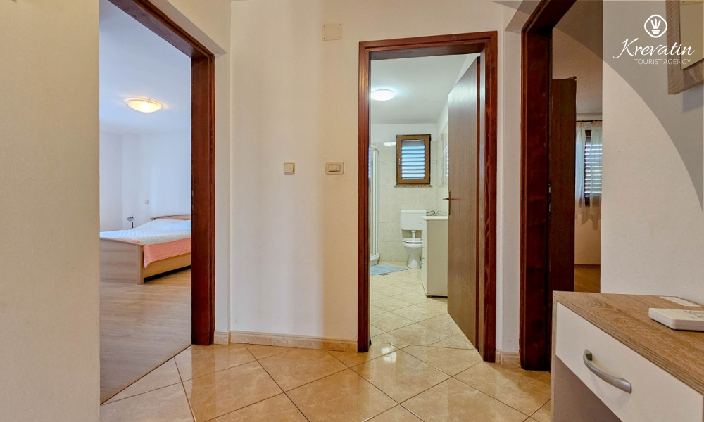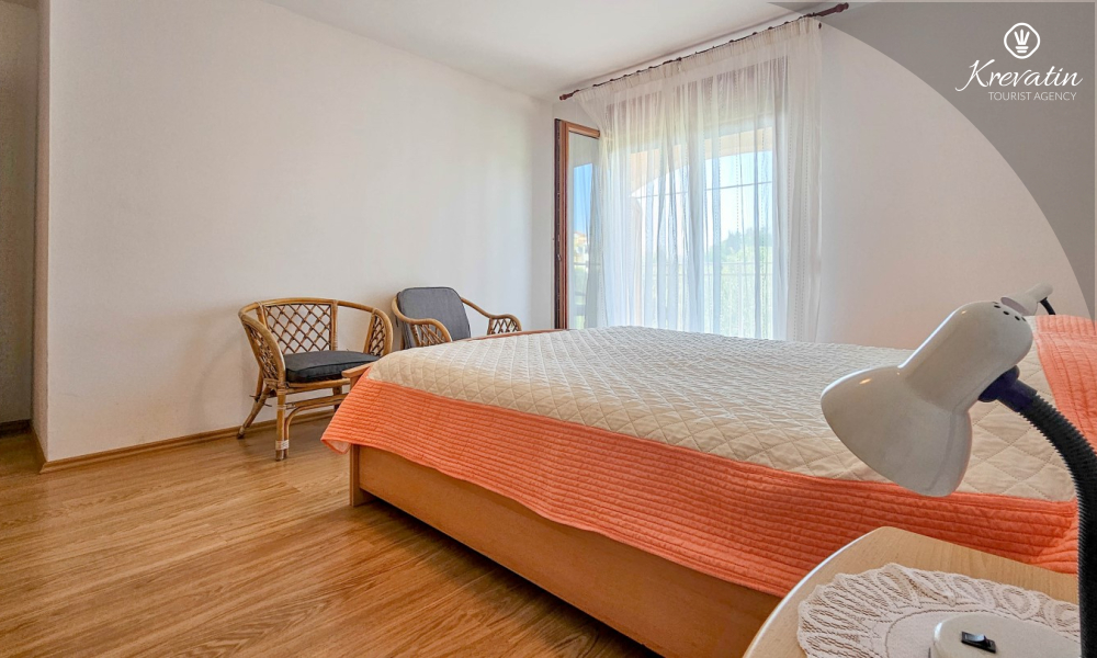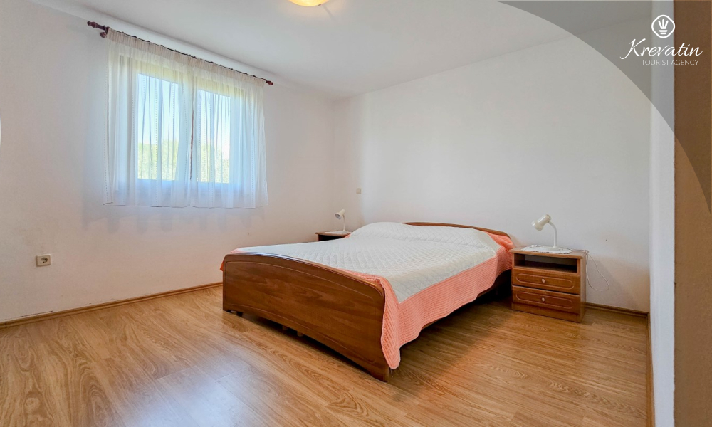 Nalazi se na prvom katu kuće i sastoji se od dvije spavaće sobe, dnevnog boravka s kaučem na razvlačenje, potpuno opremljene kuhinje s blagovaonicom i praktične kupaonice. Balkon s pogledom na zelenilo savršeno je mjesto za jutarnju kavu ili večernje opuštanje.