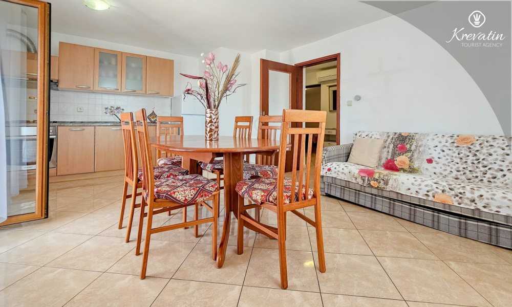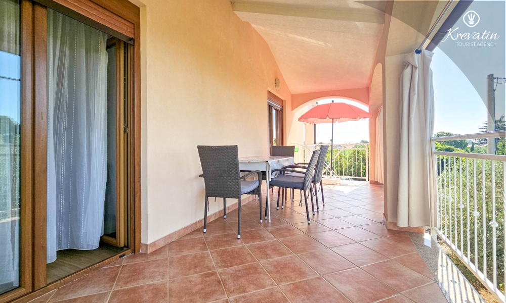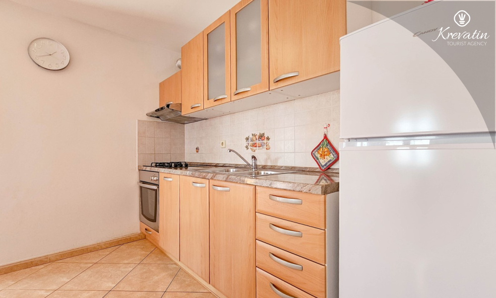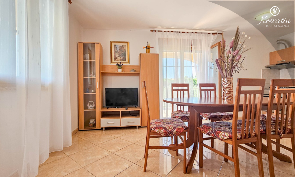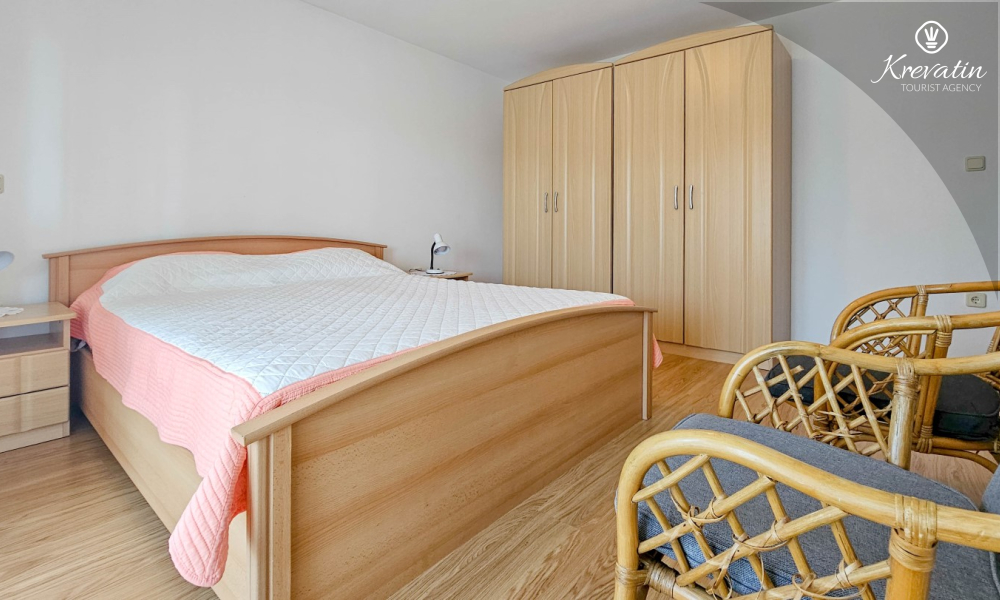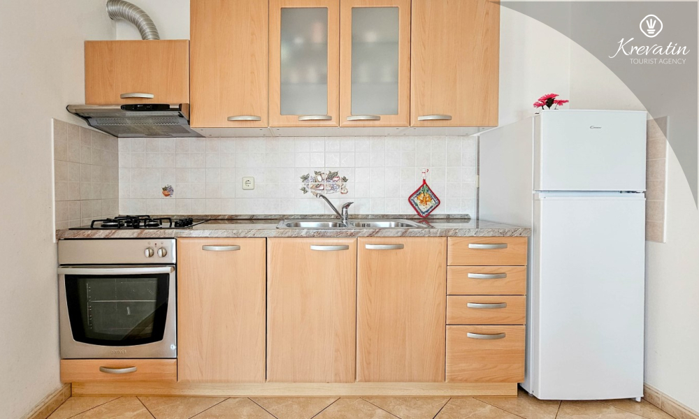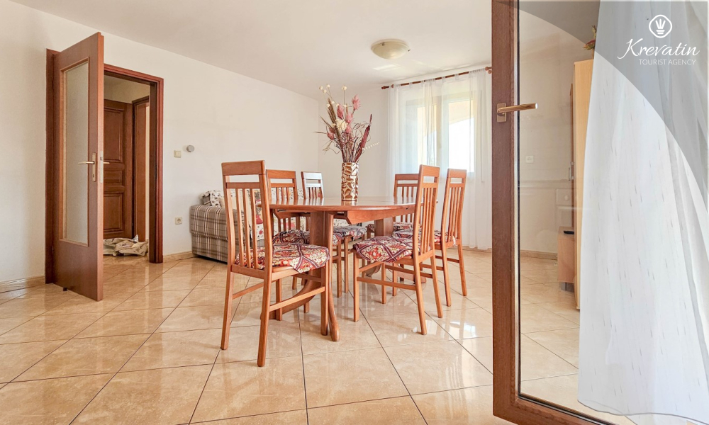 Nalazi se na prvom katu kuće i sastoji se od dvije spavaće sobe, dnevnog boravka s kaučem na razvlačenje, potpuno opremljene kuhinje s blagovaonicom i praktične kupaonice. Balkon s pogledom na zelenilo savršeno je mjesto za jutarnju kavu ili večernje opuštanje.