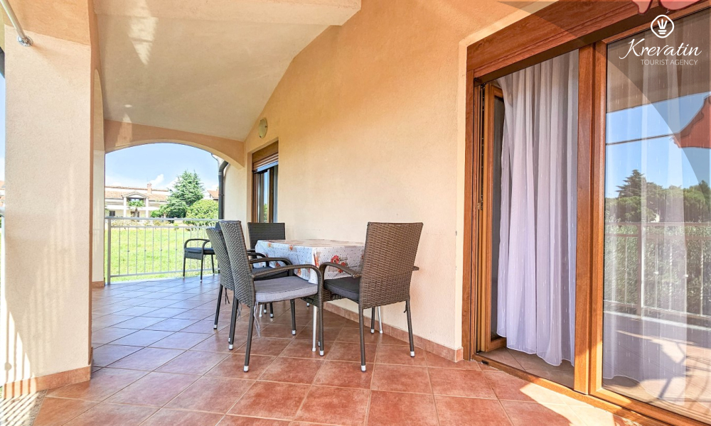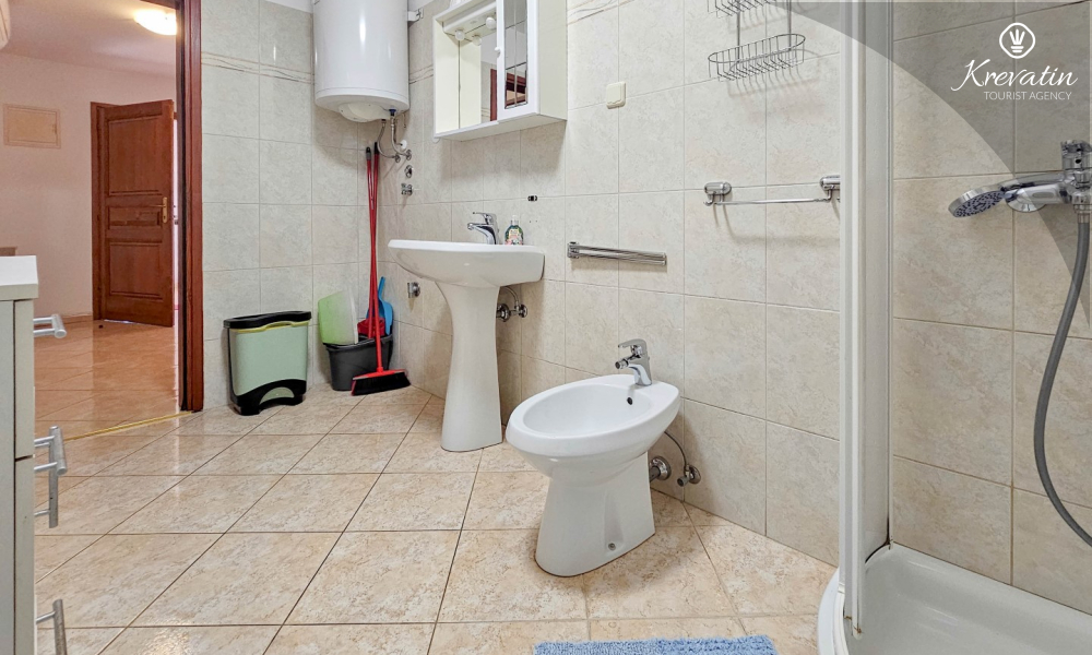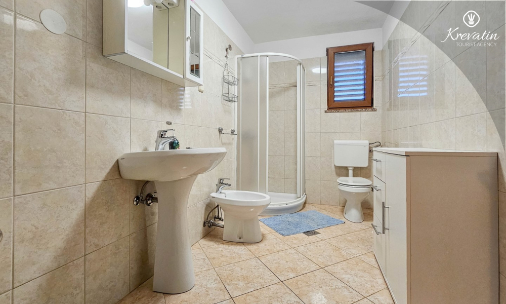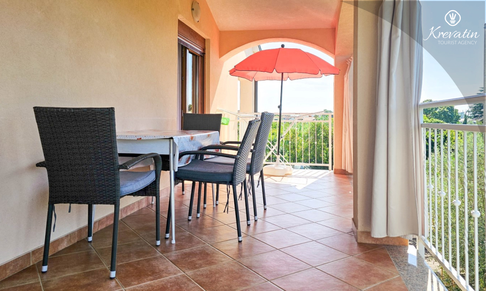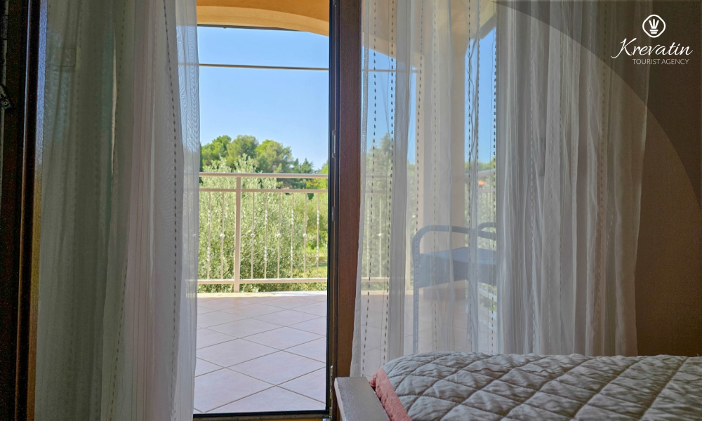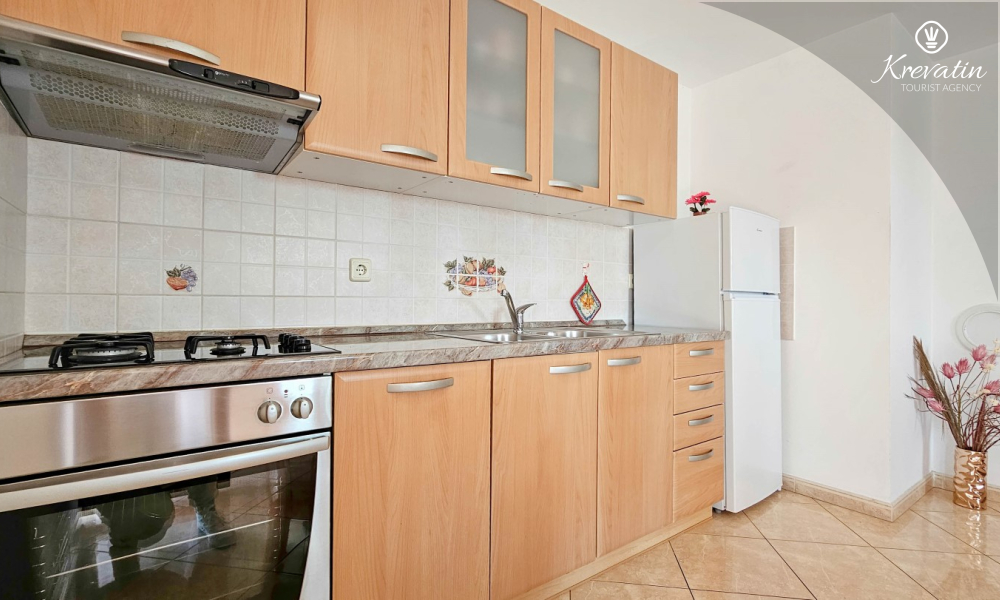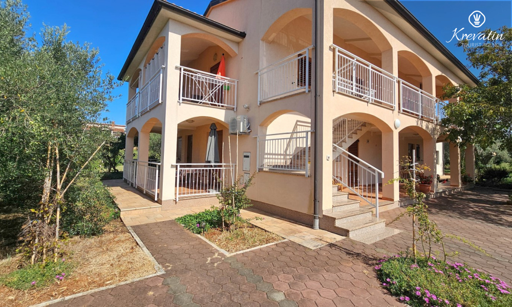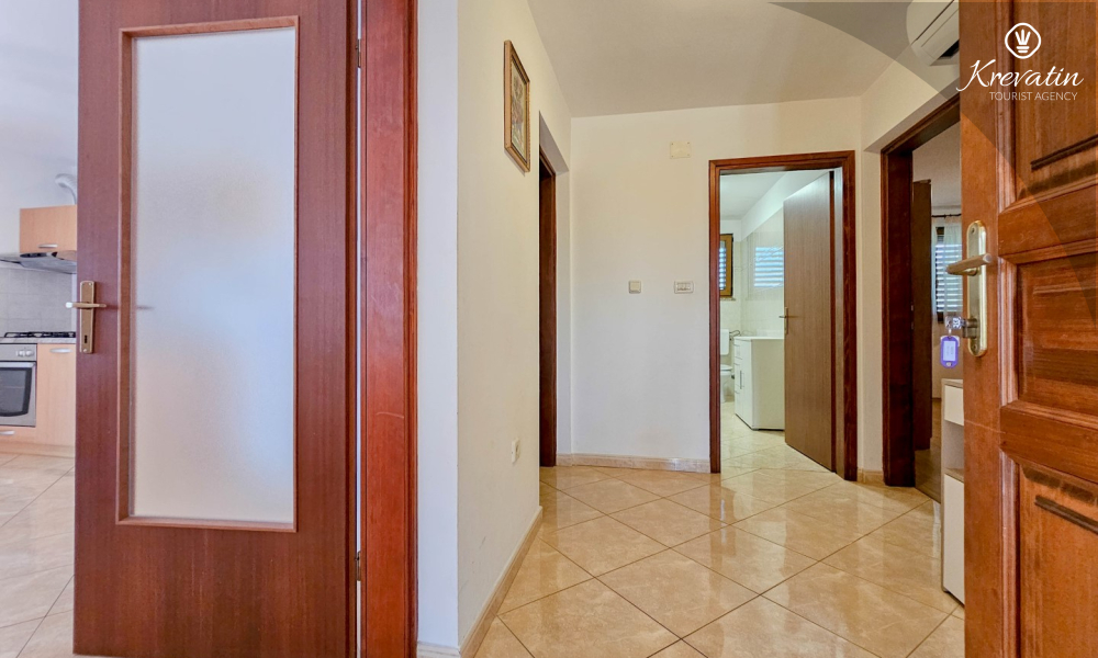 Nalazi se na prvom katu kuće i sastoji se od dvije spavaće sobe, dnevnog boravka s kaučem na razvlačenje, potpuno opremljene kuhinje s blagovaonicom i praktične kupaonice. Balkon s pogledom na zelenilo savršeno je mjesto za jutarnju kavu ili večernje opuštanje.