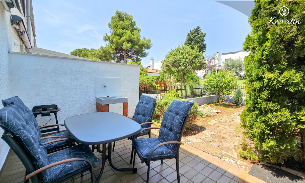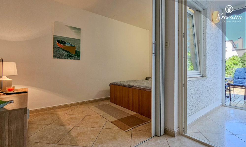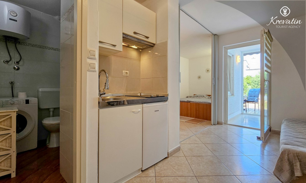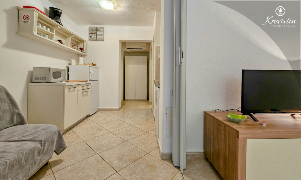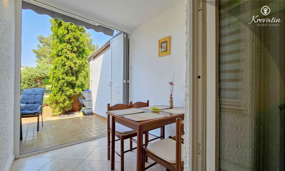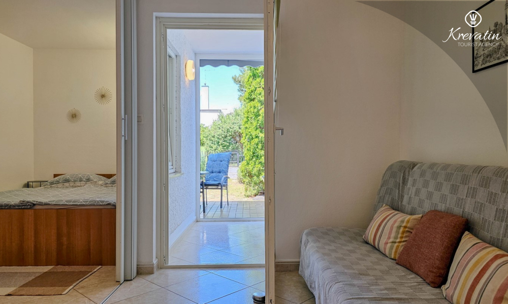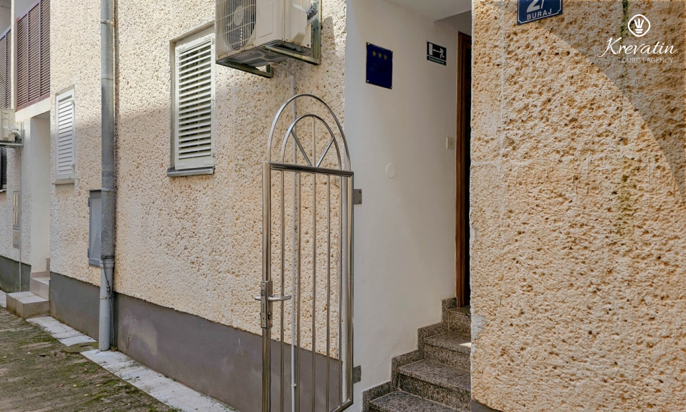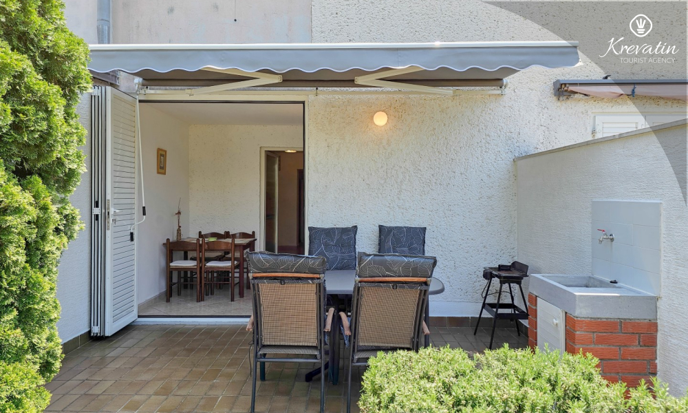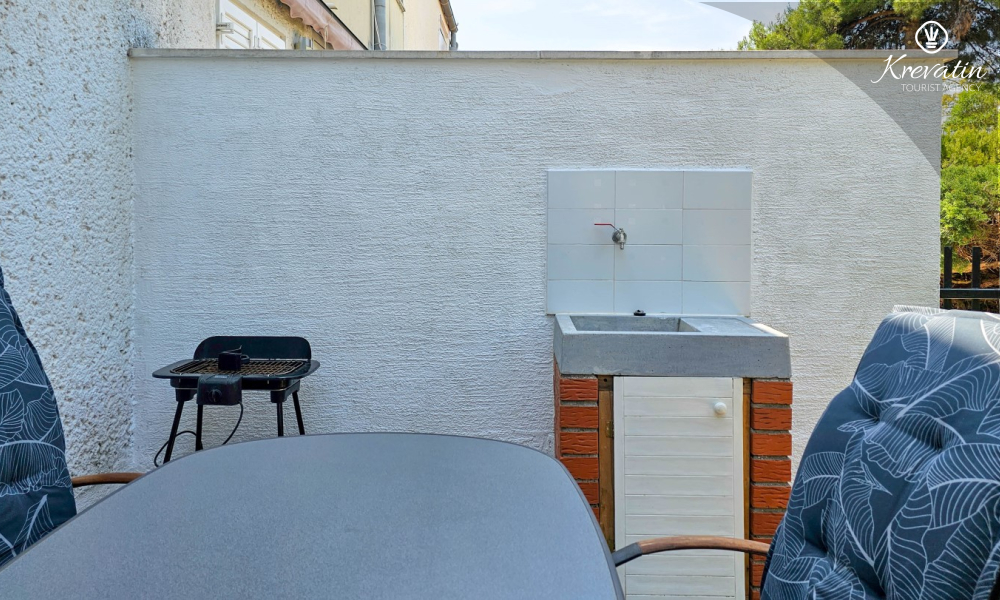 Jedna od prednosti ovog apartmana je njegova blizina mora. Možete uživati u svježem zraku i mirisima Mediterana jer je plaža udaljena samo nekoliko minuta hoda. Osim toga, apartman ima malo dvorište s roštiljem, gdje možete pripremiti ukusne obroke na otvorenom i opustiti se uz druženje s obitelji ili prijateljima.