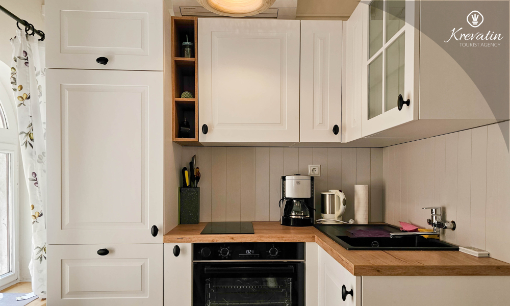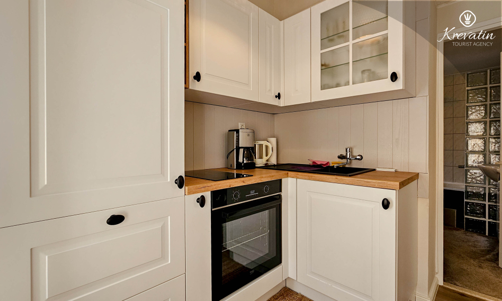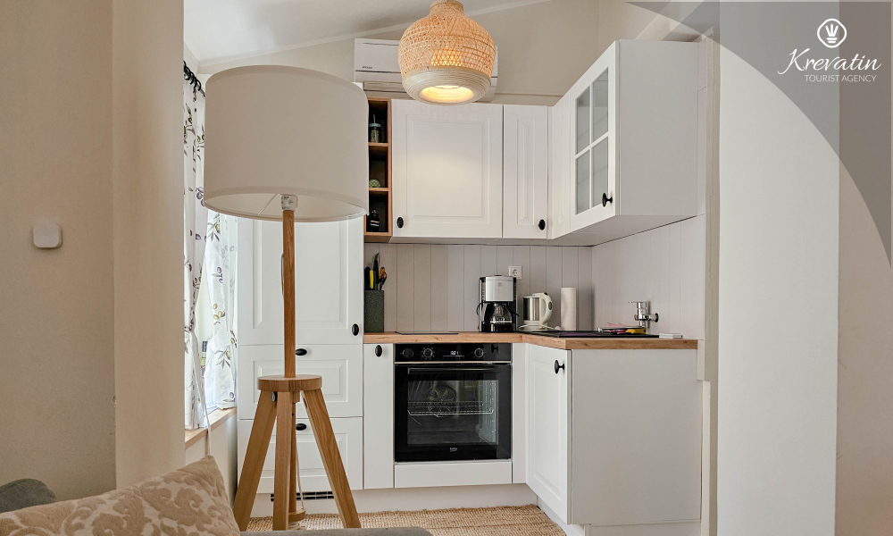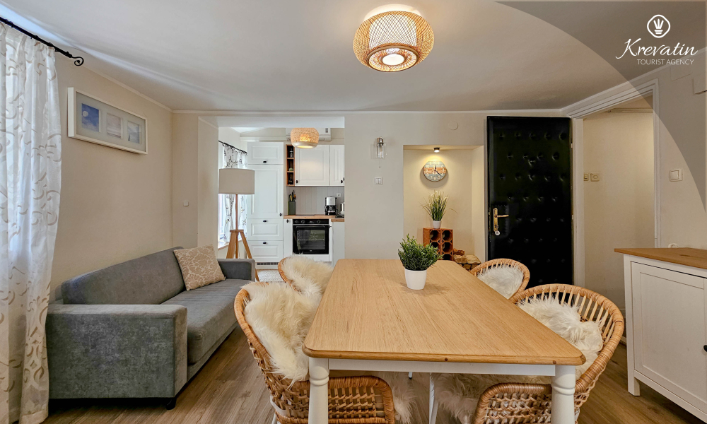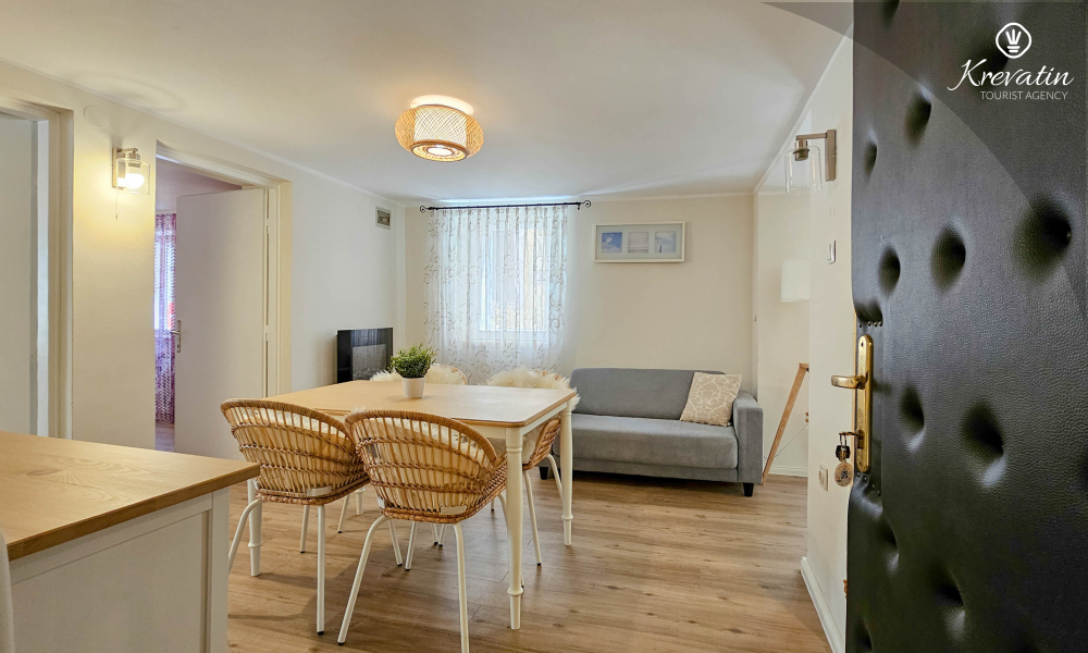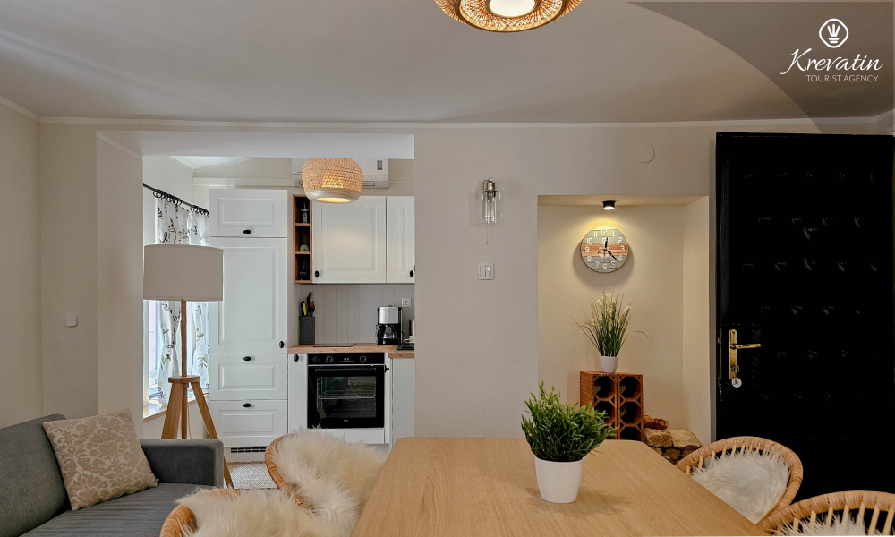 Dobrodošli u naš apartman smješten u samom srcu Novigrada, jednog od najljepših gradova na istarskoj obali. Naš udoban apartman površine 43 m2 savršen je za ugodan boravak četiri osobe. Kuhinja je opremljena osnovnim stvarima i ima aparat za kavu, tako da možete pripremiti omiljene obroke ili se opustiti uz šalicu kave.
