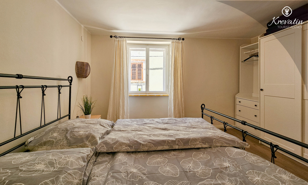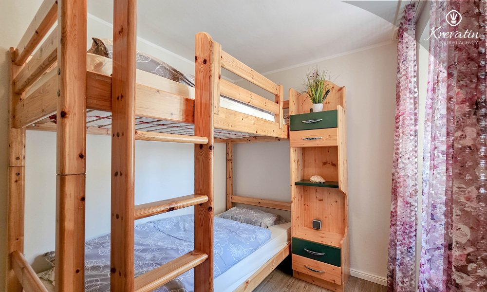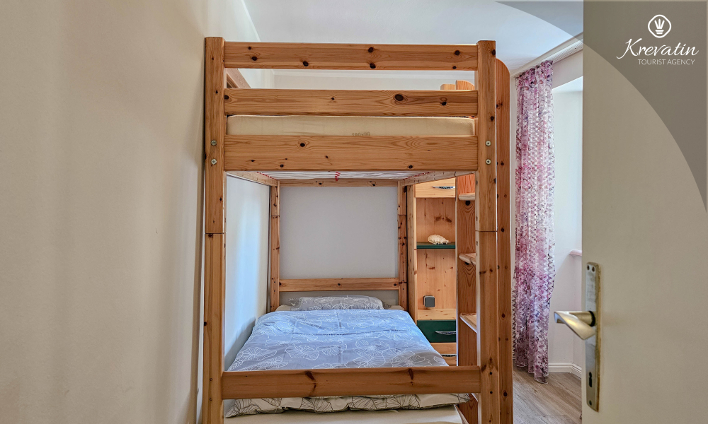 Apartman ima dvije spavaće sobe. Prva soba ima udoban bračni krevet, idealan za miran noćni odmor. Druga soba je opremljena krevetom na katom, idealnom za obitelji ili prijatelje koji putuju zajedno. Kupatilo je lijepo uređeno i ima perilicu rublja za vašu udobnost.
