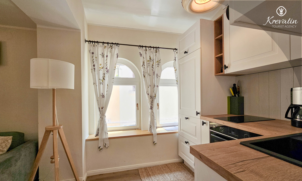 Napomena: Buduci da se apartman nalazi u starom gradu, neposredno uz kuću nema parkirnog mjesta. Parkirno mjesto moguće je pronaći na javnim