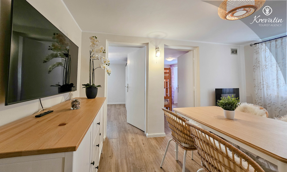 Osim toga, apartman ima klima uređaj i televiziju kako biste se osjećali kao kod kuće. Za goste koji dolaze automobilom, parking je dostupan na javnoj površini uz nadoplatu.