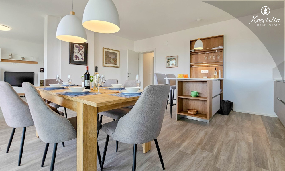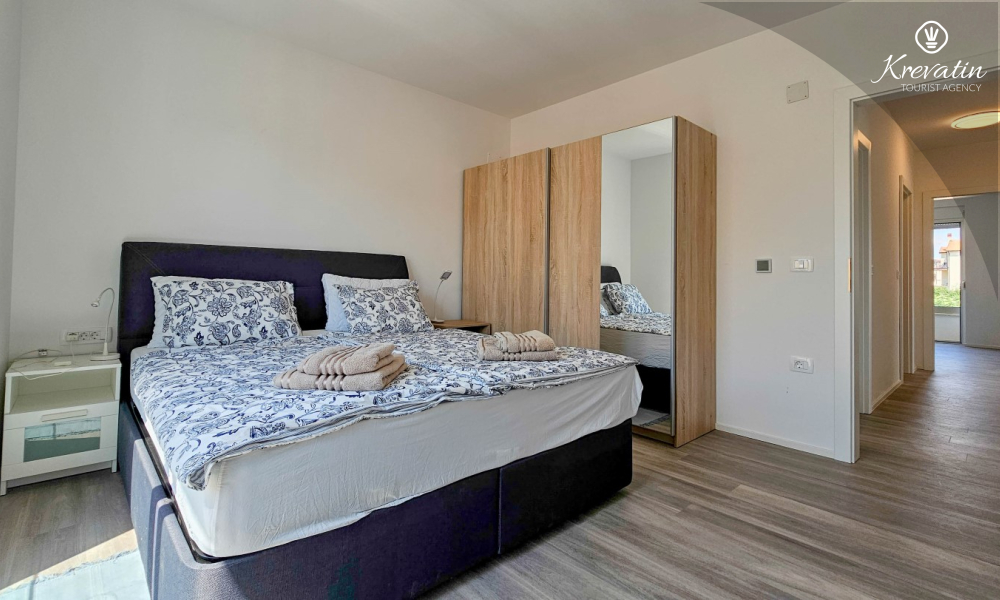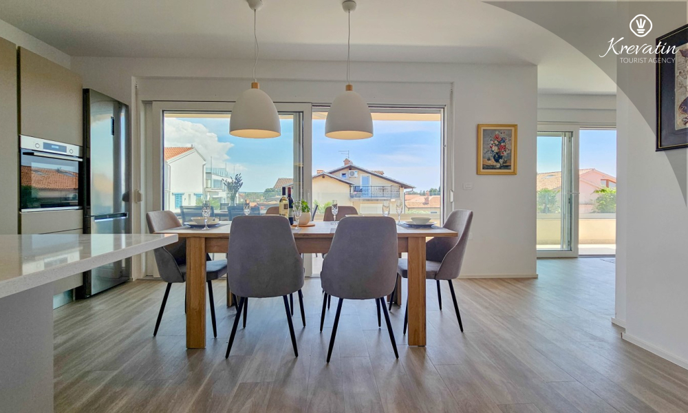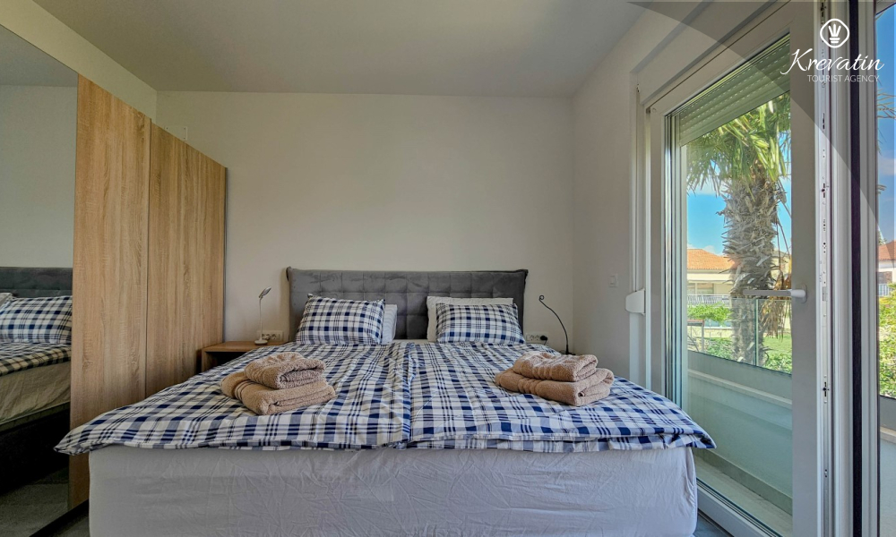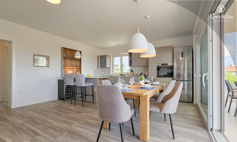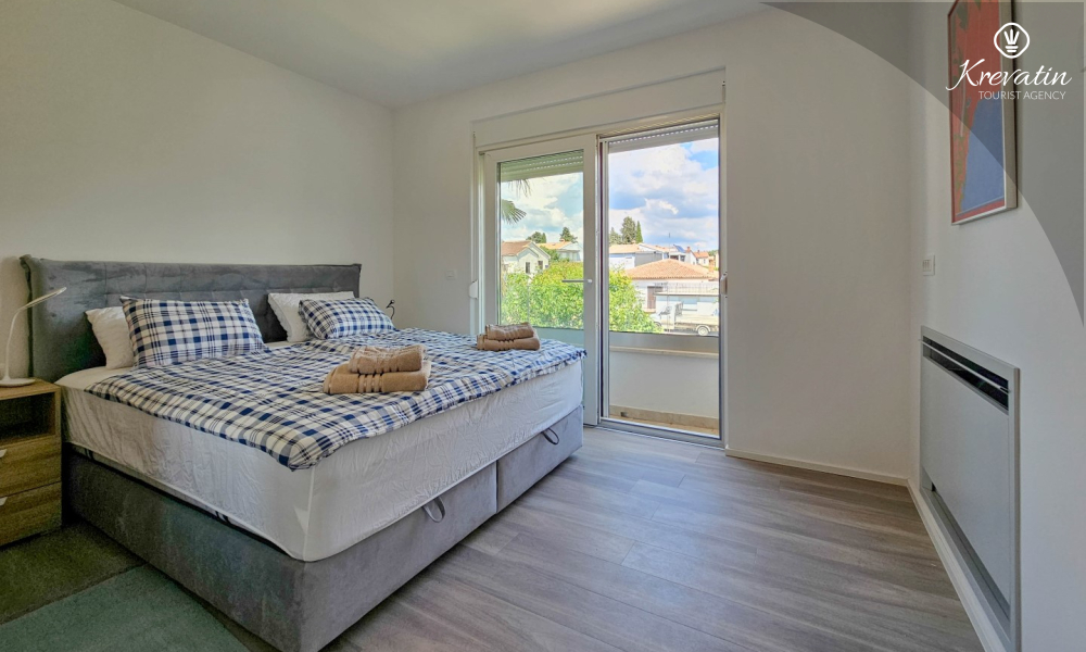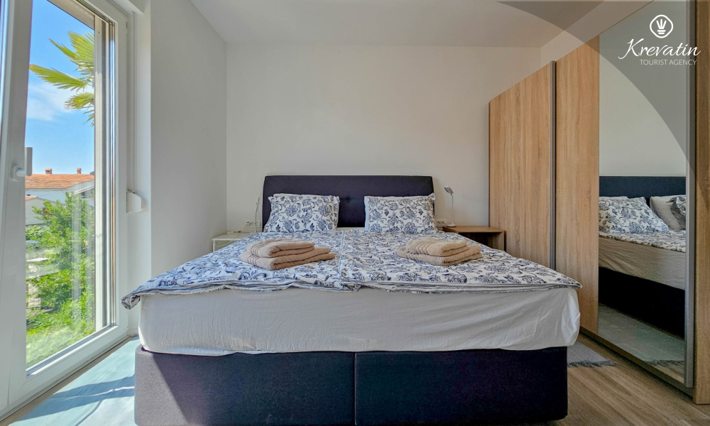 Otkrijte udobnost i suvremeni stil u našem apartmanu smještenom na drugom katu kuće u Novigradu. Potpuno renoviran, ovaj apartman nudi svježe uređene prostore s modernim dodirima. U njemu se nalaze dvije udobne spavaće sobe s bračnim krevetima te kauč za razvlačenje koji pruža dodatno spavanje za još dvije osobe. Uživajte u lijepo uređenom dnevnom boravku i potpuno opremljenoj kuhinji koja će zadovoljiti sve vaše potrebe. S obzirom na udobnost i praktičnost, apartman ima dvije kupaonice kako bi se osigurala privatnost i praktičnost za sve goste. Naš balkon s udobnom sjedećom garniturom pruža vam priliku da uživate u svježem zraku i uživate u pogledu na okolinu. Dobrodošli u naš apartman u Novigradu, idealan izbor za opuštajući i udoban boravak. Napomena: u periodu od 01.10. do 01.04. ovaj apartman je moguće rezevirati na duži (mjesecni) period po posebnoj cijeni. Kontaktirajte nas za više informacija.