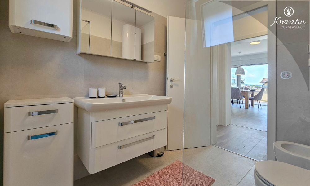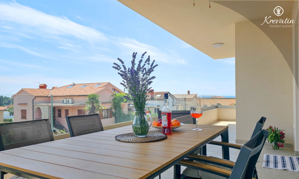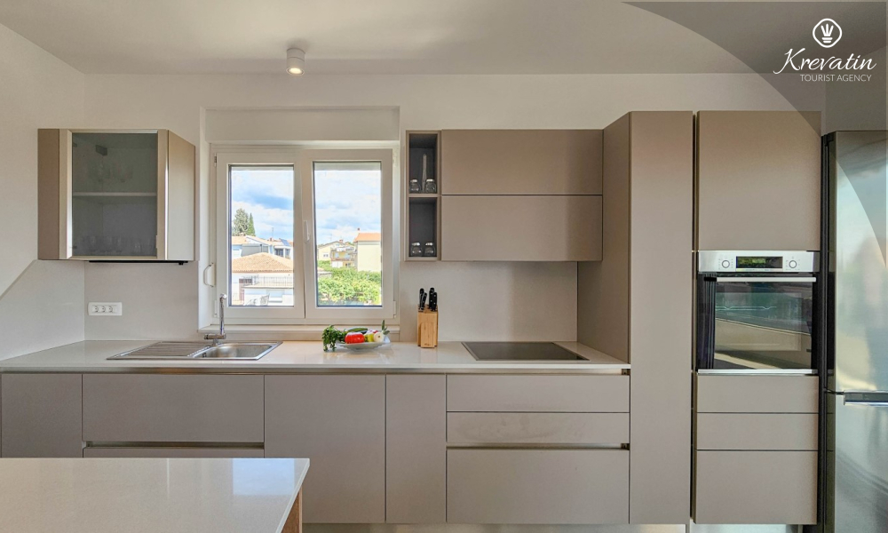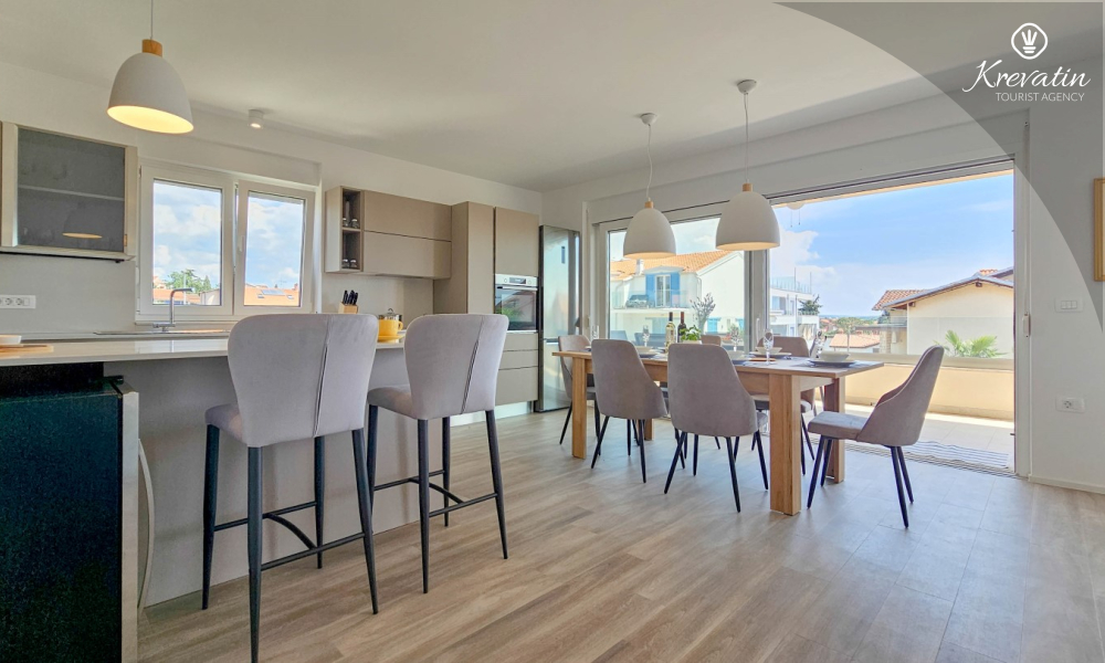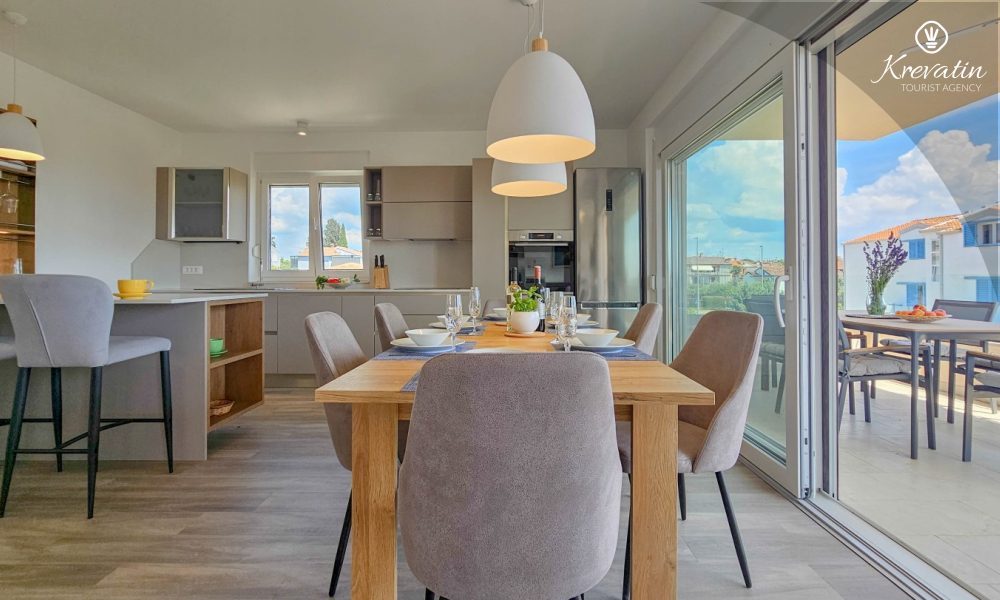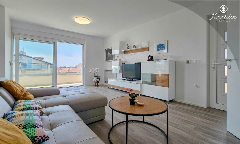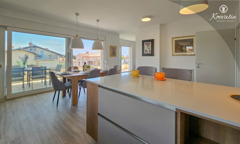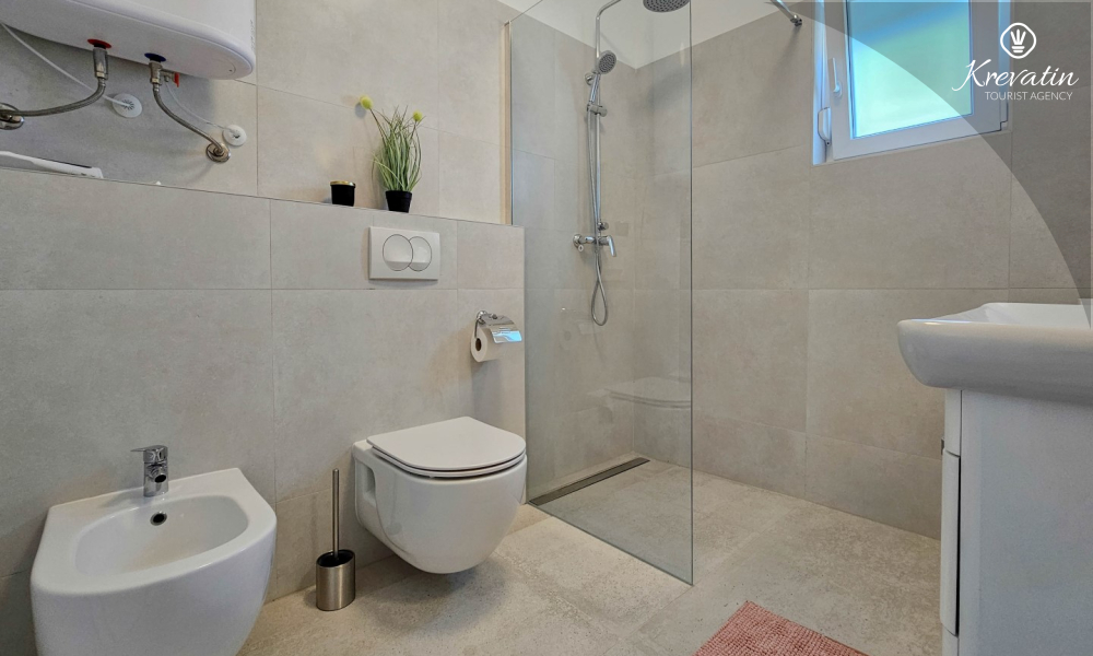 Otkrijte udobnost i suvremeni stil u našem apartmanu smještenom na drugom katu kuće u Novigradu. Potpuno renoviran, ovaj apartman nudi svježe uređene prostore s modernim dodirima. U njemu se nalaze dvije udobne spavaće sobe s bračnim krevetima te kauč za razvlačenje koji pruža dodatno spavanje za još dvije osobe. Uživajte u lijepo uređenom dnevnom boravku i potpuno opremljenoj kuhinji koja će zadovoljiti sve vaše potrebe. S obzirom na udobnost i praktičnost, apartman ima dvije kupaonice kako bi se osigurala privatnost i praktičnost za sve goste. Naš balkon s udobnom sjedećom garniturom pruža vam priliku da uživate u svježem zraku i uživate u pogledu na okolinu. Dobrodošli u naš apartman u Novigradu, idealan izbor za opuštajući i udoban boravak. Napomena: u periodu od 01.10. do 01.04. ovaj apartman je moguće rezevirati na duži (mjesecni) period po posebnoj cijeni. Kontaktirajte nas za više informacija.