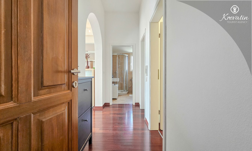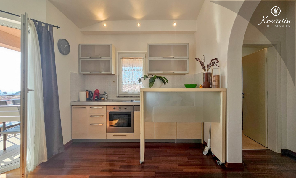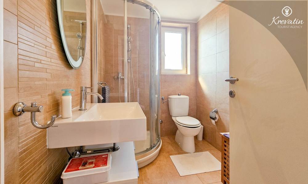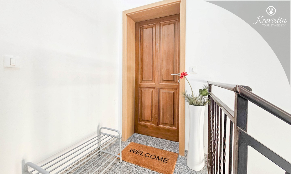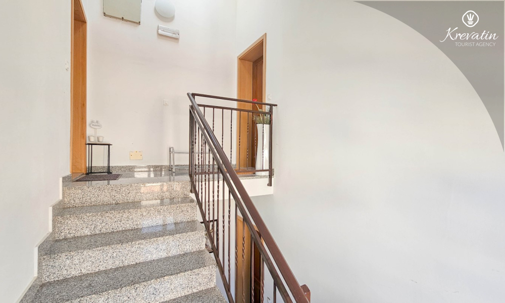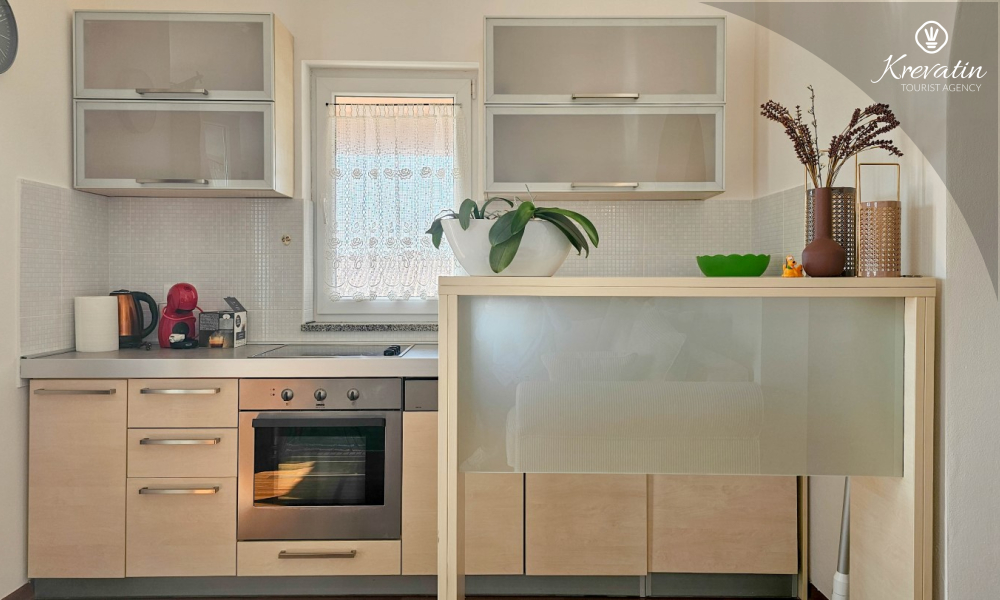 Apartman se sastoji od dvije spavaće sobe, obje opremljene bračnim krevetima, pružajući miran san nakon dana istraživanja. Kuhinja s dnevnim boravkom i blagovaonicom nudi funkcionalnost i udobnost, opremljena osnovnim potrepštinama za pripremu ukusnih obroka. Dnevni boravak je idealno mjesto za opuštanje uz televiziju ili druženje, a njegov izlaz na balkon omogućuje uživanje u svježem zraku i prekrasnom pogledu.