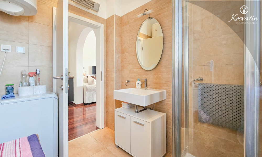 Kupaonica s tušem i perilicom rublja osigurava praktičnost, dok klima uređaj, internet i satelitska televizija pružaju dodatni komfor i zabavu.