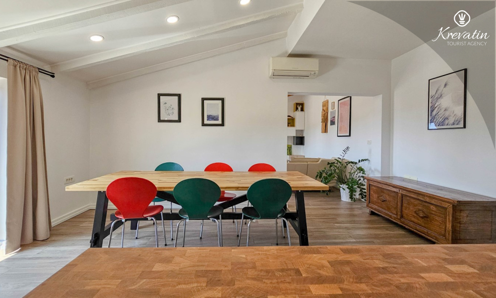 Smješten na drugom katu obiteljske kuće u slikovitom Novigradu, ovaj apartman za 4 osobe savršen je za obitelji ili parove koji žele uživati u udobnosti i miru.