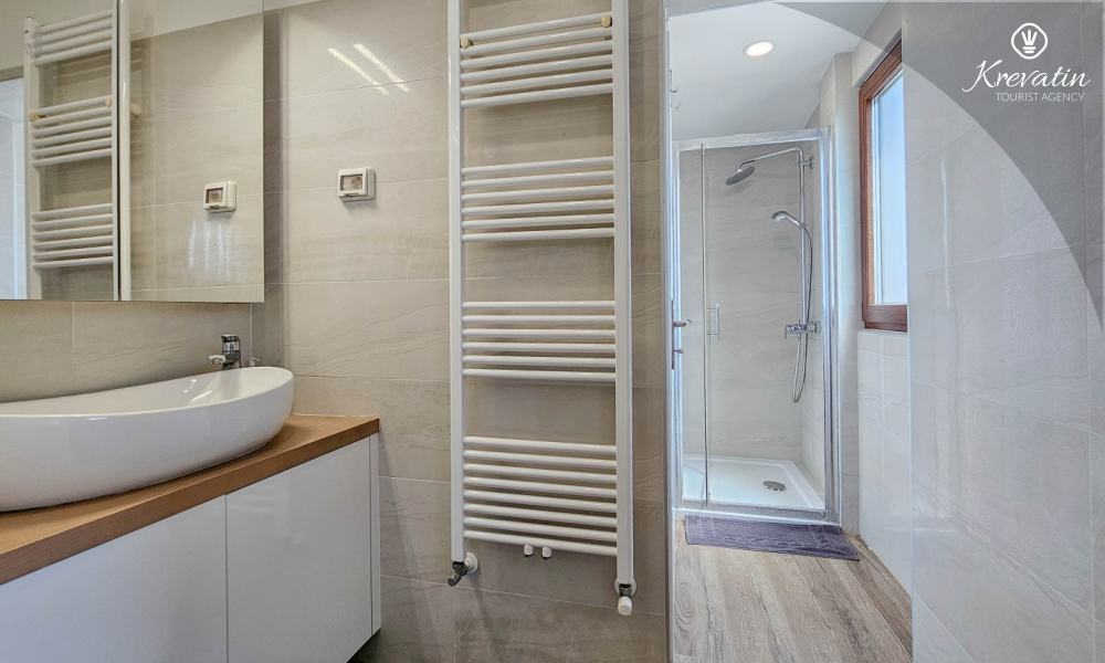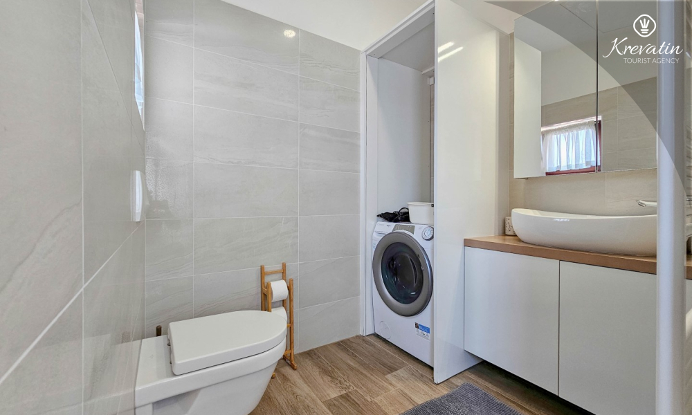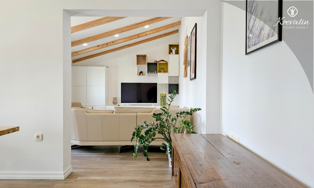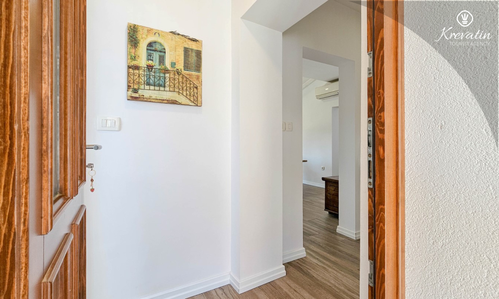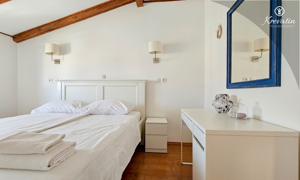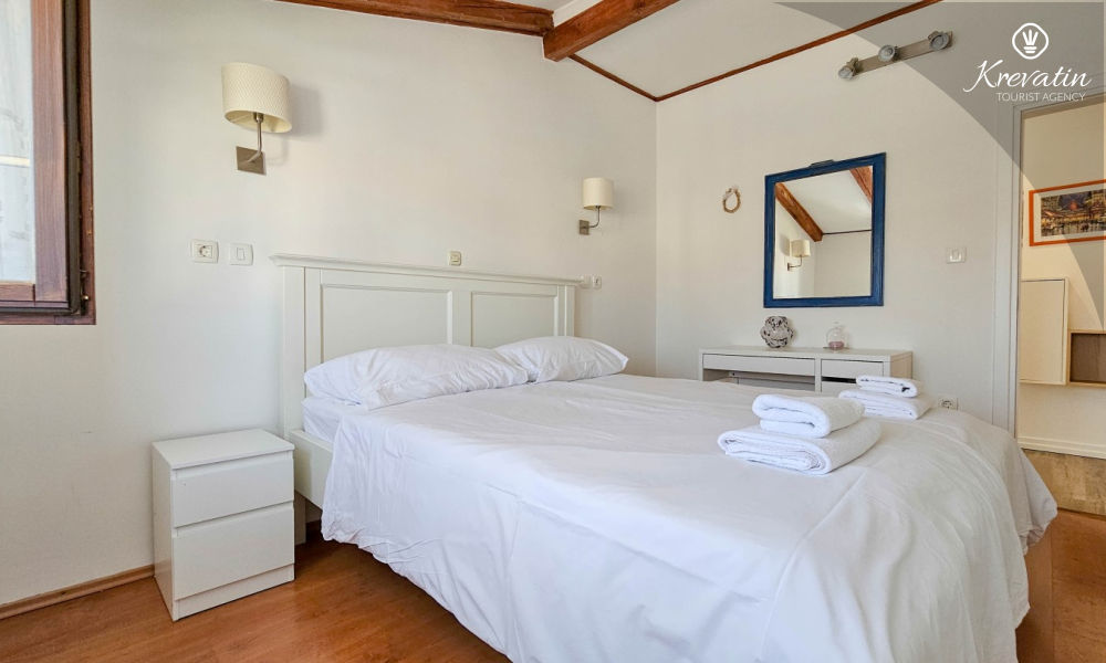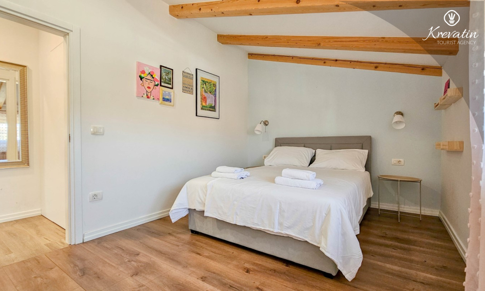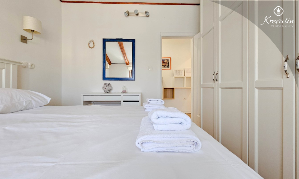 Apartman se sastoji od dvije spavaće sobe s udobnim bračnim krevetima, svijetlog dnevnog boravka i kuhinje s blagovaonicom. Kuhinja je opremljena osnovnim stvarima za pripremu obroka, a na raspolaganju je i prekrasan balkon sa stolom i stolicama, idealan za jutarnju kavu ili večernje opuštanje. Apartman raspolaže i modernom kupaonicom s tušem i WC-om.