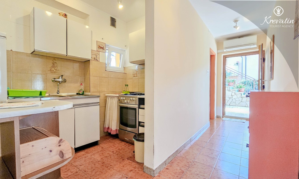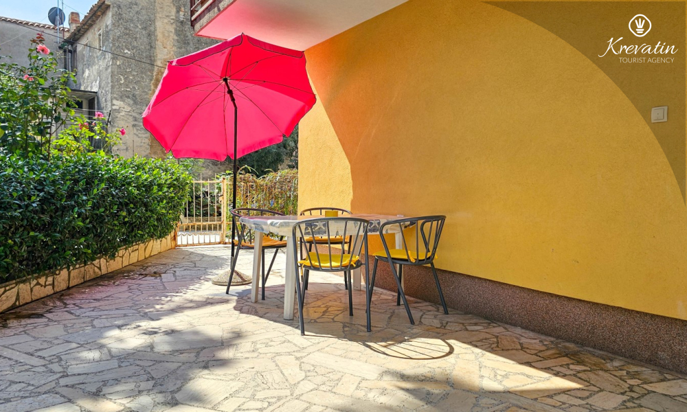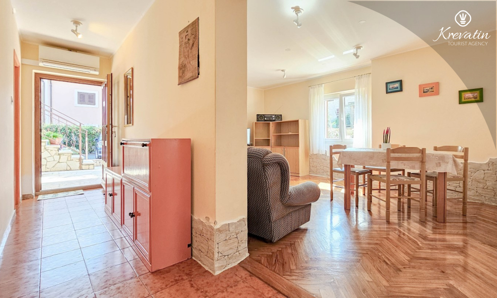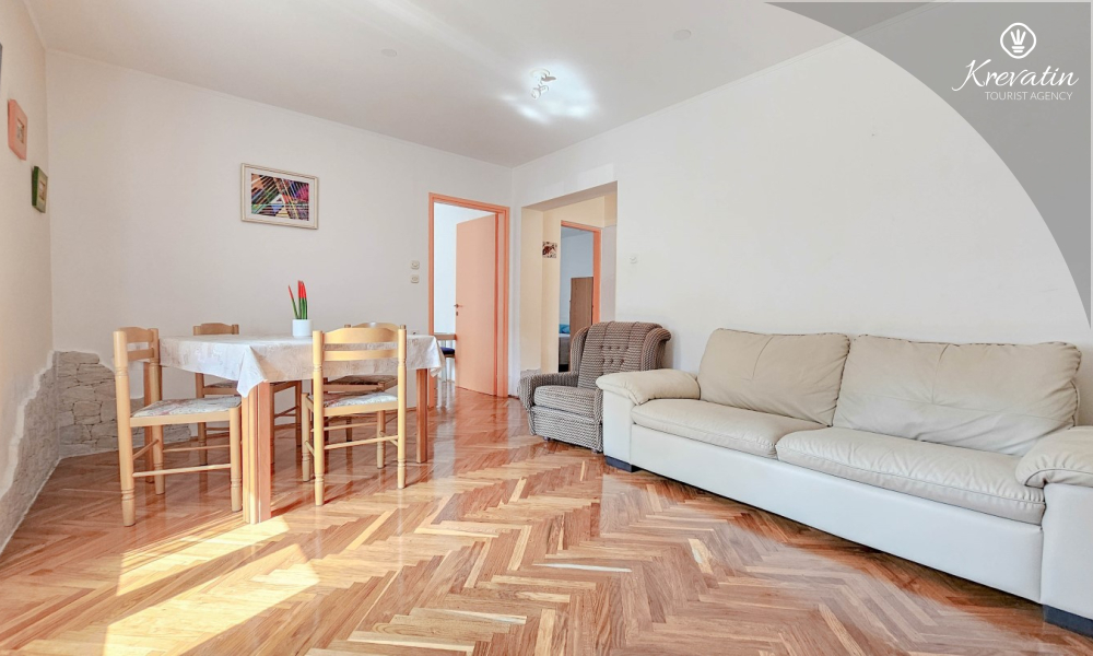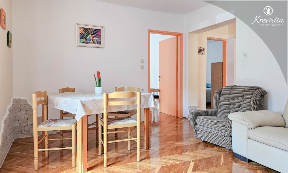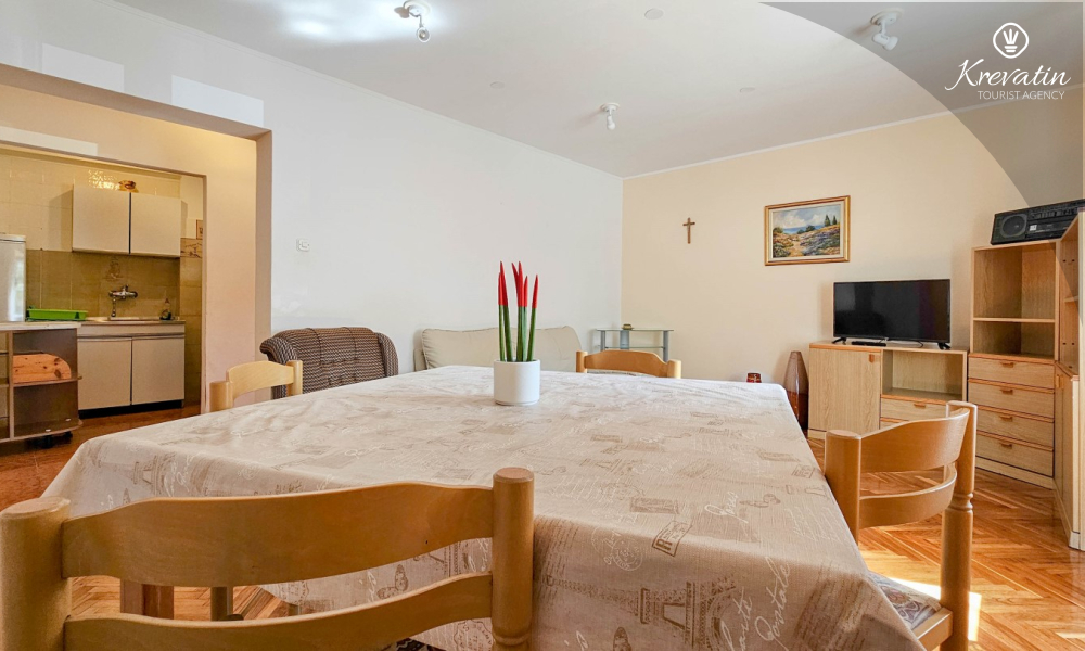 Apartman se nalazi u prizemlju obiteljske kuće i ima 2 spavaće sobe s bračnim krevetima, dnevni boravak s blagovaonicom, kuhinju opremljenu osnovnim stvarima te kupaonicu s tuš kabinom i WC-om. Na raspolaganju je i prostrana terasa sa stolom i stolicama – savršeno mjesto za jutarnju kavu ili večernje opuštanje.