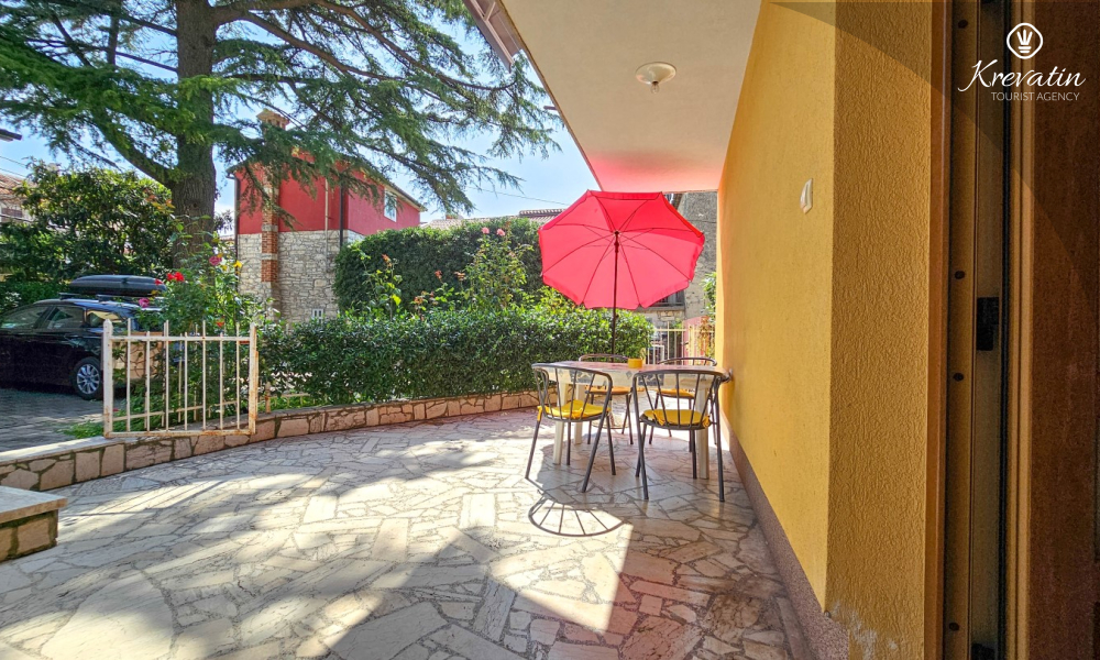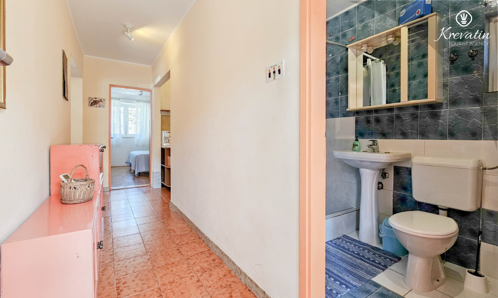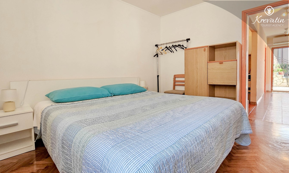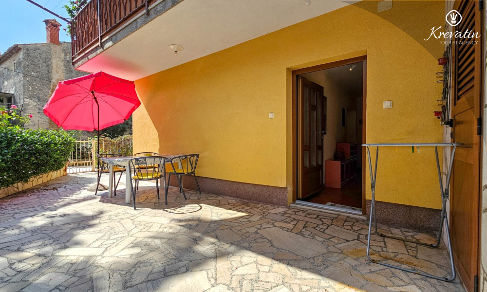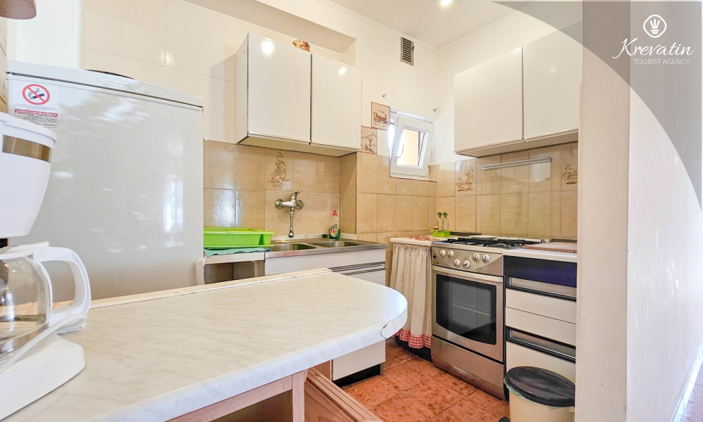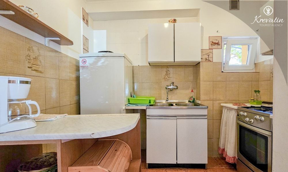 Apartman se nalazi u prizemlju obiteljske kuće i ima 2 spavaće sobe s bračnim krevetima, dnevni boravak s blagovaonicom, kuhinju opremljenu osnovnim stvarima te kupaonicu s tuš kabinom i WC-om. Na raspolaganju je i prostrana terasa sa stolom i stolicama – savršeno mjesto za jutarnju kavu ili večernje opuštanje.
