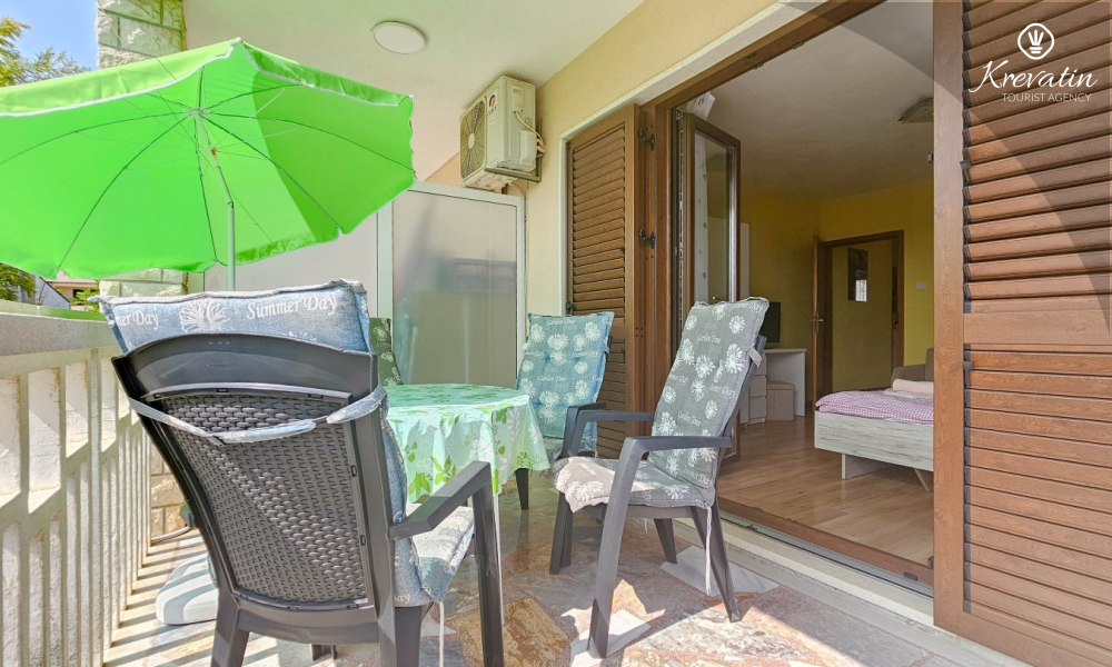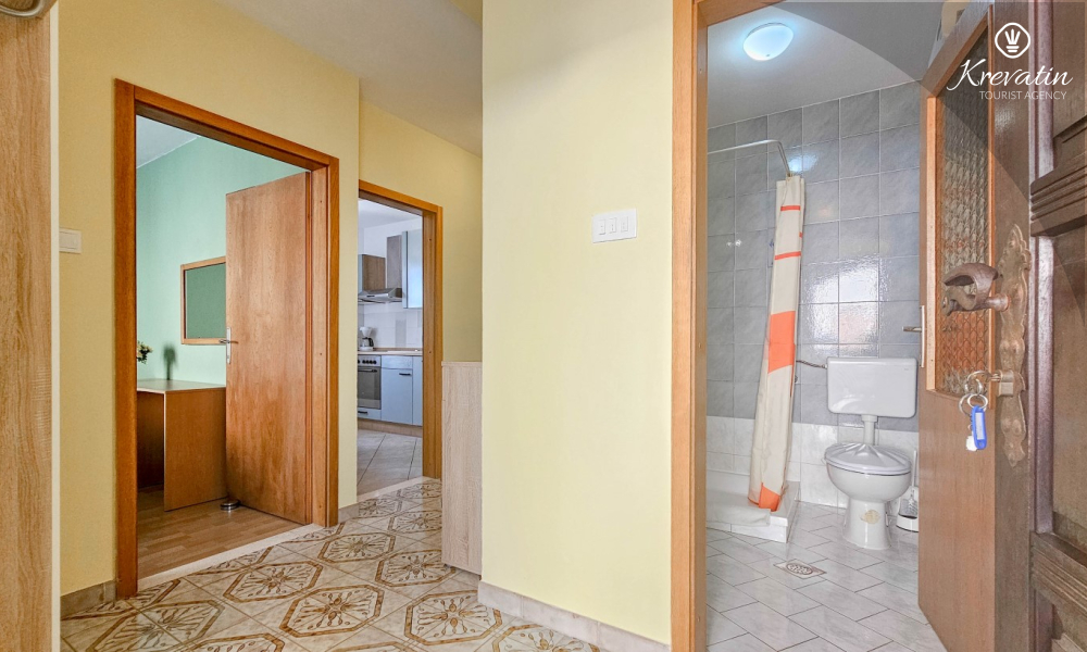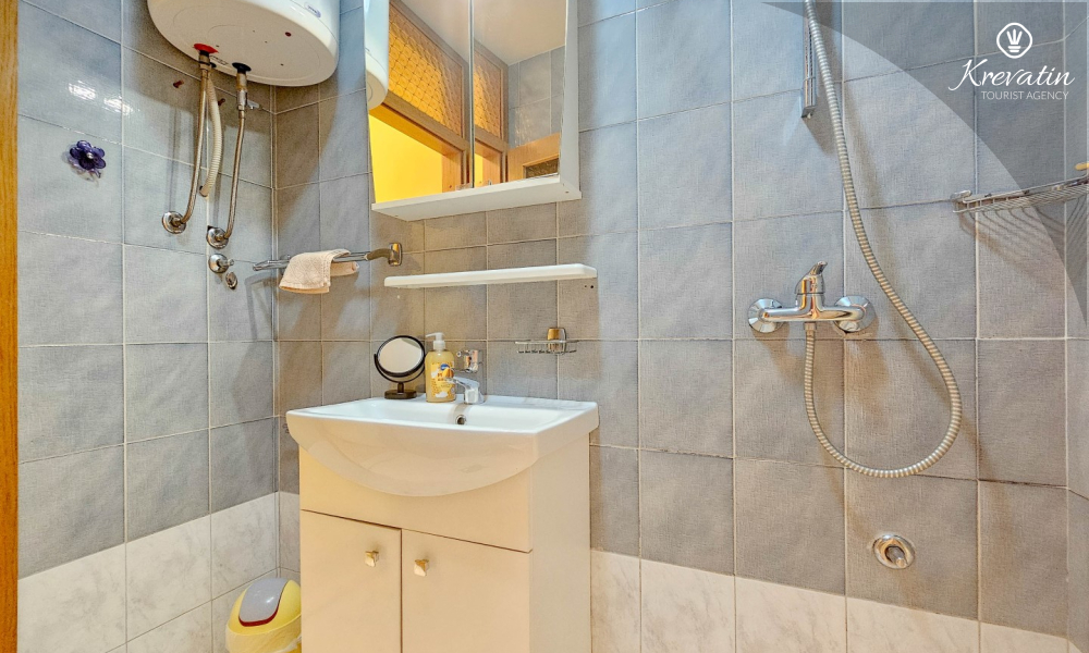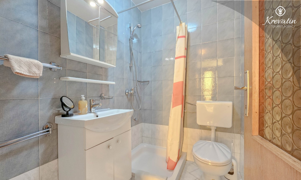 Gostima je na raspolaganju praktična kupaonica s tuš kabinom i WC-om te lijepa terasa sa stolom i stolicama, idealna za opuštanje i uživanje na otvorenom.
