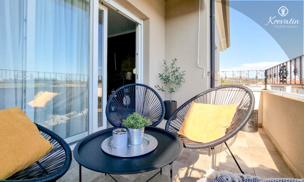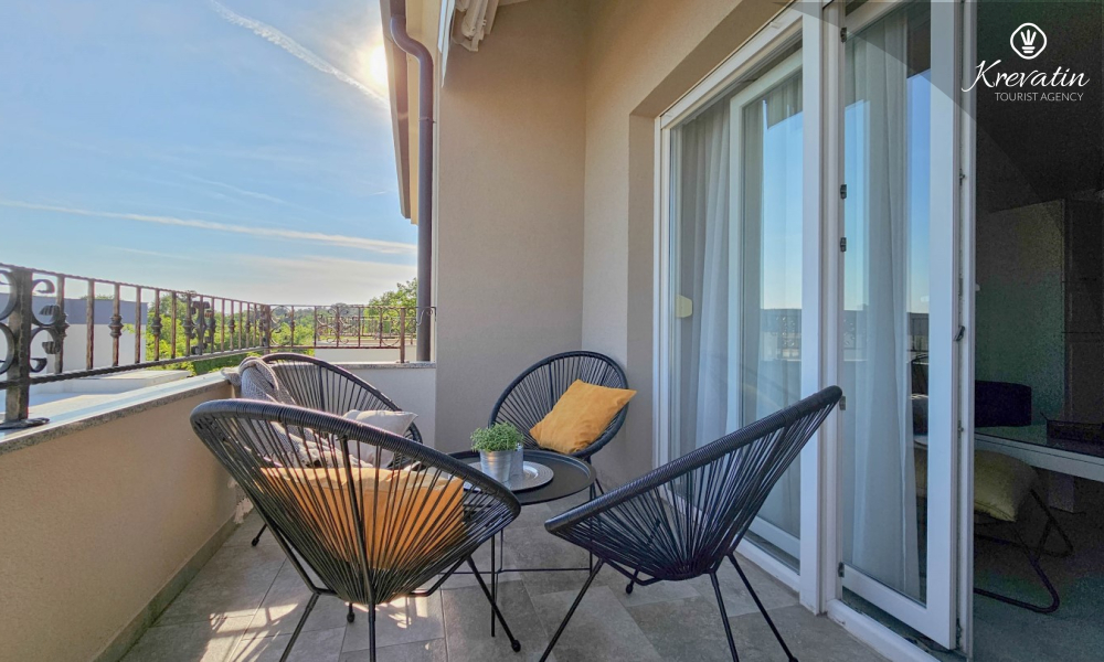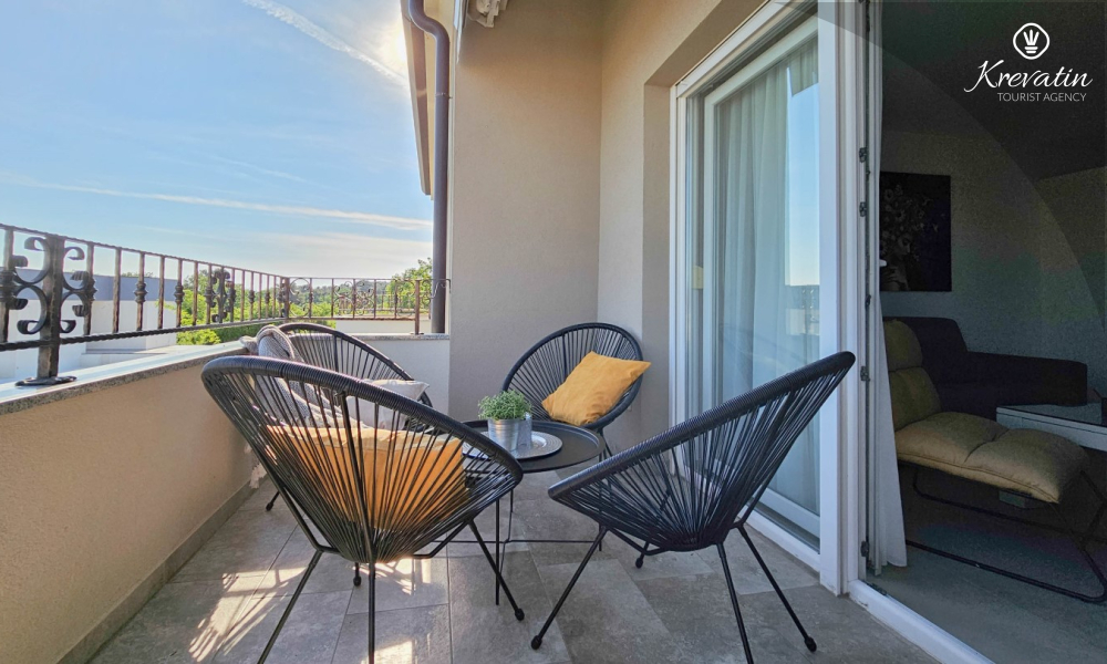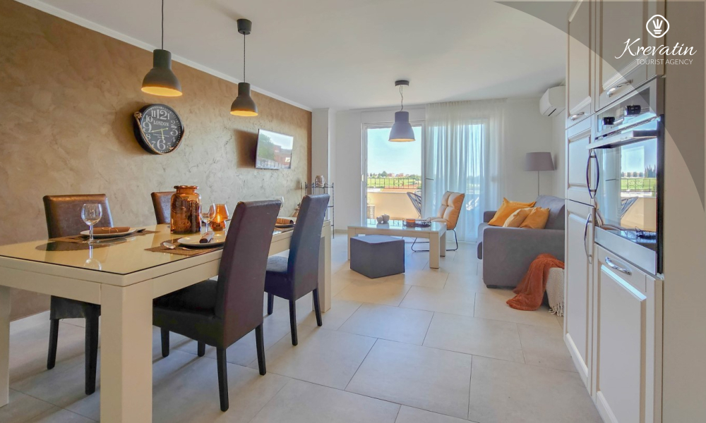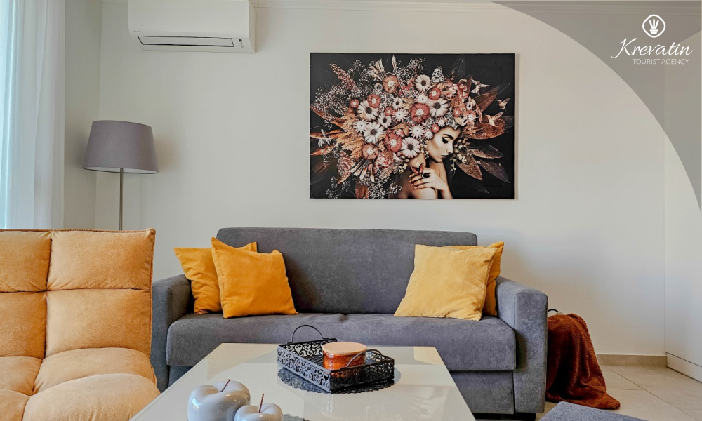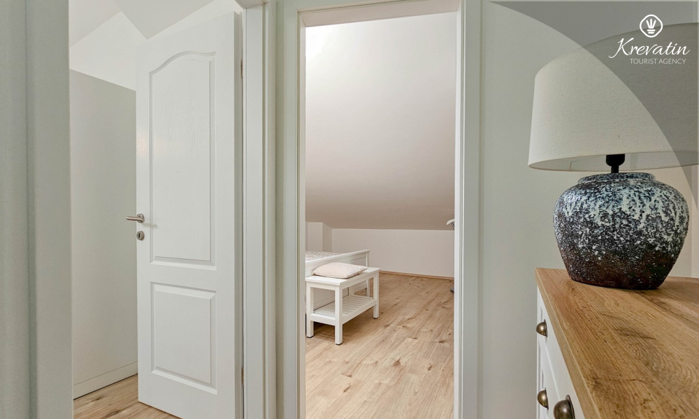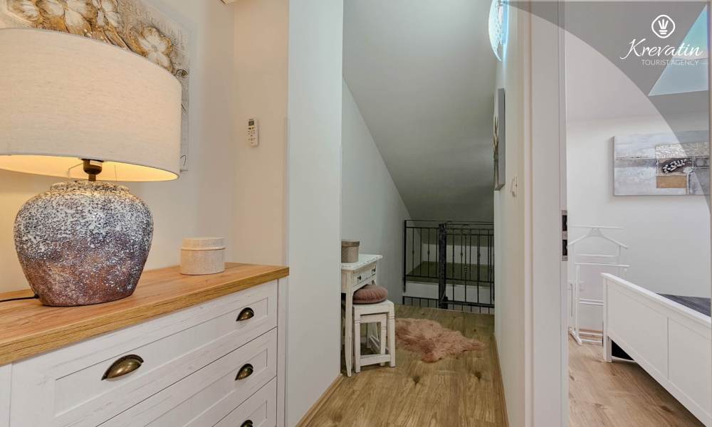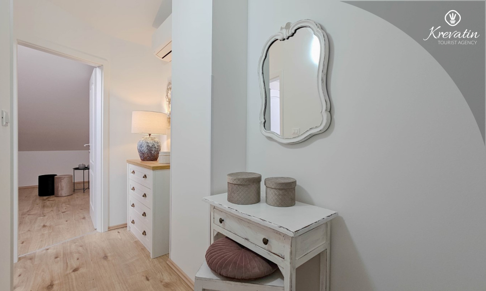 Sastoji se od dvije udobne spavaće sobe, dnevnog boravka i dobro opremljene kuhinje s blagovaonicom. Gostima je na raspolaganju kupaonica s tušem i WC-om te balkon sa stolom i stolicama, idealan za opuštanje i uživanje na otvorenom.