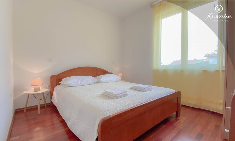 Sastoji se od dvije udobne spavaće sobe, kuhinje s blagovaonicom, opremljene osnovnim stvarima te kupaonice s tušem i WC-om. Balkon s pogledom na more idealno je mjesto za jutarnju kavu ili večernje opuštanje uz čašu vina.