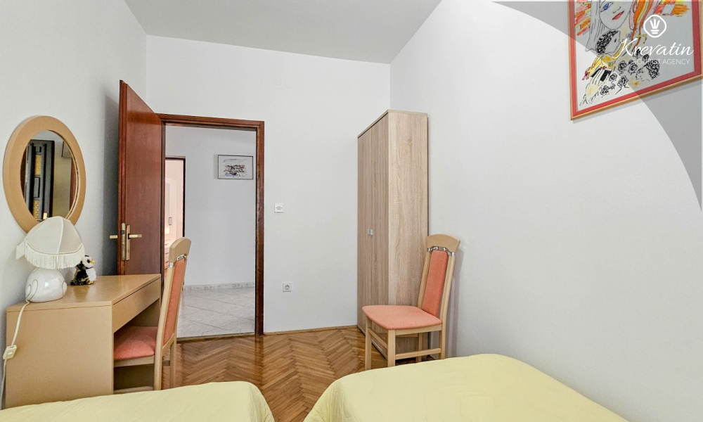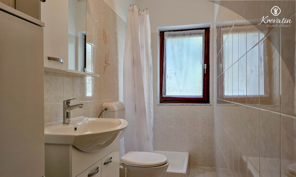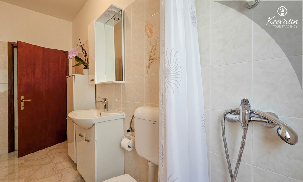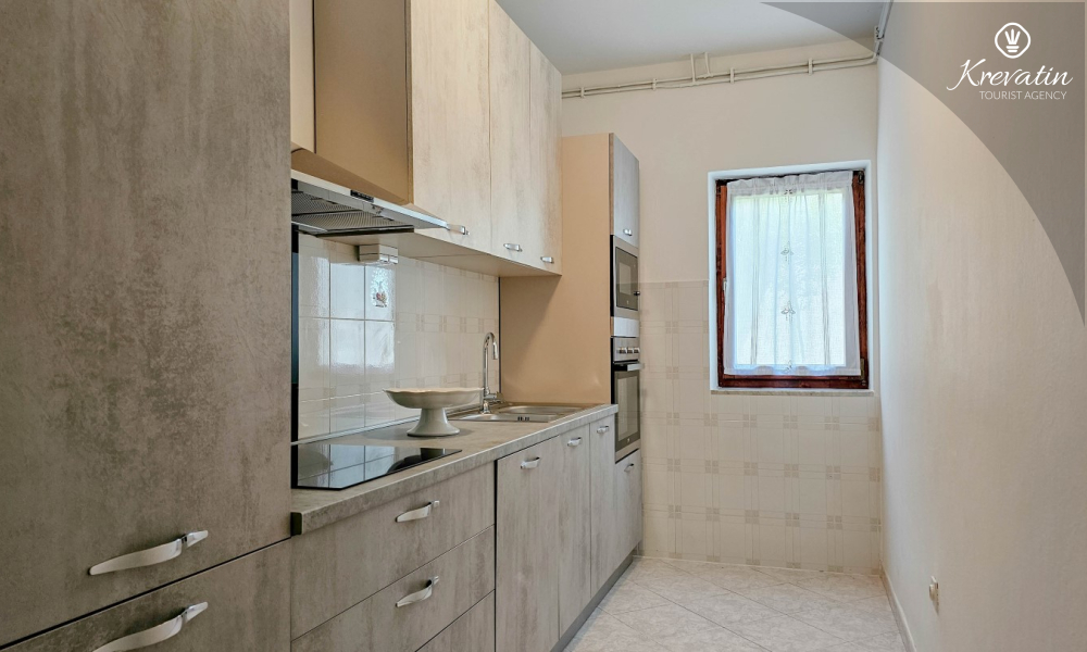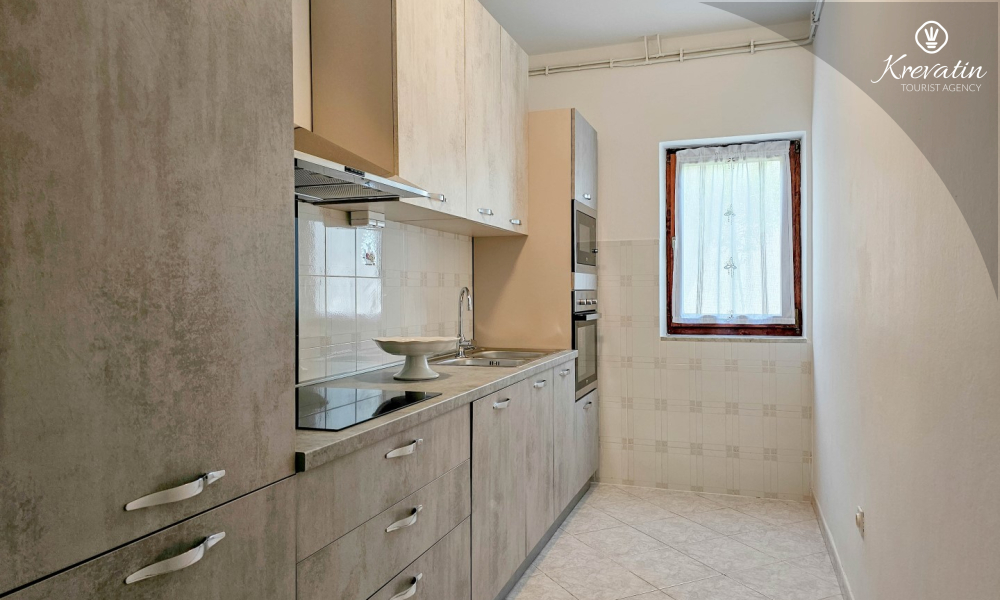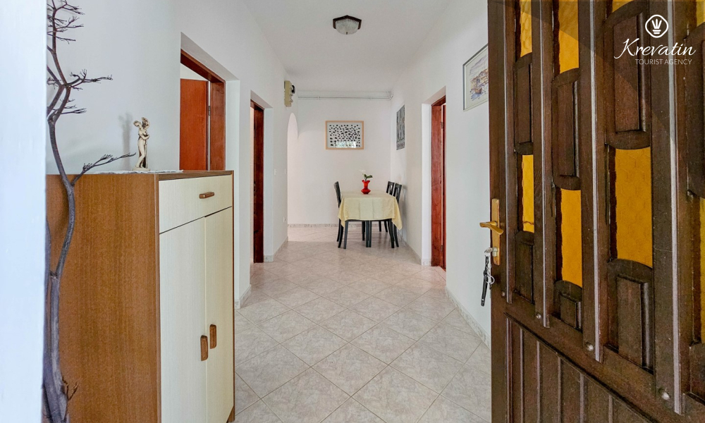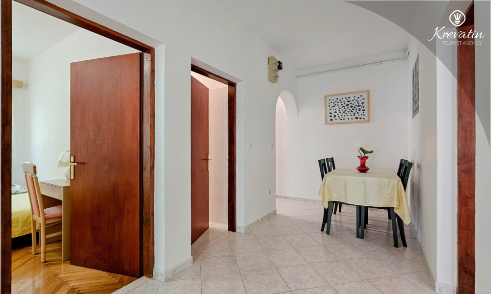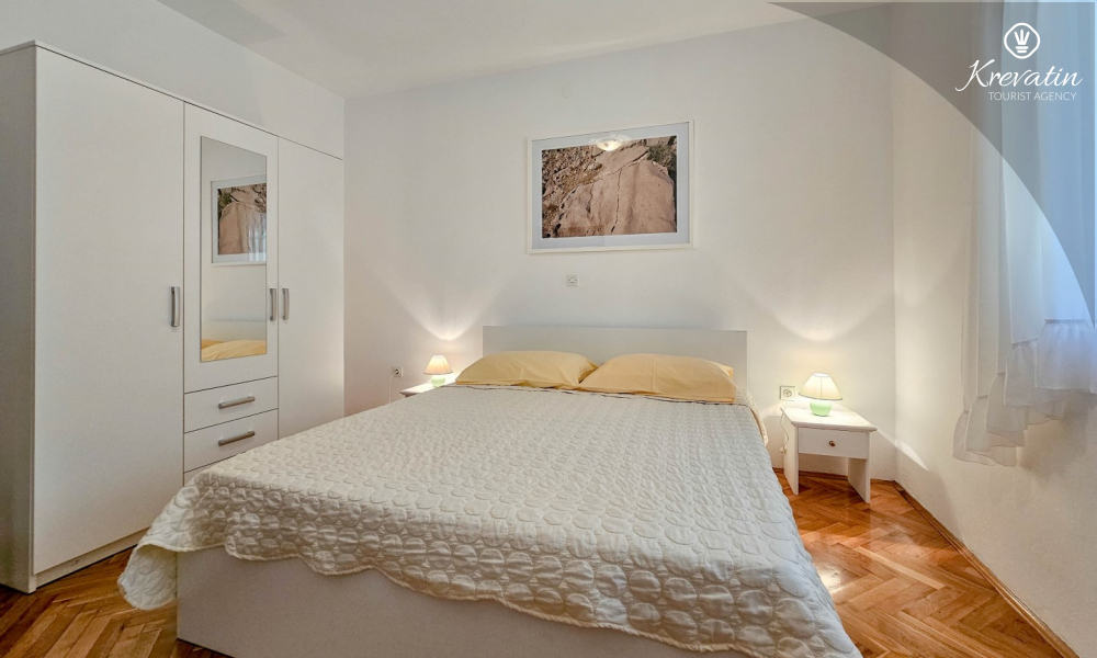 Nalazi se u prizemlju obiteljske kuće i sastoji se od dvije spavaće sobe, funkcionalne kuhinje s blagovaonicom opremljene osnovnim stvarima te kupaonice s tuš kabinom i WC-om. Apartmana raspolaže natkrivenom terasom s vrtnim namještajem, a gostima je na korištenje i zajednički vrt s roštiljem – savršeno za ljetna druženja u hladu.