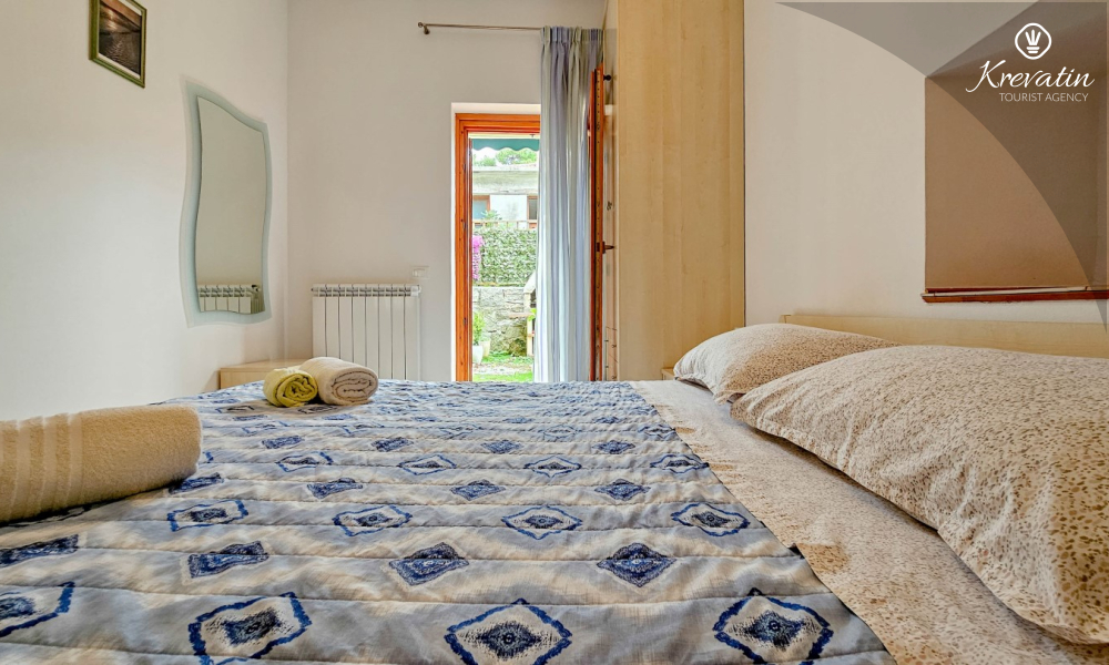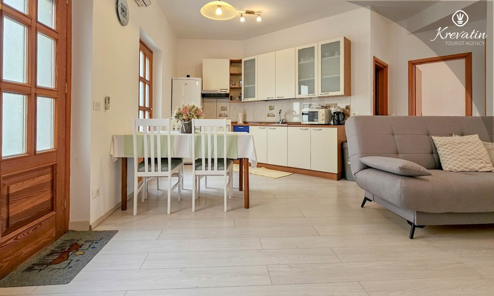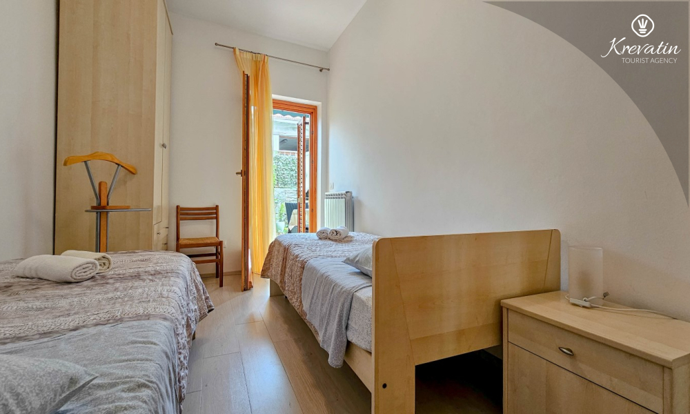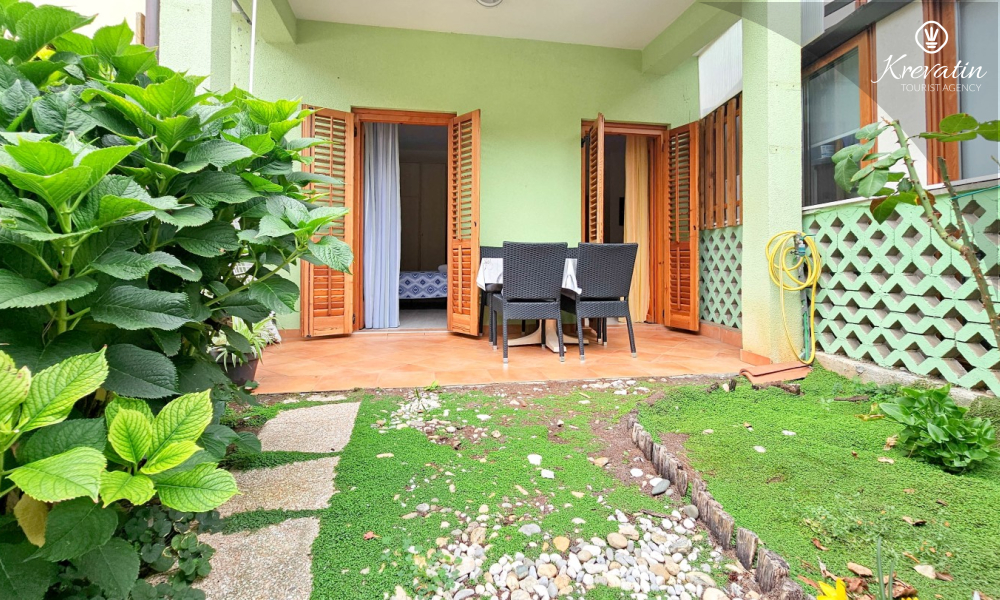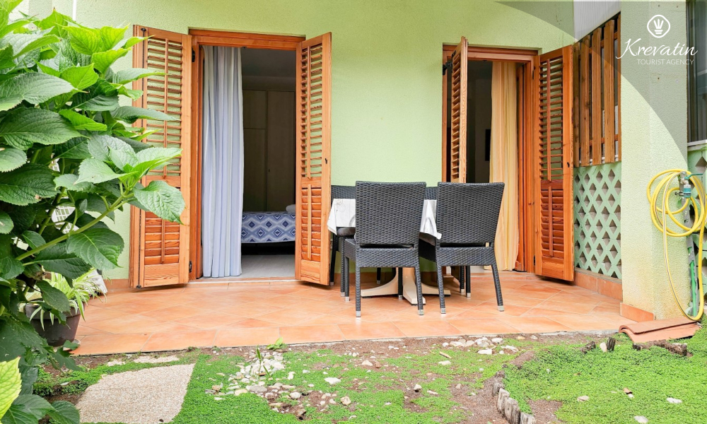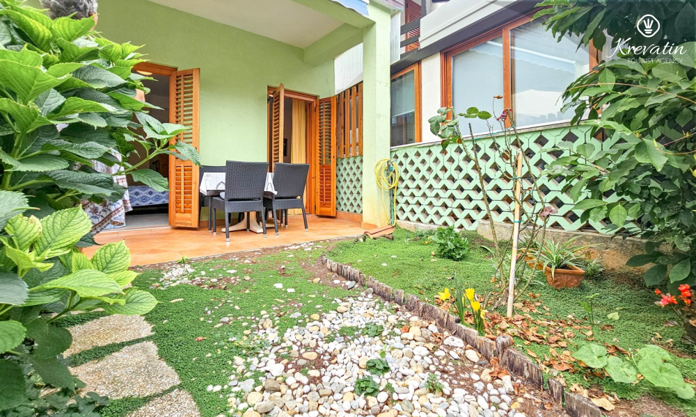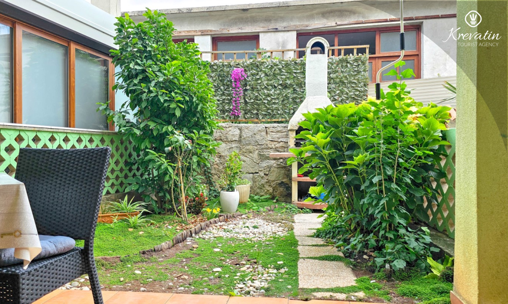 Nalazi se u prizemlju obiteljske kuće i nudi dvije spavaće sobe, dnevni boravak s kaučem na razvlačenje, kuhinju opremljenu osnovnim stvarima te kupaonicu s tušem i WC-om. Na raspolaganju je i vlastita terasa s pogledom na vrt, za jutarnju kavu ili večernju čašu vina.