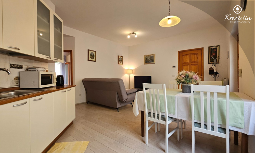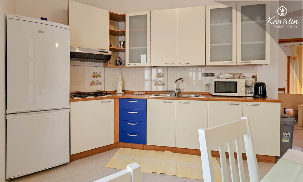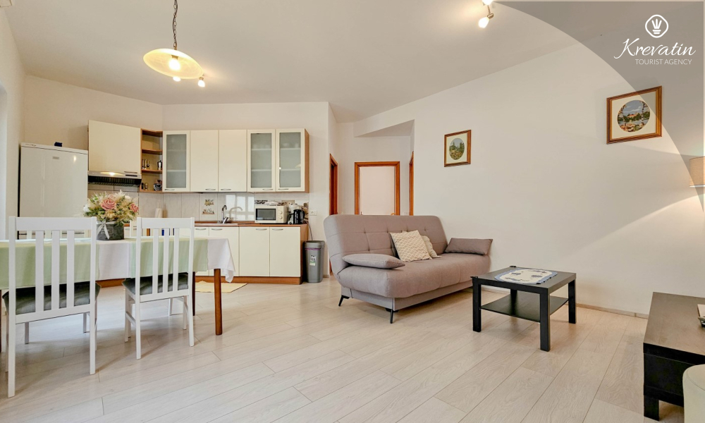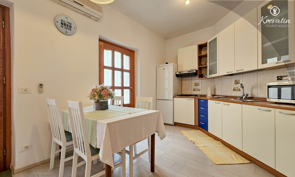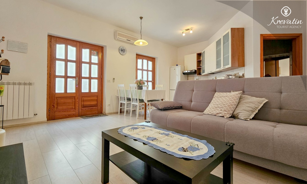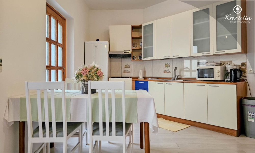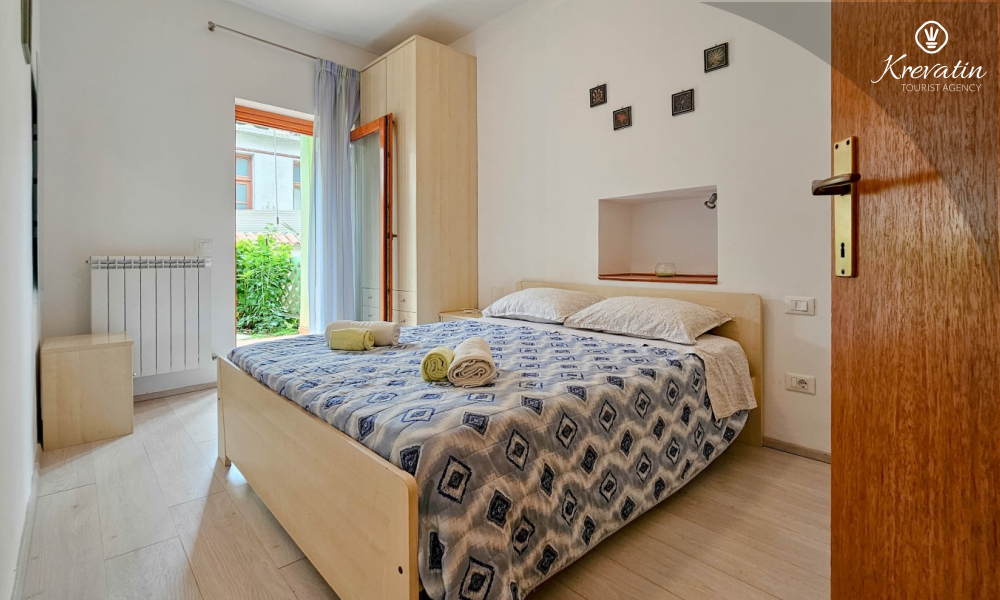 Nalazi se u prizemlju obiteljske kuće i nudi dvije spavaće sobe, dnevni boravak s kaučem na razvlačenje, kuhinju opremljenu osnovnim stvarima te kupaonicu s tušem i WC-om. Na raspolaganju je i vlastita terasa s pogledom na vrt, za jutarnju kavu ili večernju čašu vina.