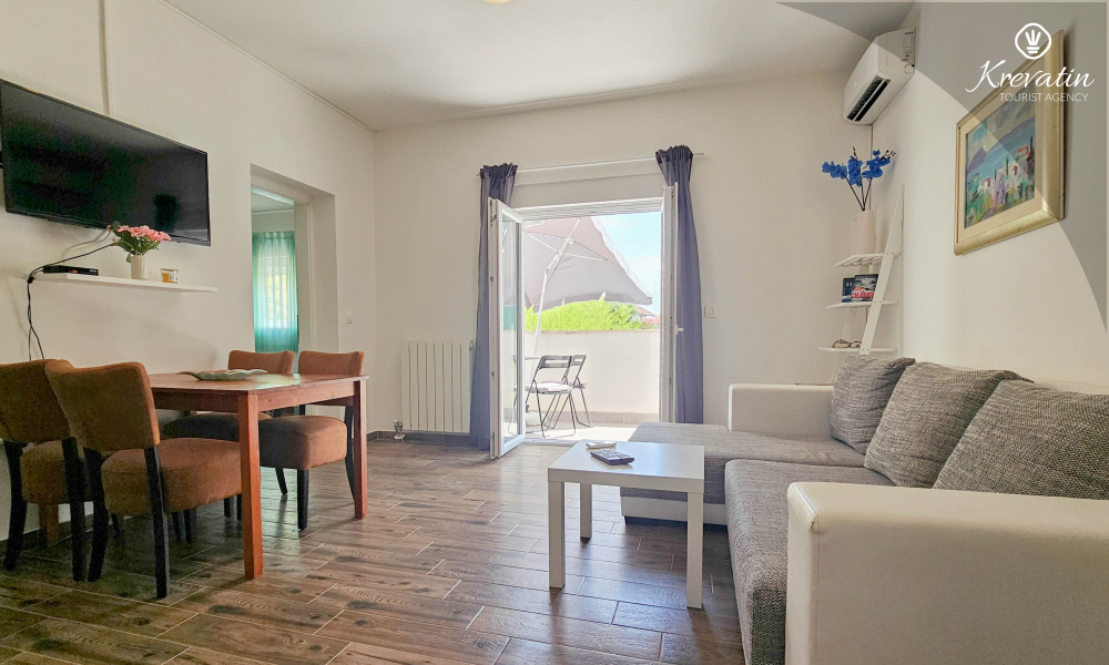 Ovaj lijepo namješten apartman smješten je na prvom katu stambene zgrade u mirnom dijelu Novigrada, idealan za obitelj ili grupu do 4 osobe koje žele uživati u ljepotama istarske obale.