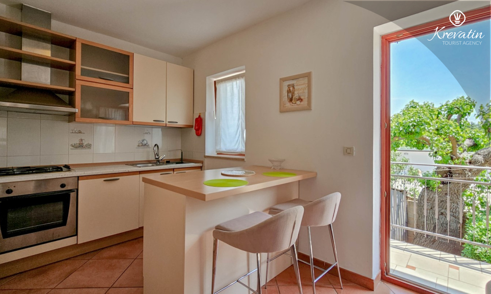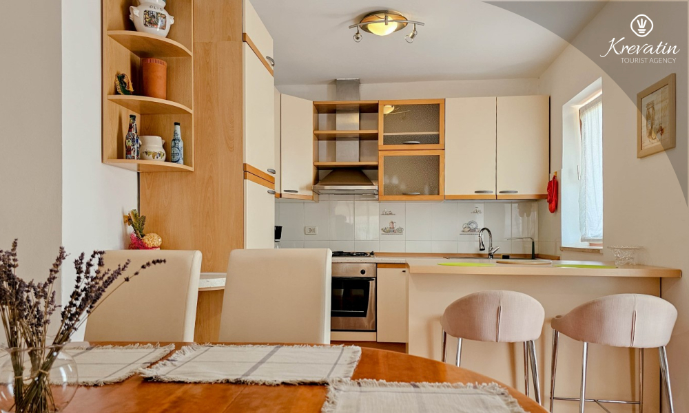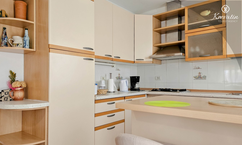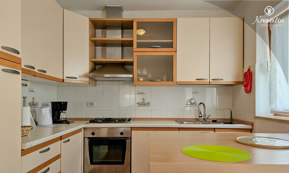 Kuhinja je opremljena osnovnim stvarima, tako da možete pripremati obroke po vlastitom ukusu. Također, dostupan je privatni parking za vaš automobil, što vam omogućuje jednostavan pristup i siguran smještaj vozila tijekom boravka.