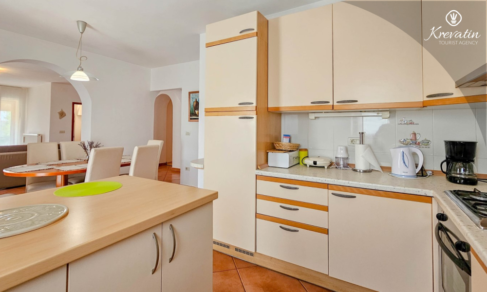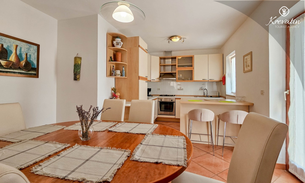 Apartman u Fermićima, Istra, nalazi se na prvom katu i idealan je izbor za vaš nezaboravan odmor. Ovaj udoban apartman može ugostiti do osam osoba i nudi sve što vam je potrebno za ugodan boravak.