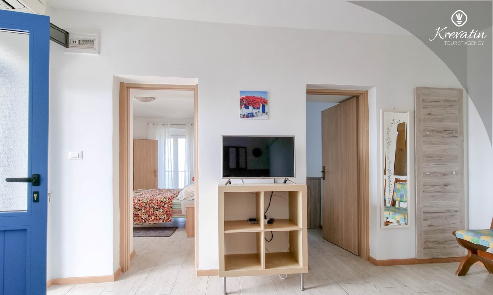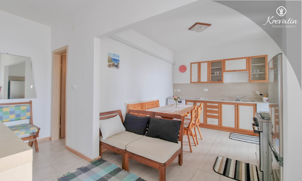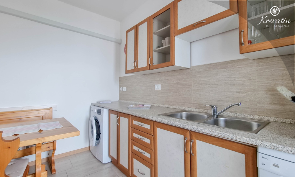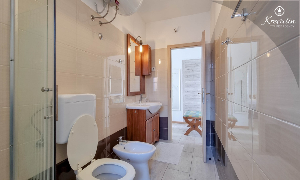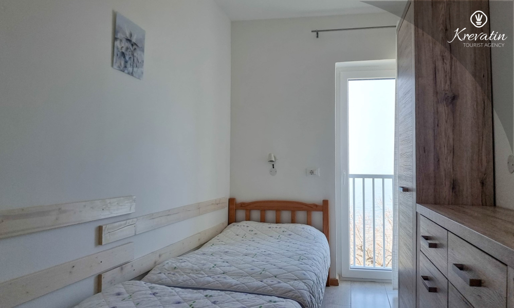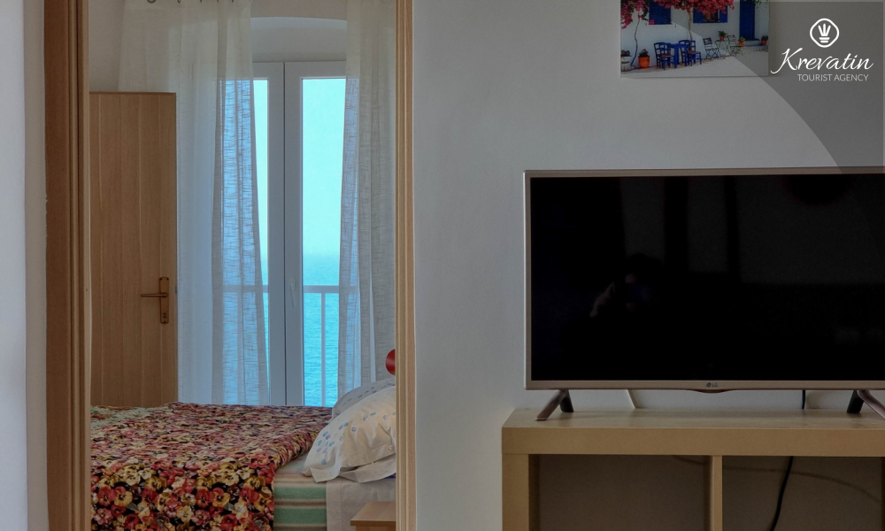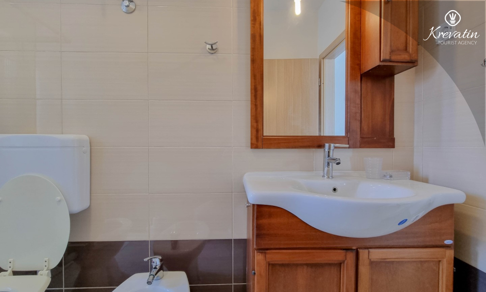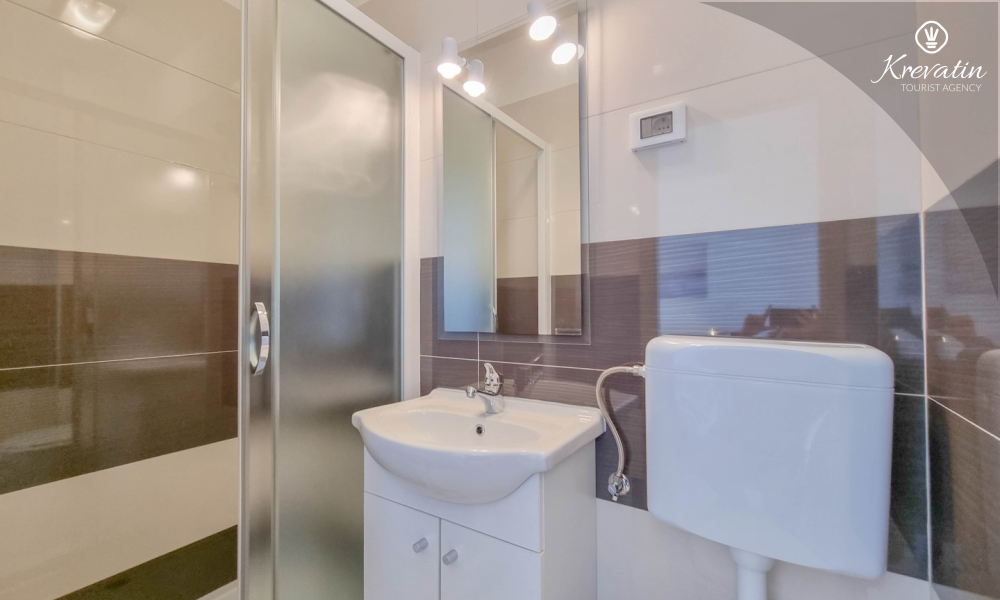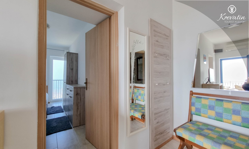Apartman ima dvije kupaonice, svaka s tušem i WC-om, što dodatno olakšava boravak za sve goste. Na raspolaganju je balkon s prekrasnim pogledom na more, idealan za opuštanje i uživanje na otvorenom.