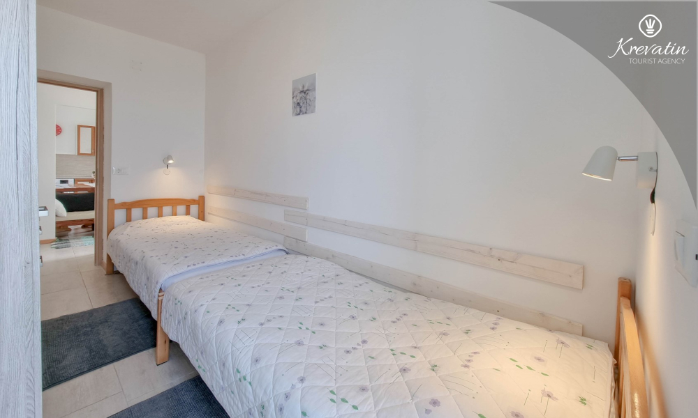 Sastoji se od dvije spavaće sobe - jedna s bračnim krevetom i druga s dva odvojena kreveta, dnevnog boravka i potpuno opremljene kuhinje.