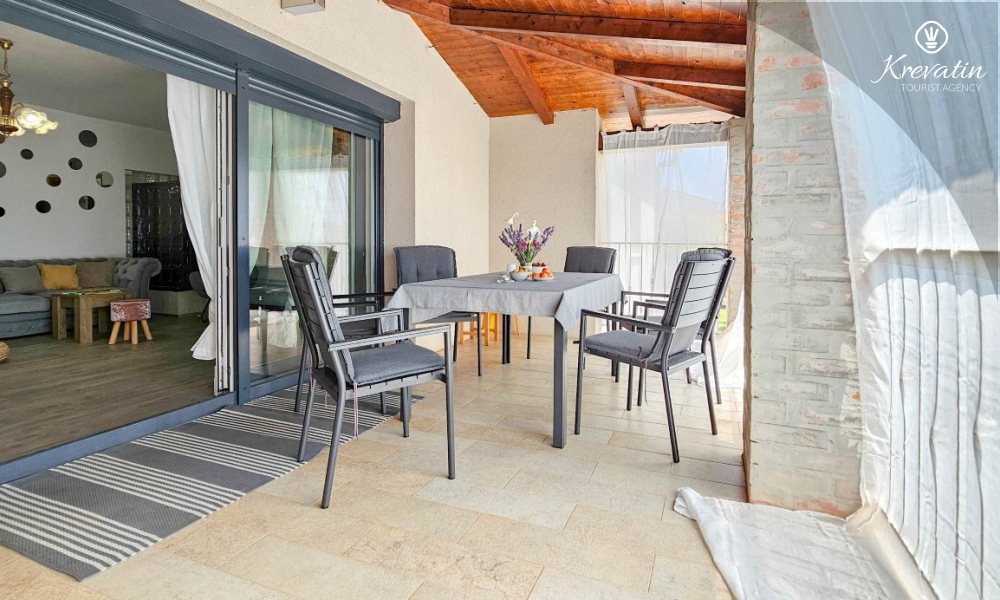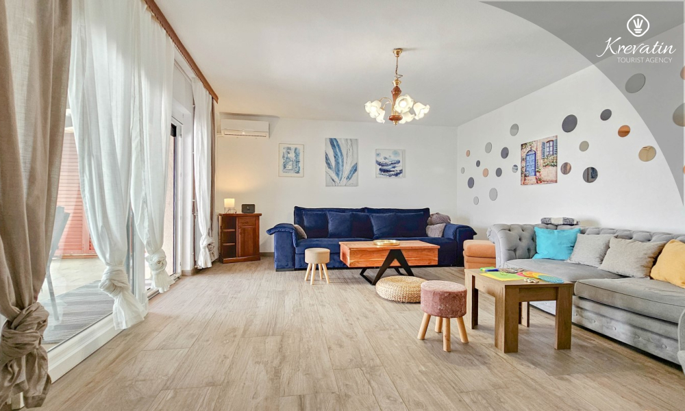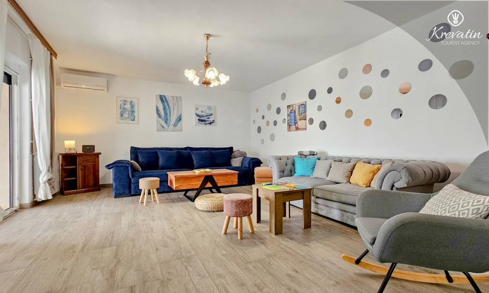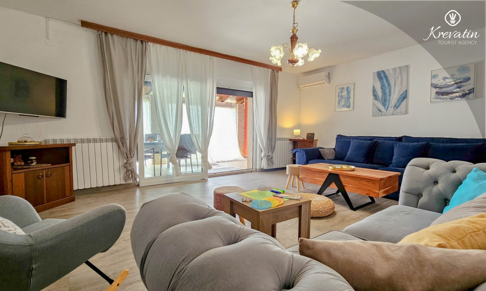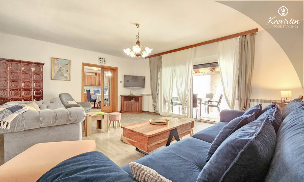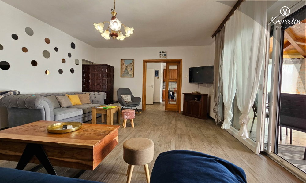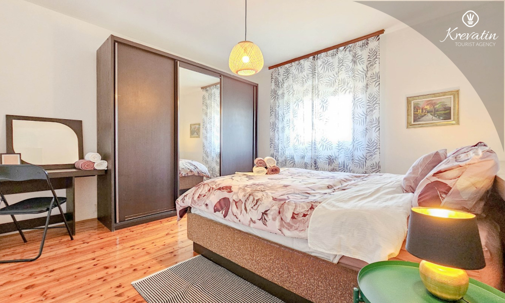 Lijepo uređen i prostran apartman za do 5 osoba smješten je na prvom katu obiteljske kuće okružen prirodom.