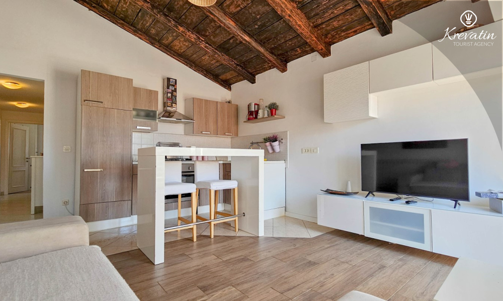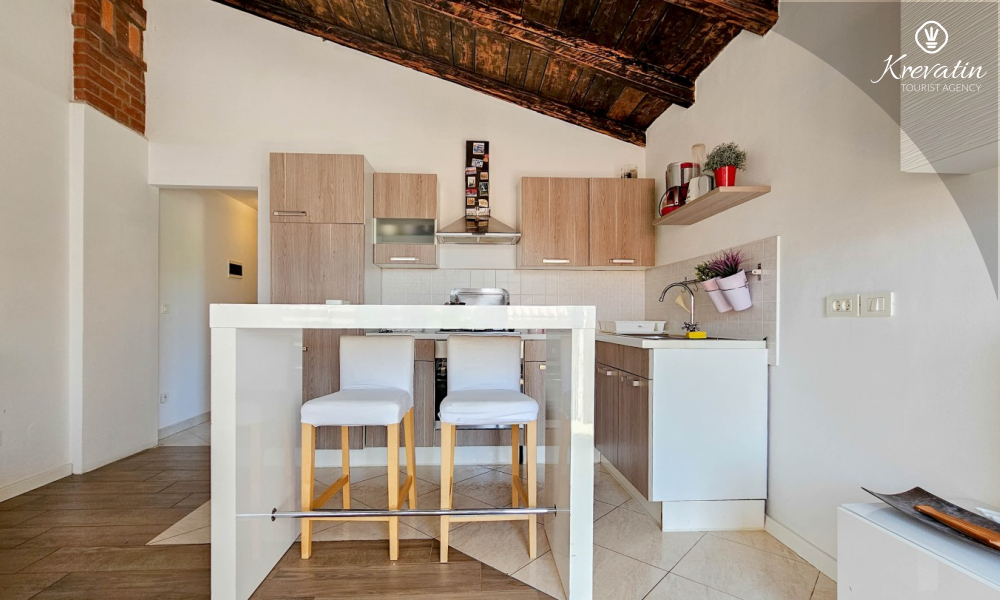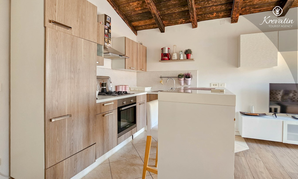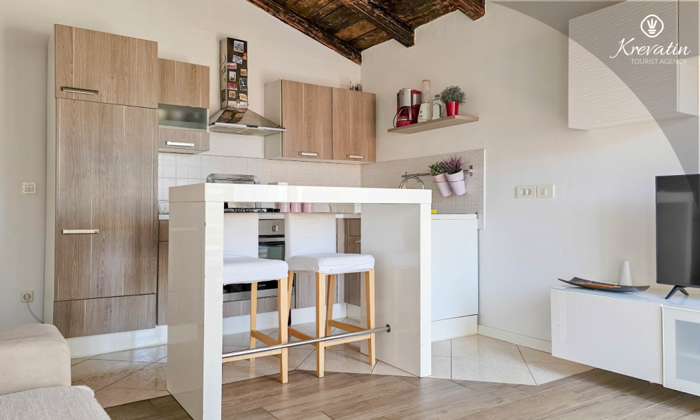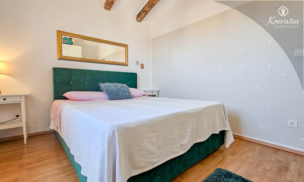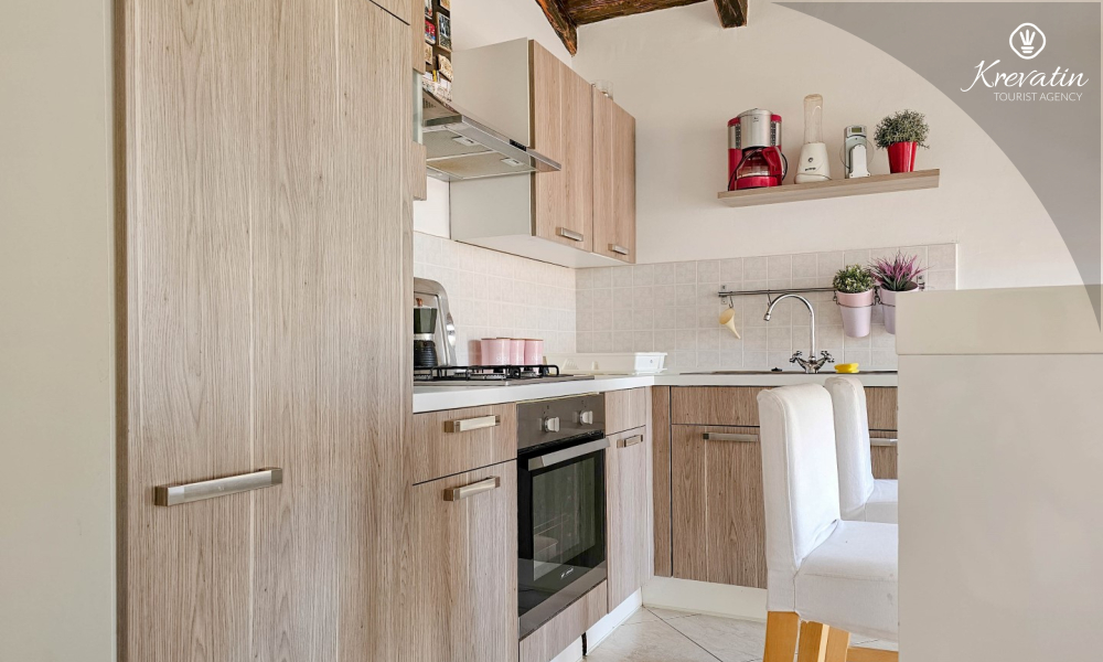 Apartman je uredno uređen i opremljen svime što vam je potrebno za ugodan boravak. U prostranoj kuhinji pronaći ćete osnovne potrepštine za pripremu ukusnih obroka. Spavaća soba s udobnim bračnim krevetom osigurat će vam miran san nakon dana provedenog istražujući ljepote Novigrada.