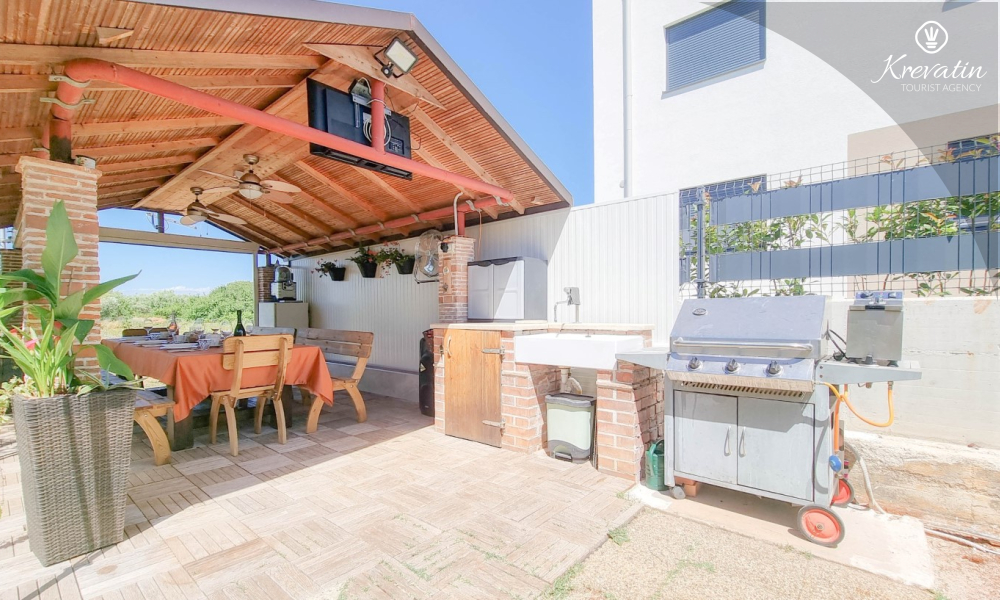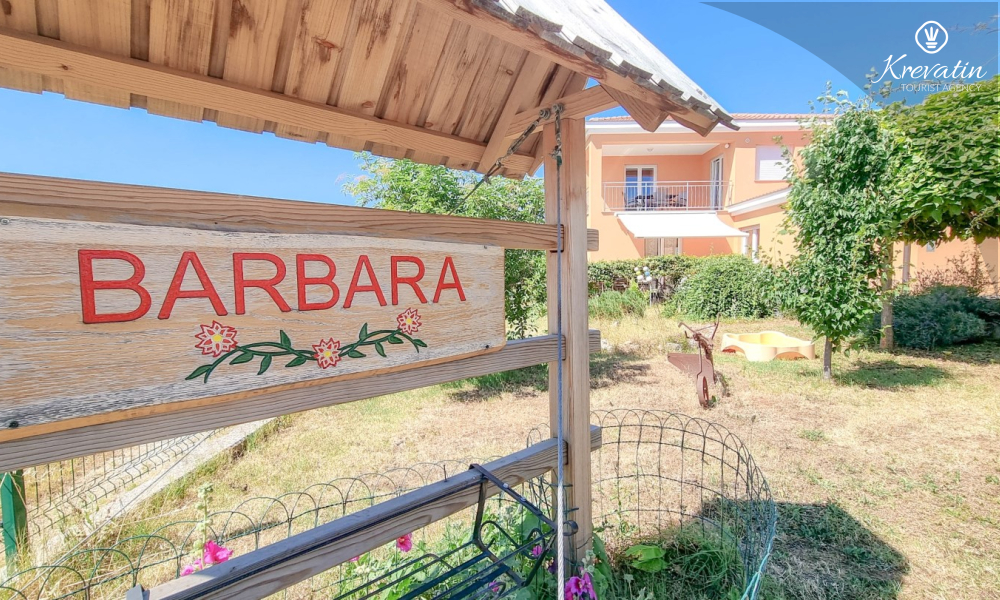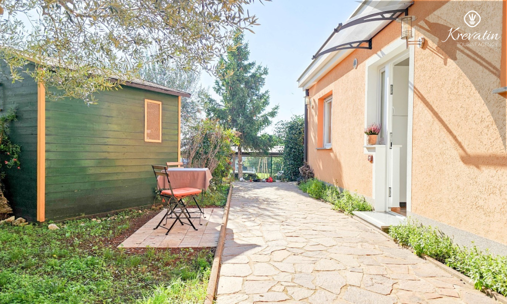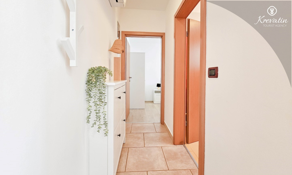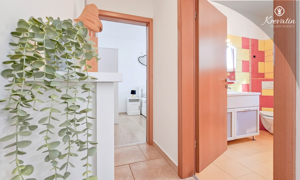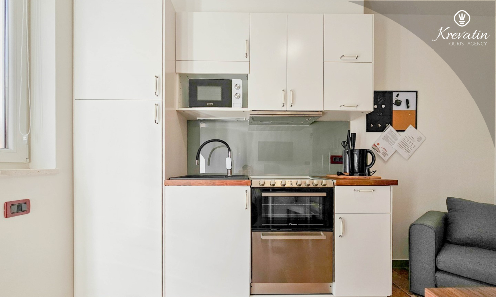 Smješten je u prizemlju obiteljske kuće i sastoji se od spavaće sobe, kuhinje opremljene osnovnim stvarima za pripremu jednostavnih obroka te praktične kupaonice s tušem i WC-om. Ispred apartmana je vlastita mala terasa za jutarnje kave ili večernje čašice vina. Na raspolaganju je i velika zajednička terasa za ugodno druženje s ostalim gostima.